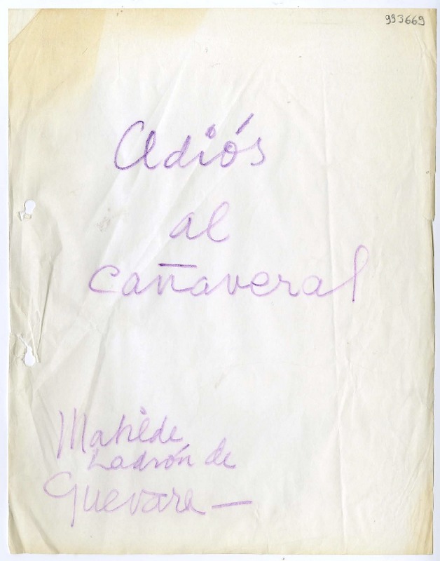 Adiós al cañaveral [manuscrito] Matilde Ladrón de Guevara.