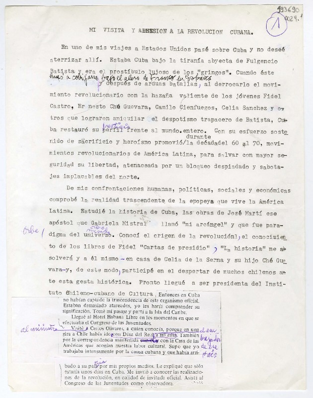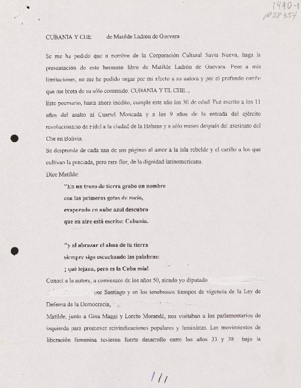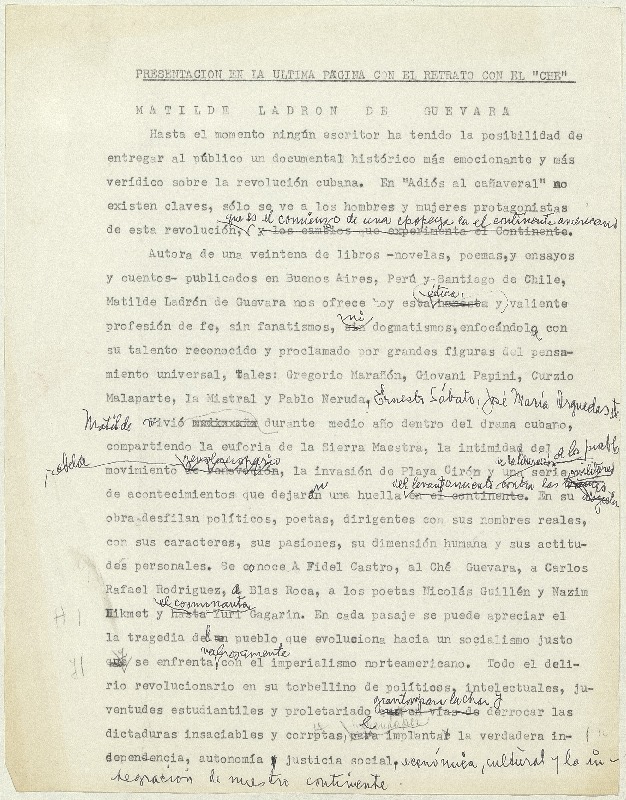 Cuba - Relatos personales - Ensayos chilenos - Ladrón de Guevara, Matilde - Manuscritos chilenos - Historia