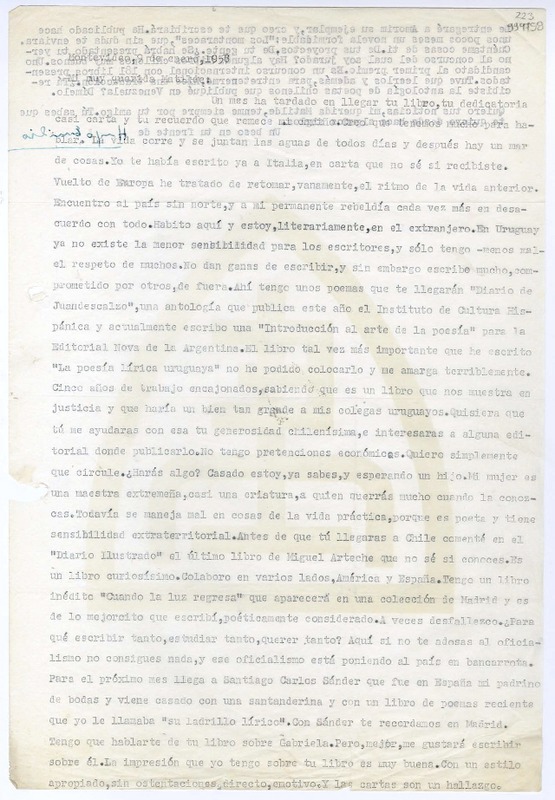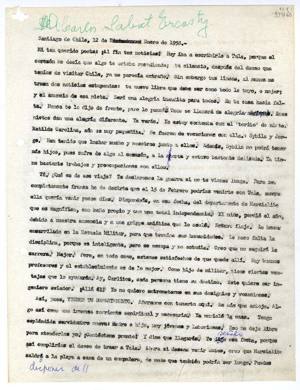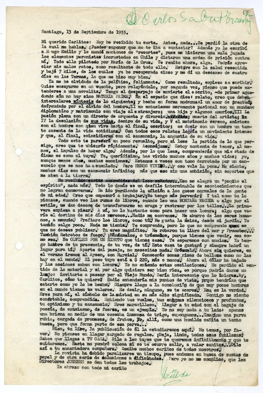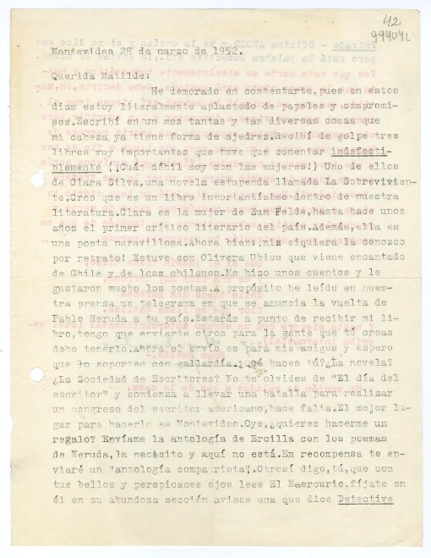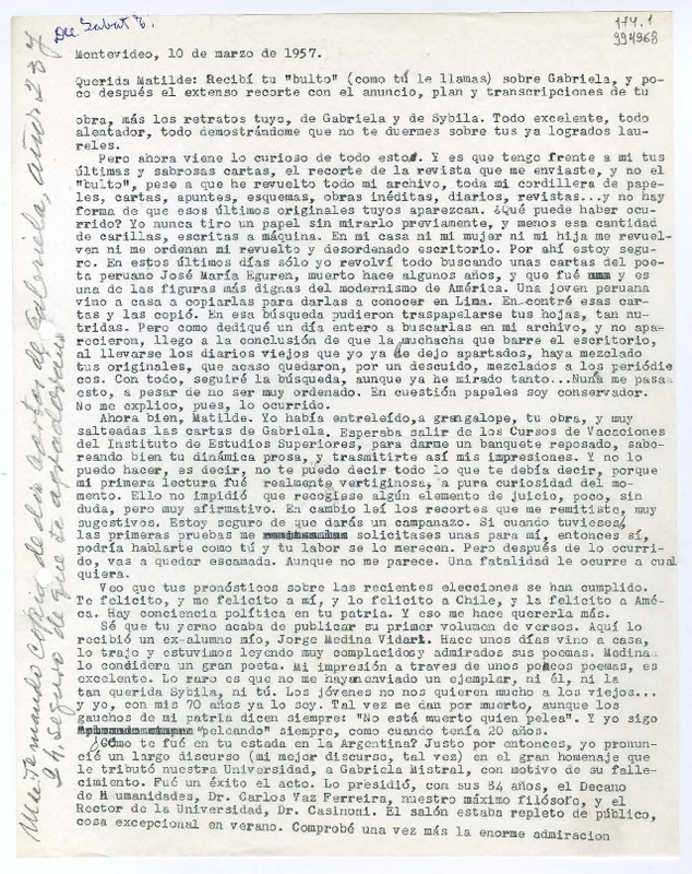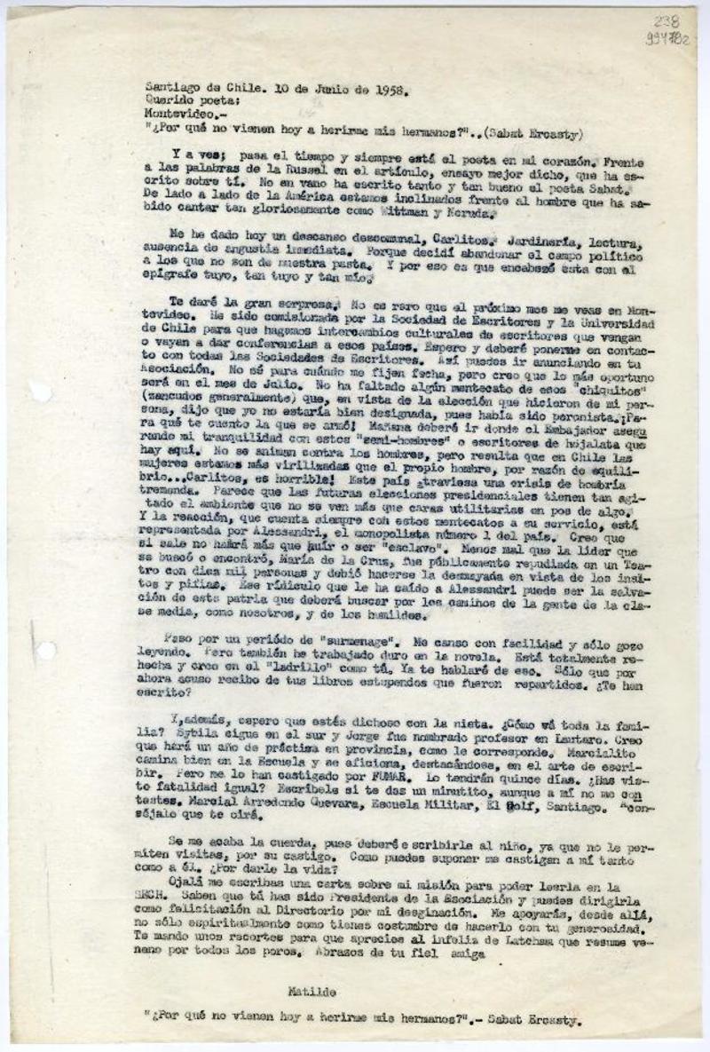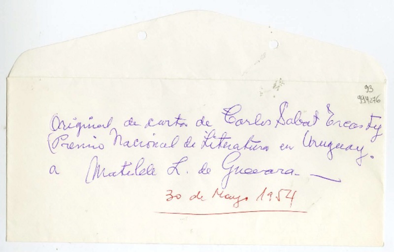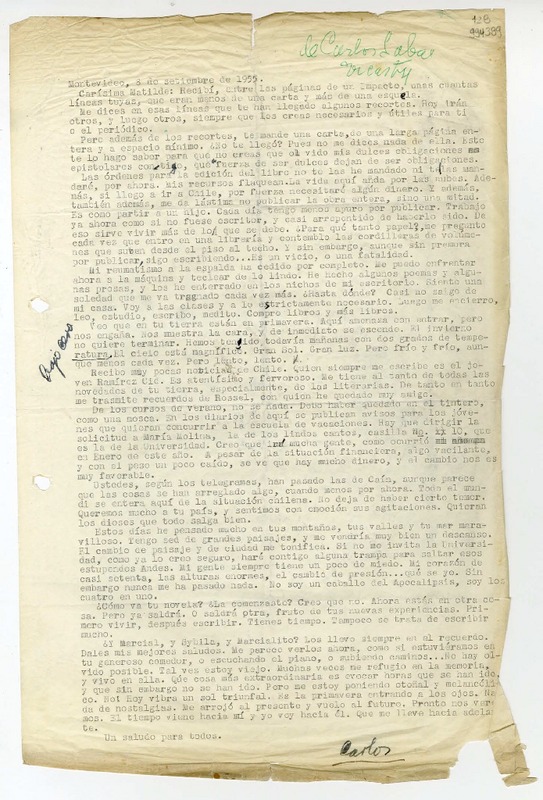 Sabat Ercasty, Carlos - Correspondencia - Ladrón de Guevara, Matilde - Manuscritos uruguayos