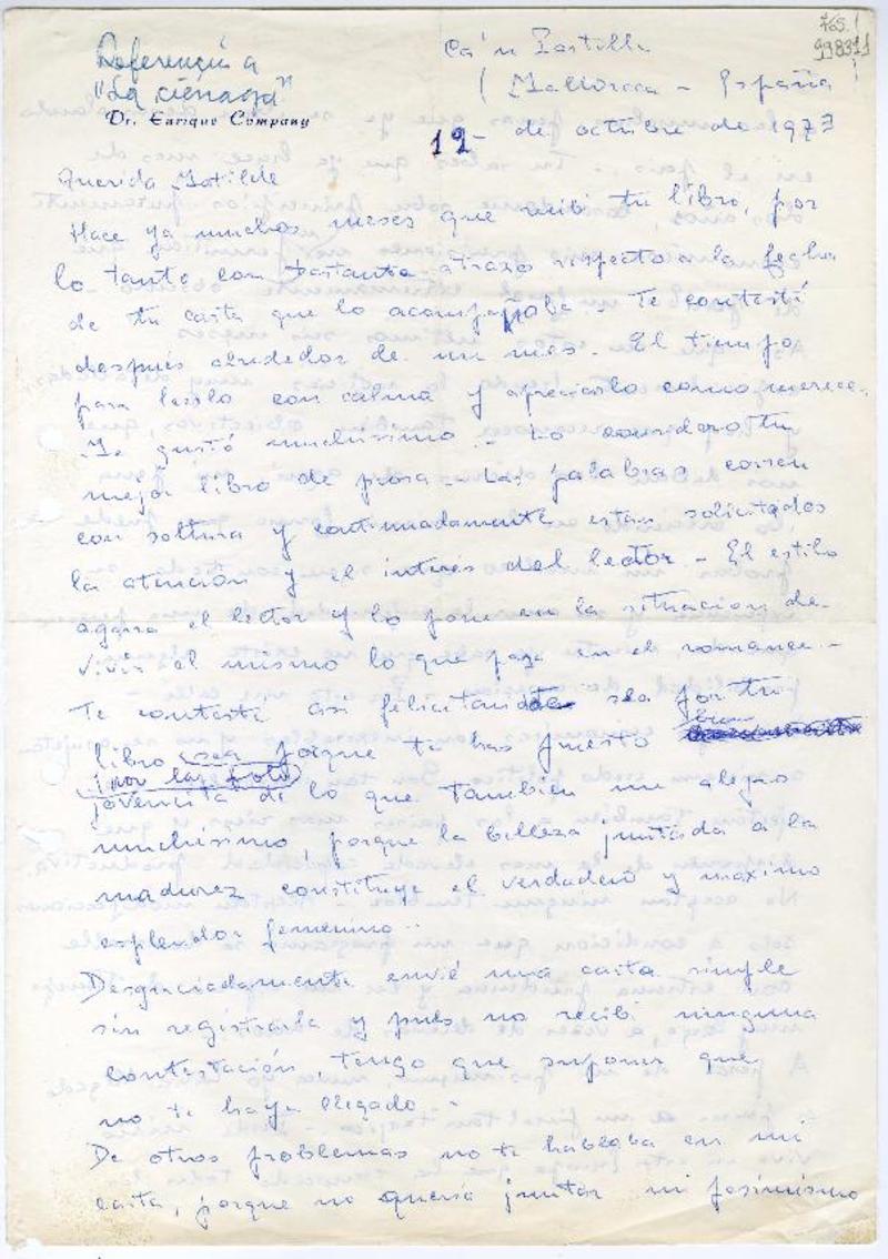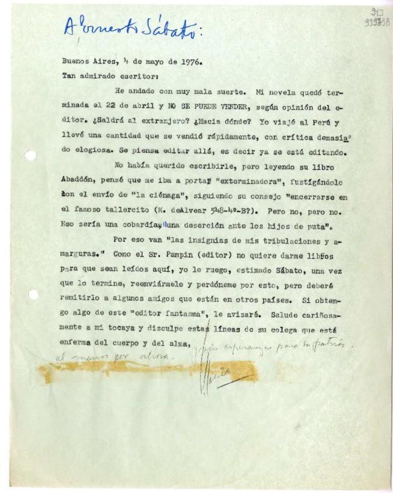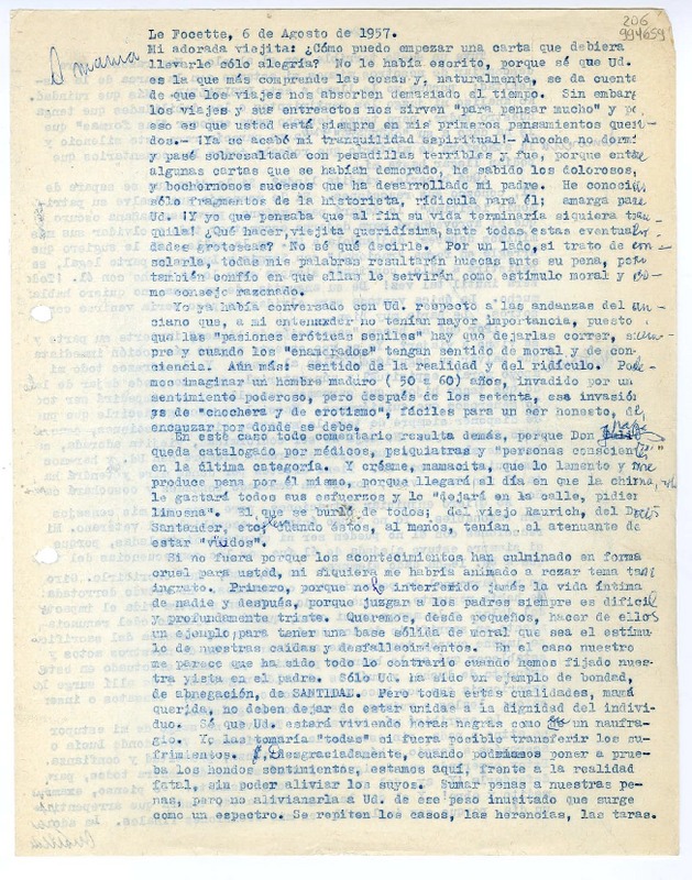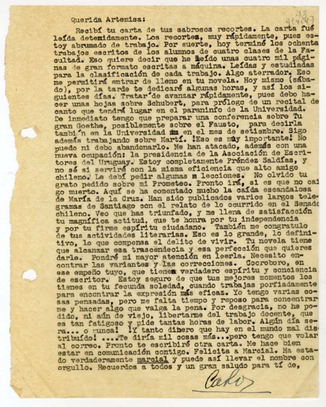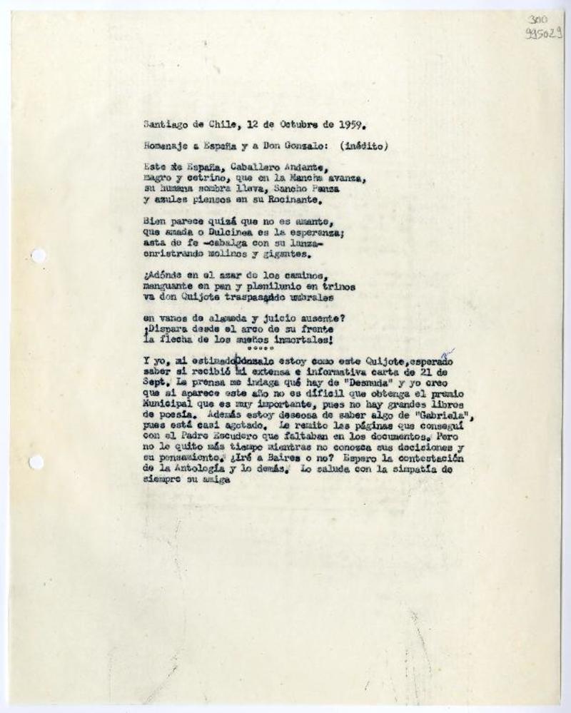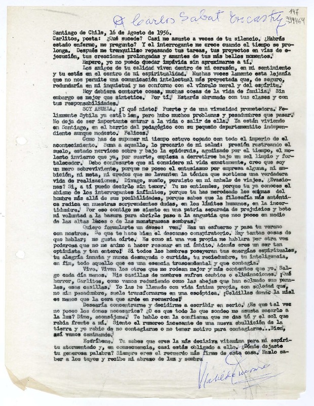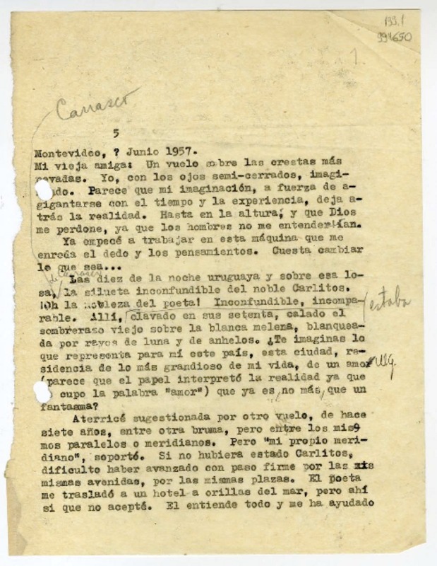 Sabat Ercasty, Carlos - Correspondencia - Ladrón de Guevara, Matilde - Manuscritos uruguayos