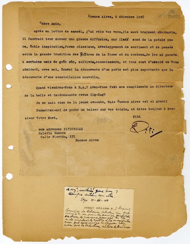 [Carta] 1948 diciembre 6, Buenos Aires, [Argentina] [a] Matilde Ladrón de Guevara [manuscrito] Dino Segre (Pitigrilli).