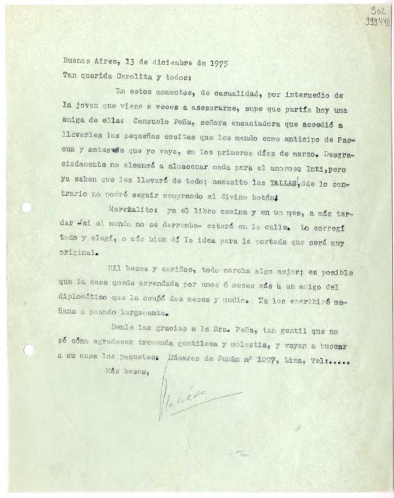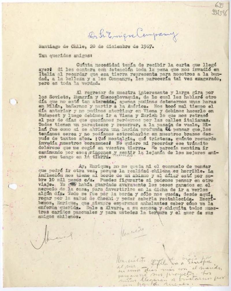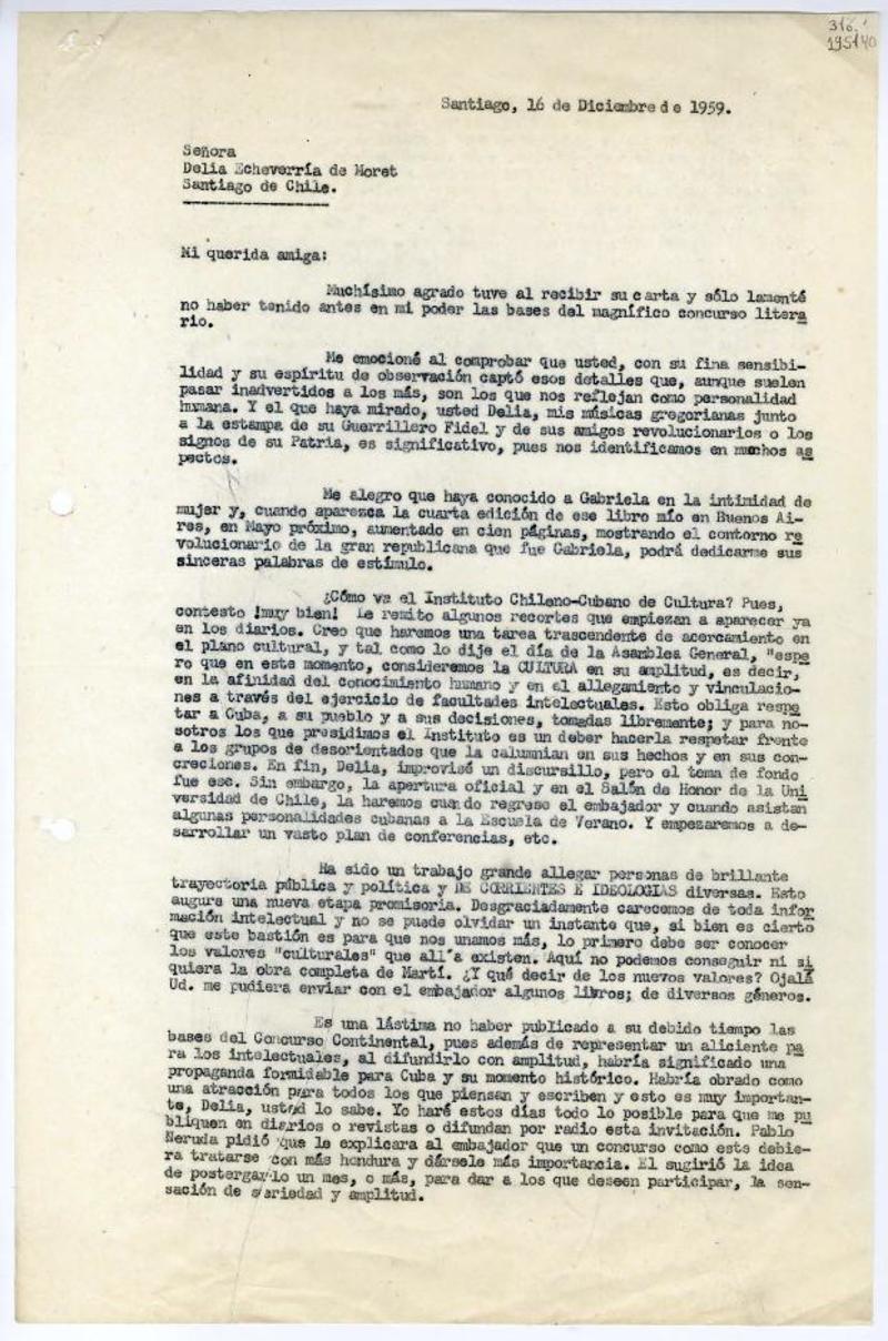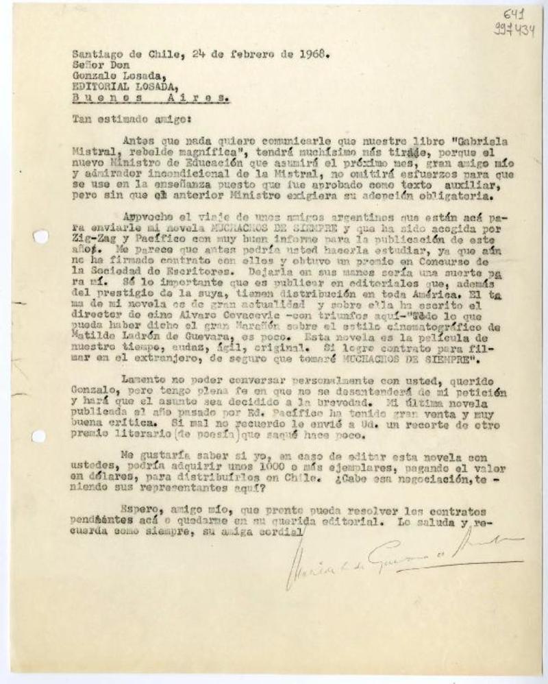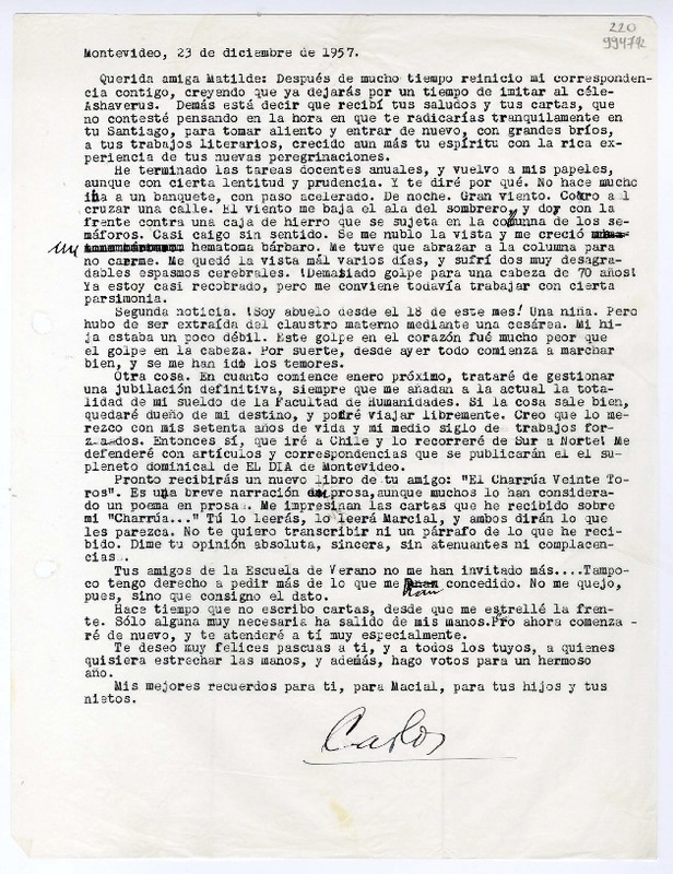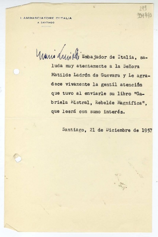 [Carta] 1949 diciembre 24, Santiago, [Chile] [a] Matilde Ladrón de Guevara [manuscrito] Carlos Préndez Saldías.