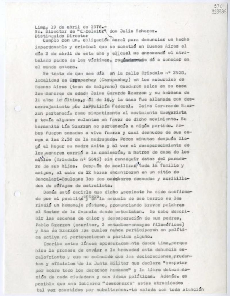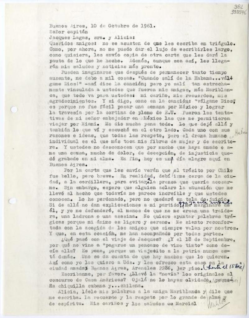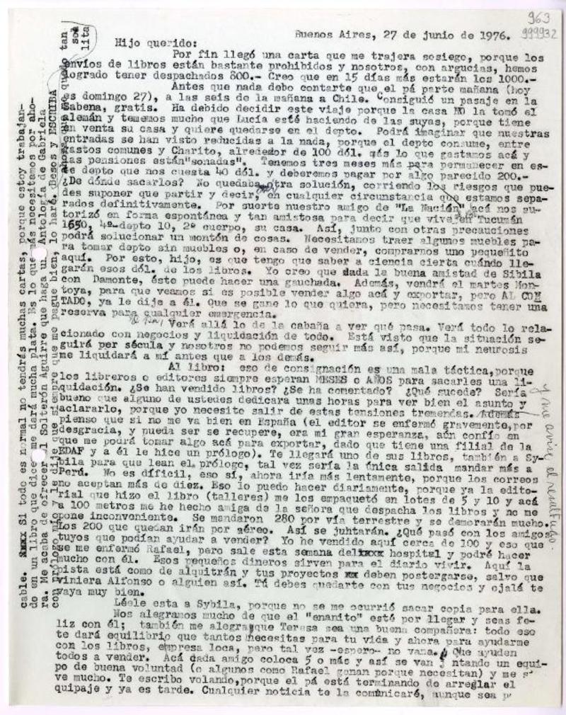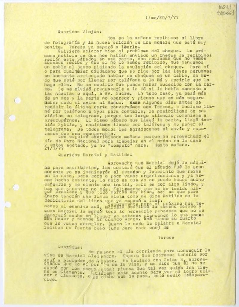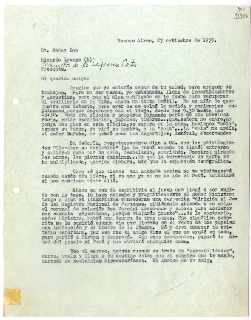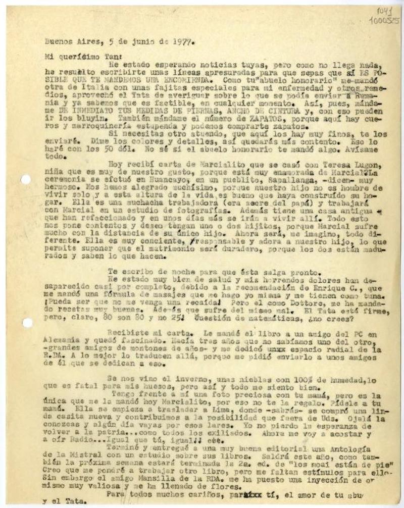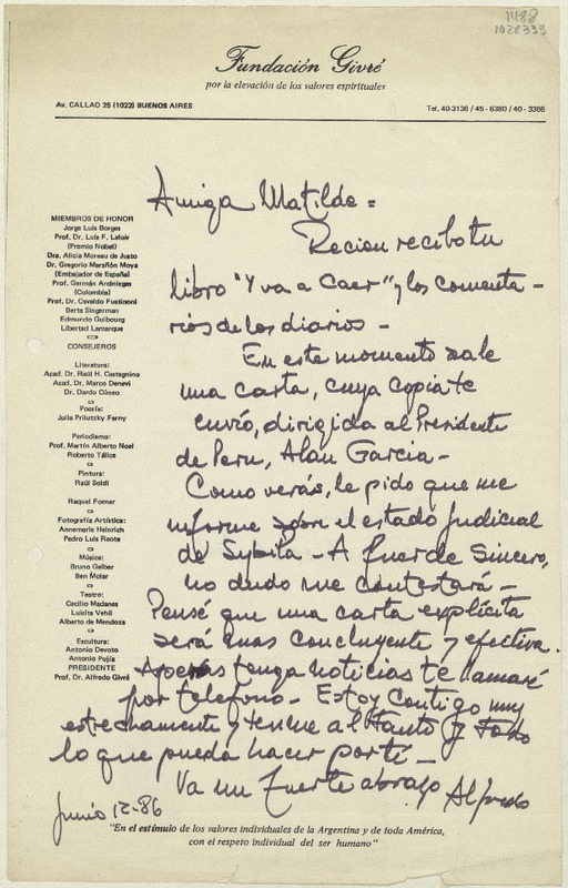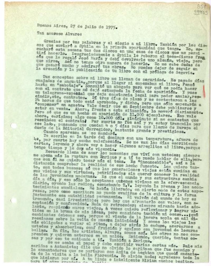 [Carta] 1952 julio 24, Buenos Aires, [Argentina] [a la] Sra. Matilde Ladrón de Guevara, Santiago de Chile [manuscrito] Tomás de Lara.