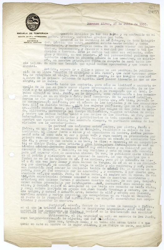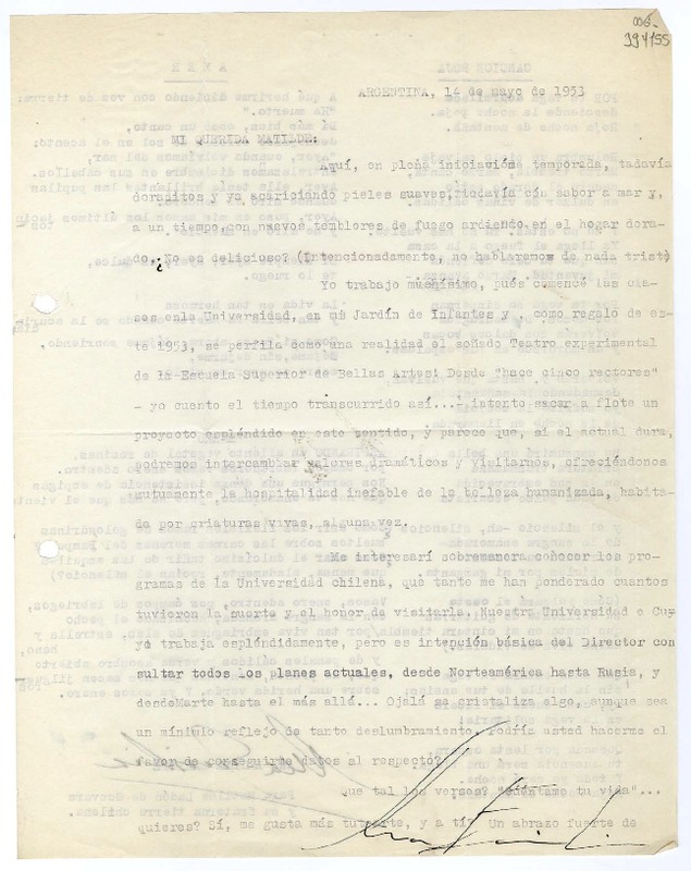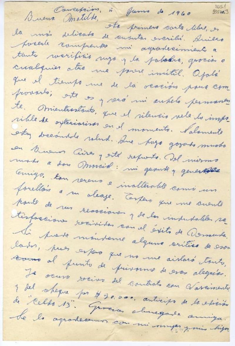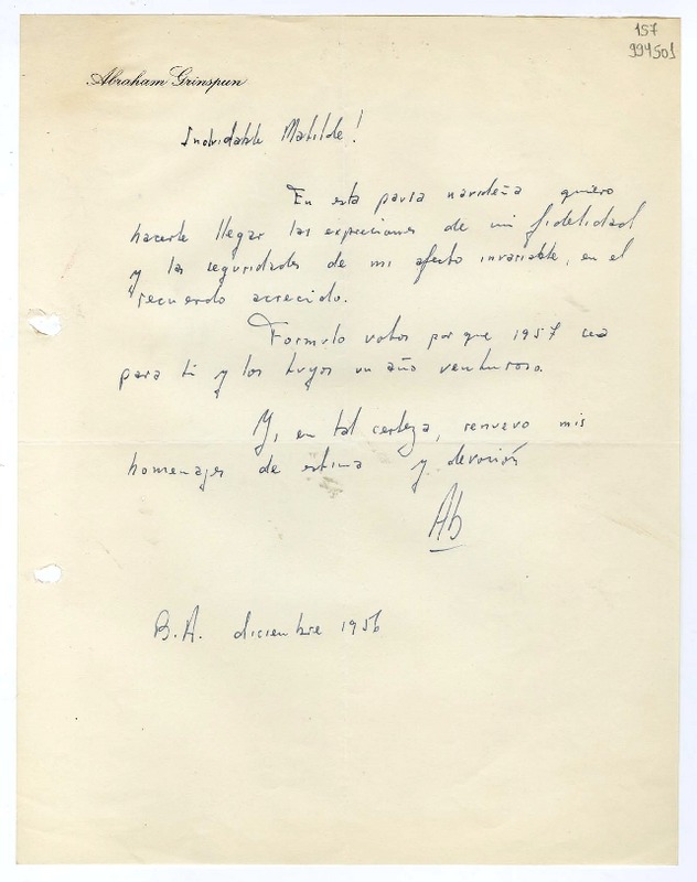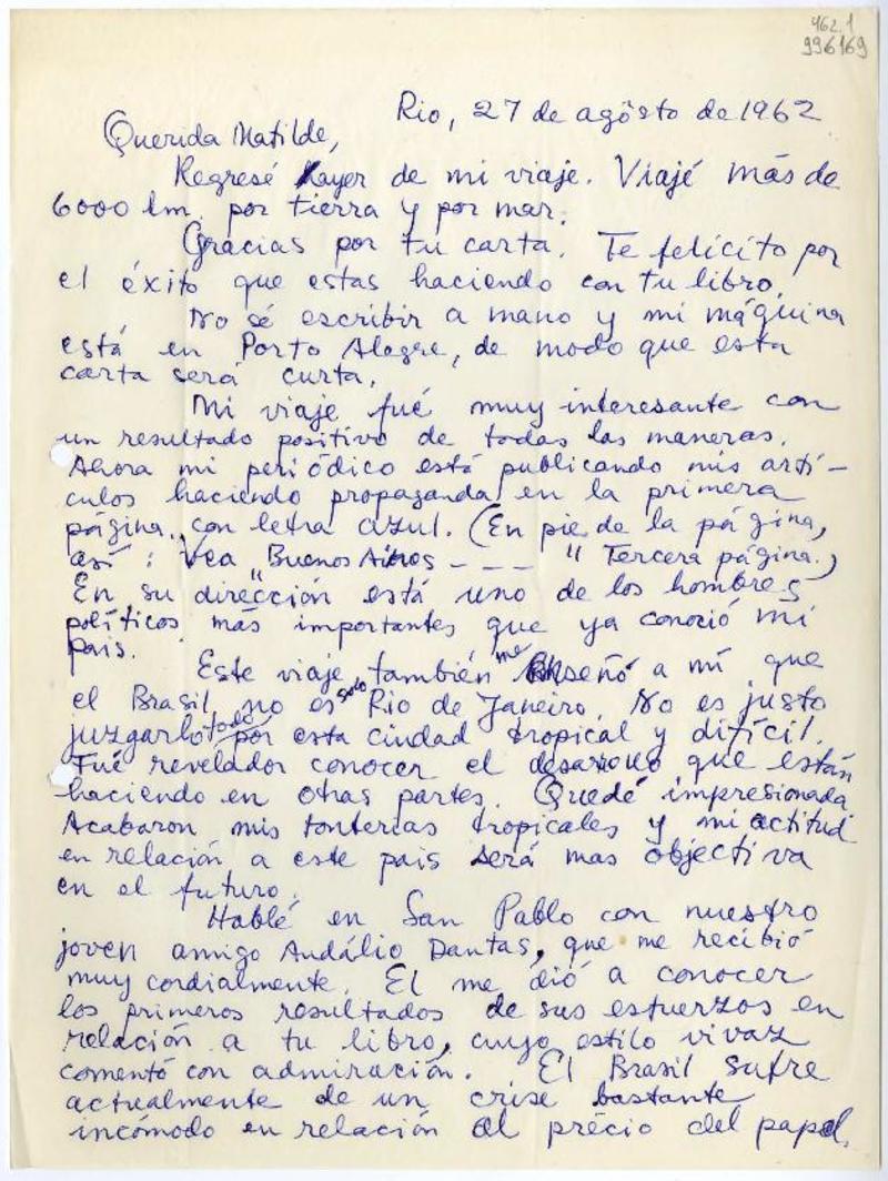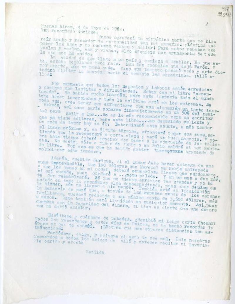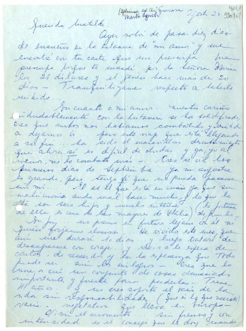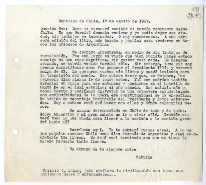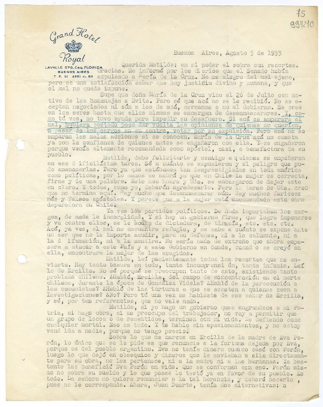 [Carta] 1953 agosto 5, Buenos Aires [a] Querida Matilde [manuscrito].