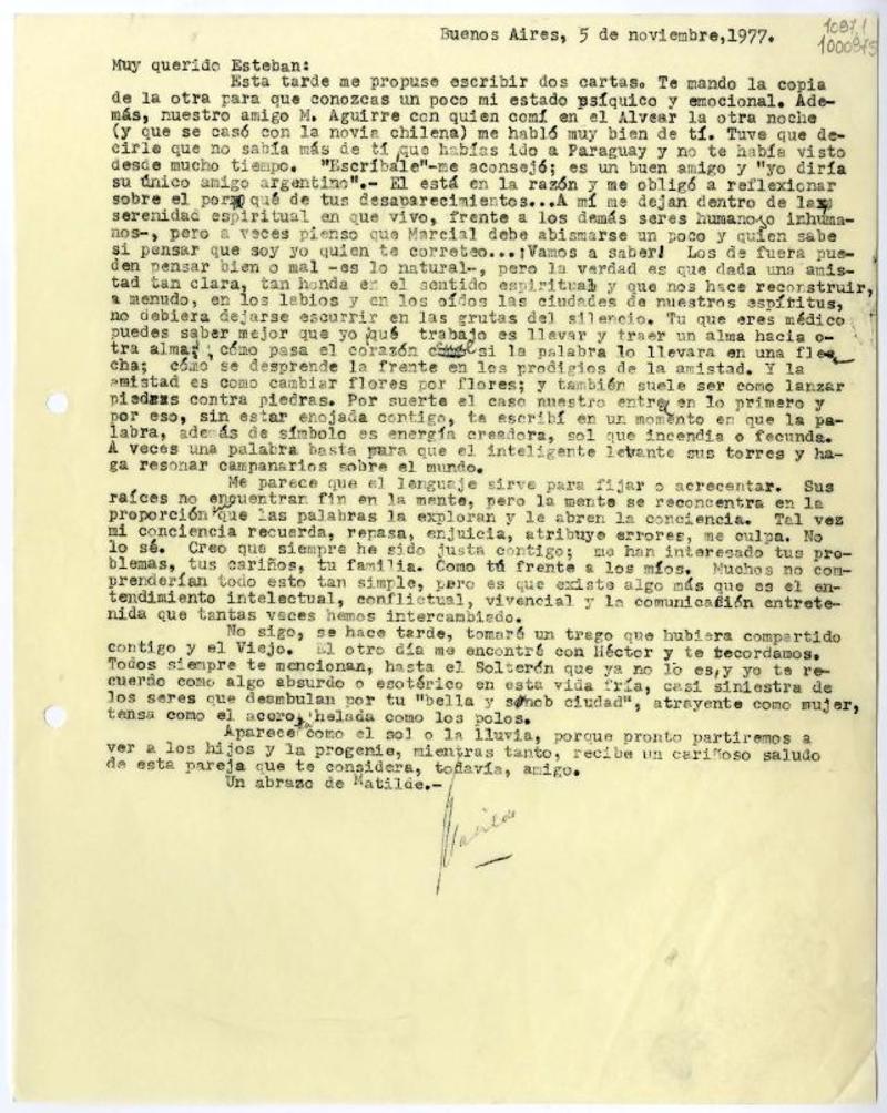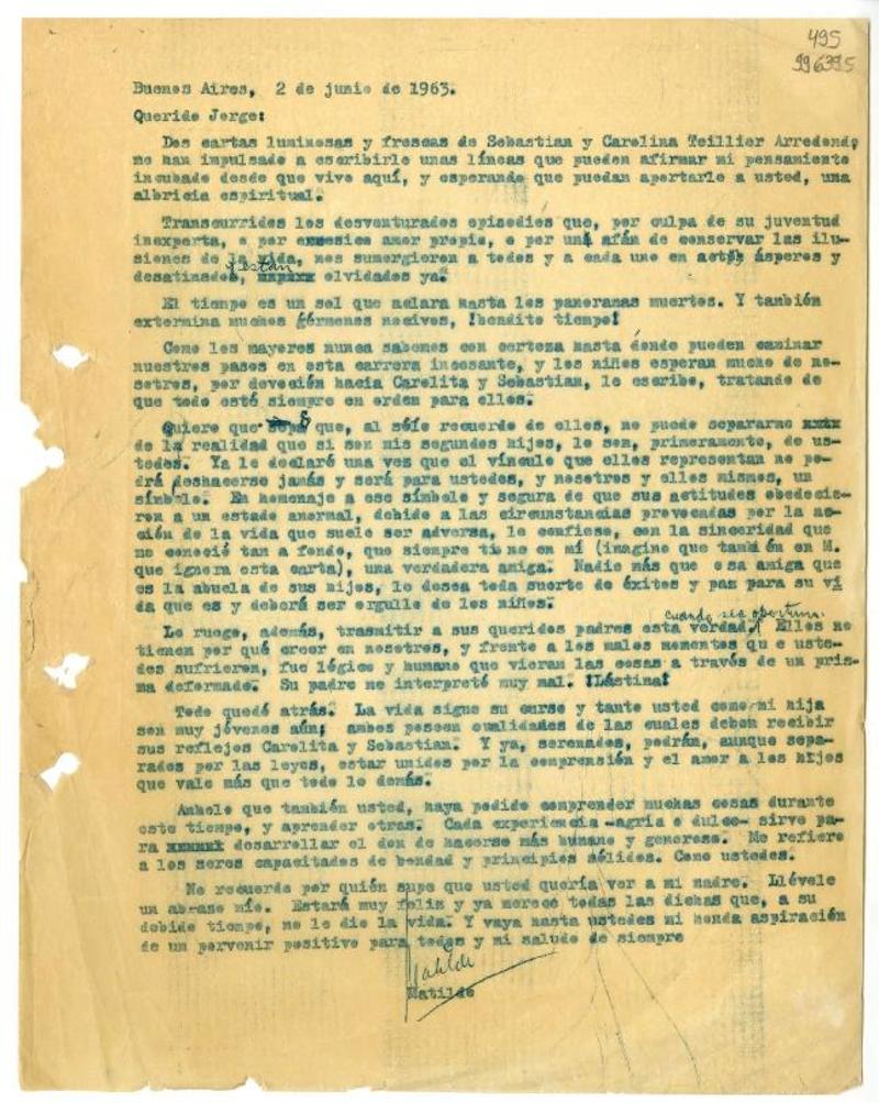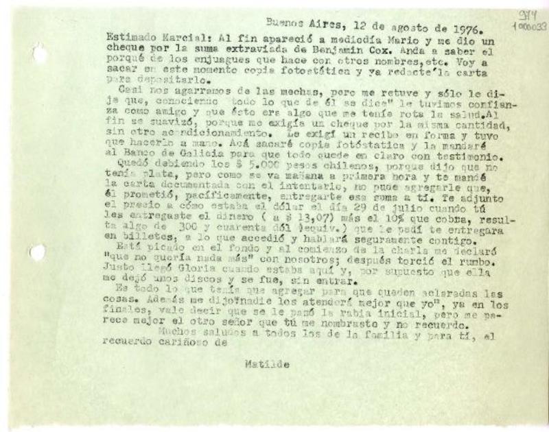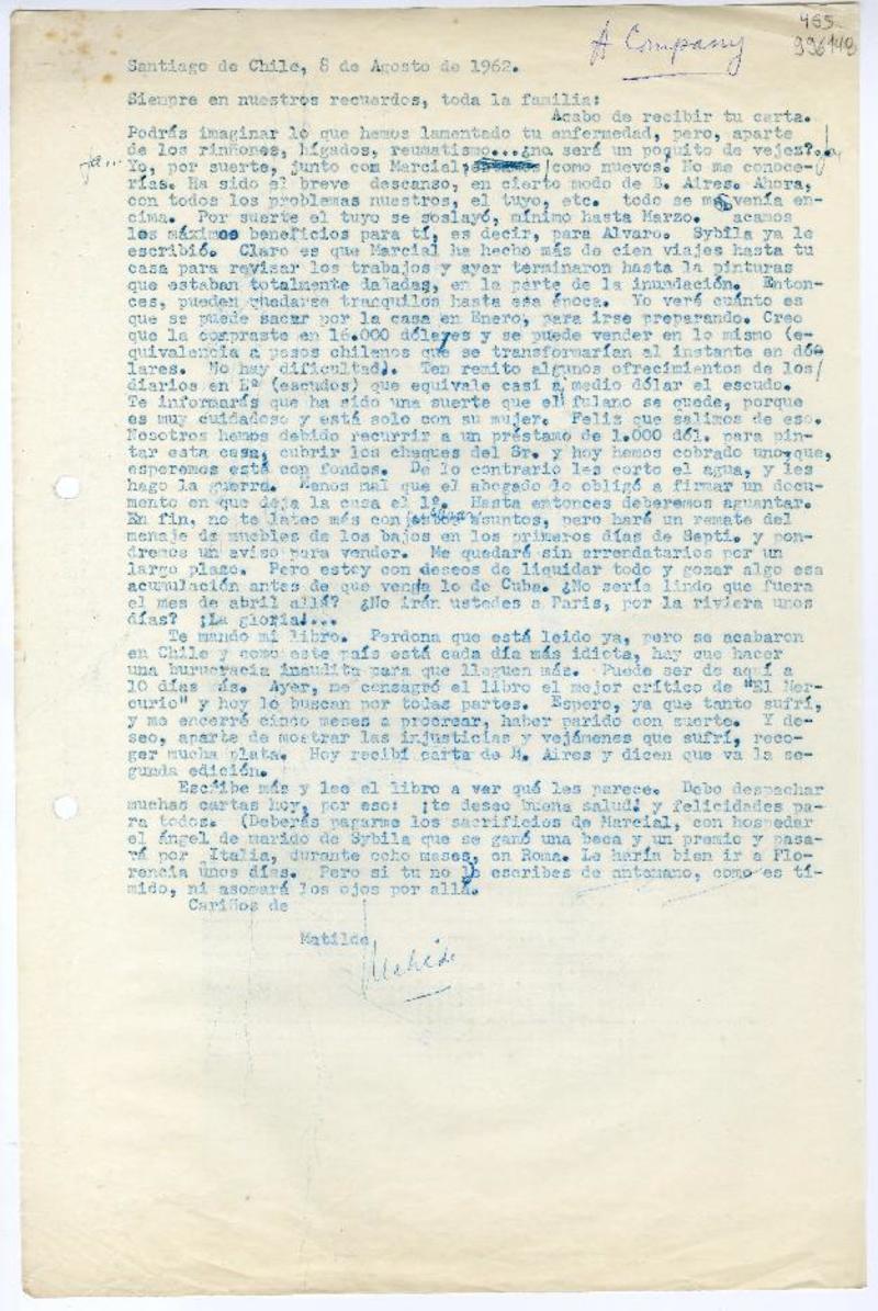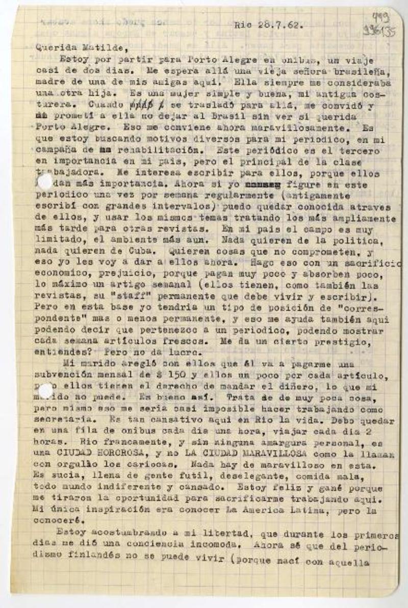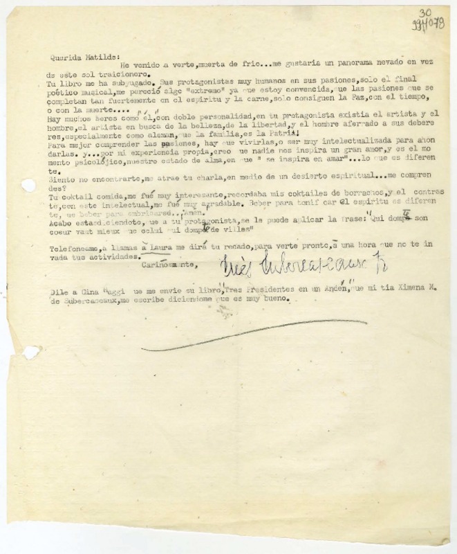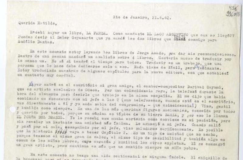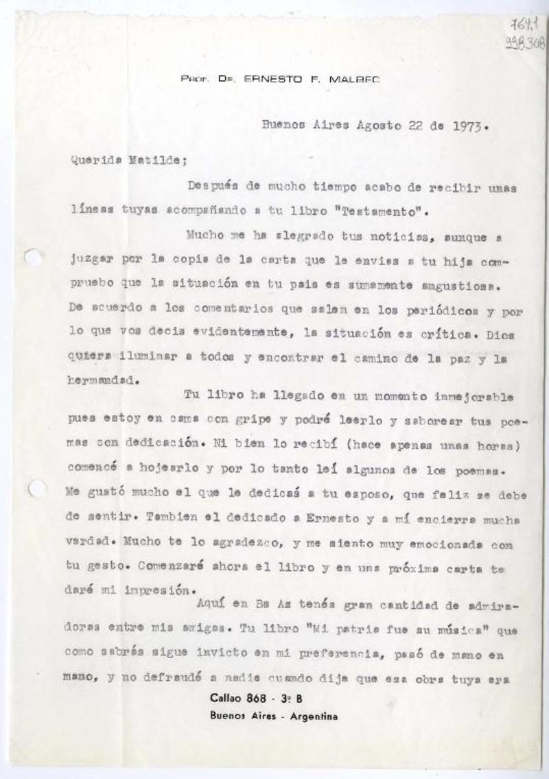 [Carta] 1953 agosto 5, Buenos Aires [a] Querida Matilde [manuscrito].