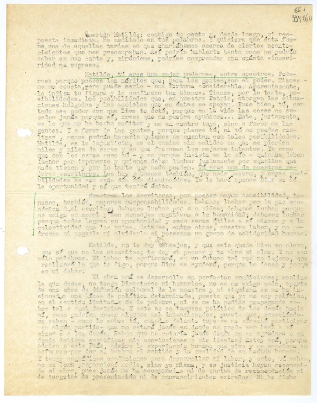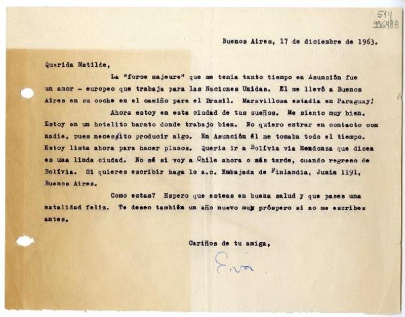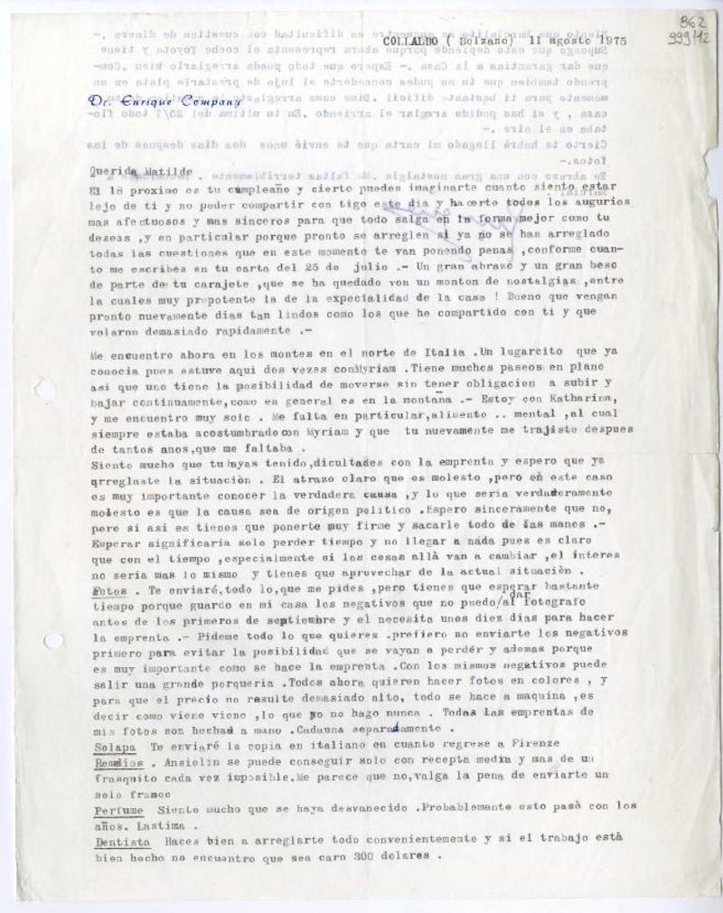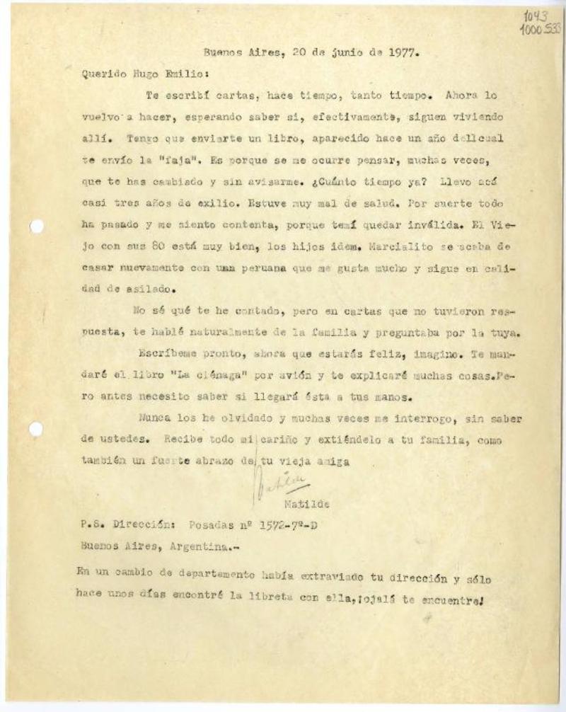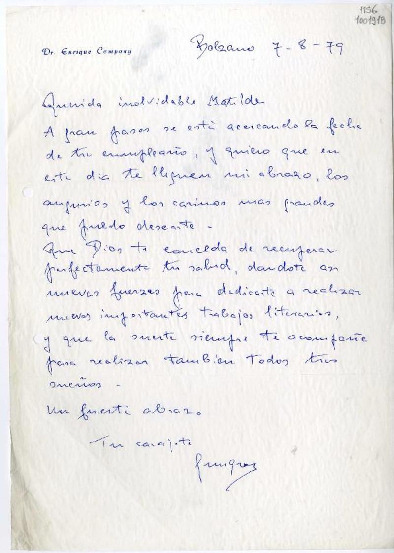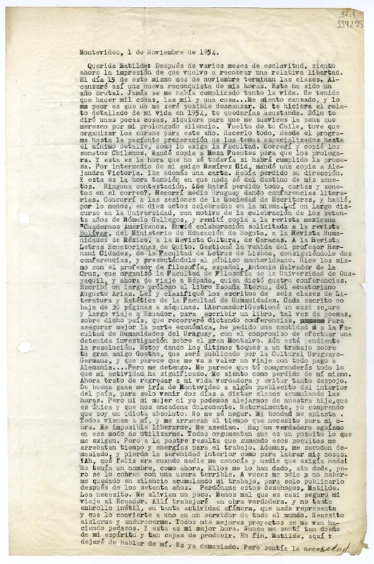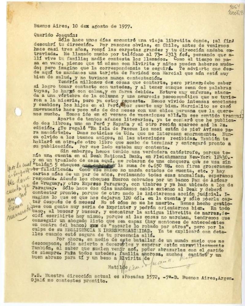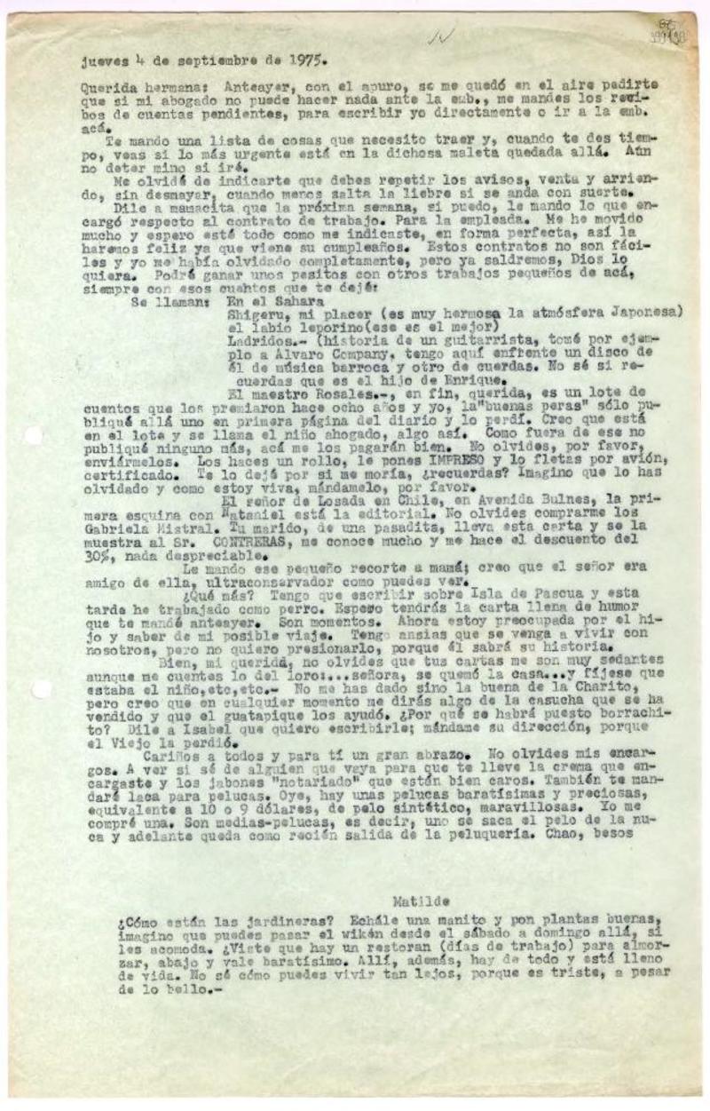 [Carta] 1953 agosto 5, Buenos Aires [a] Querida Matilde [manuscrito].
