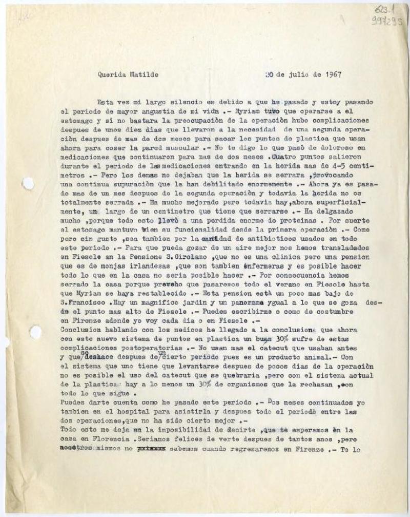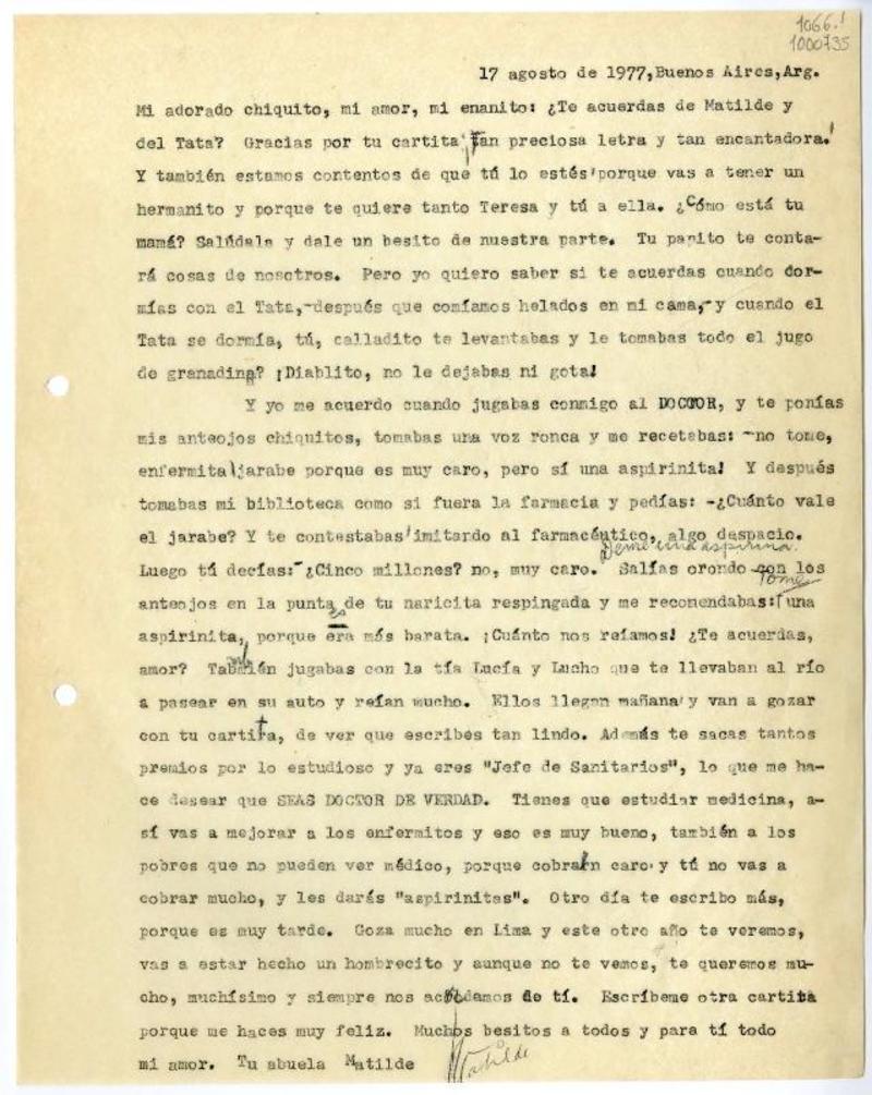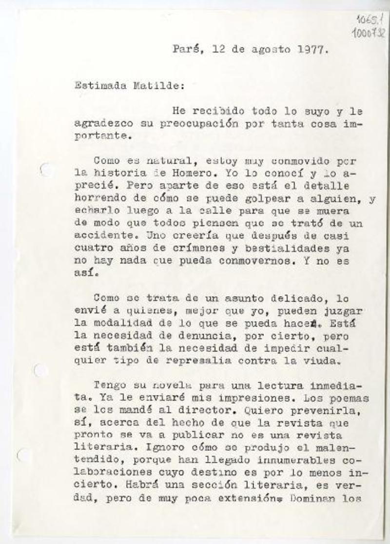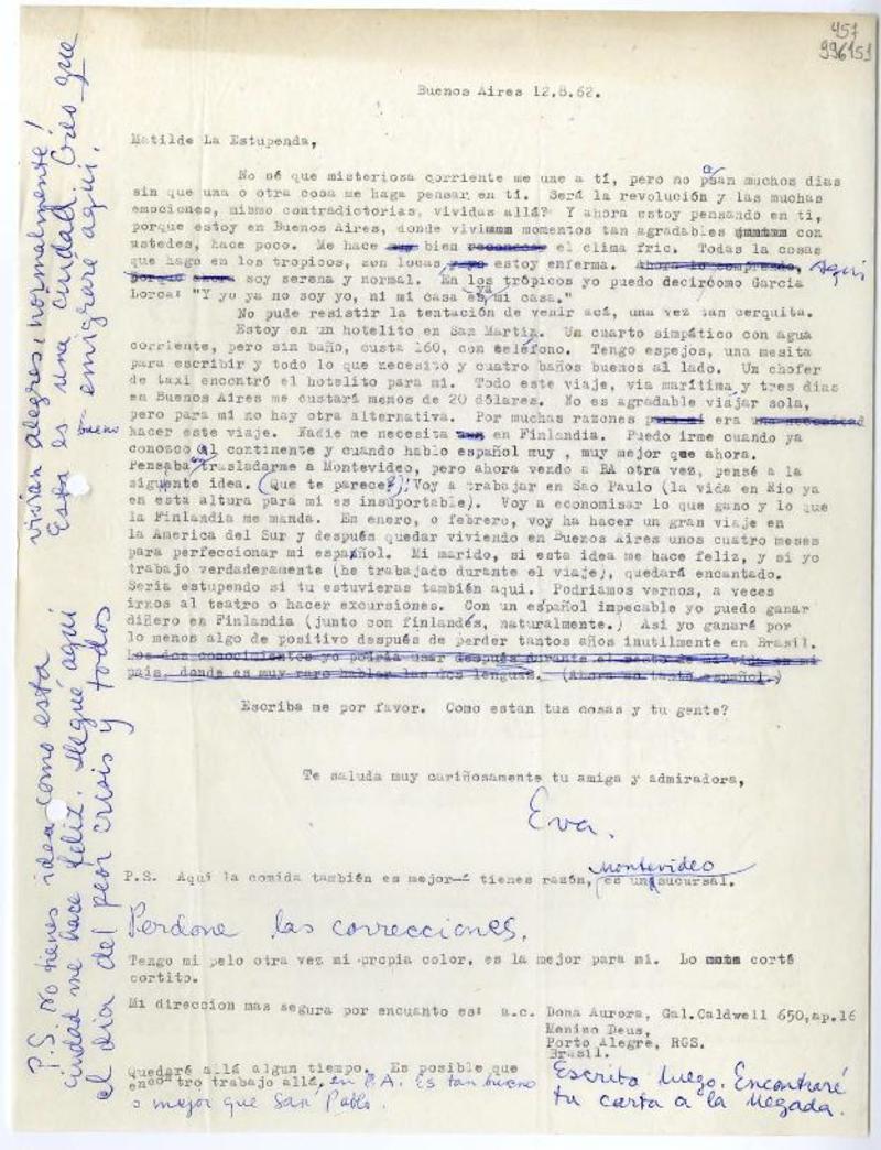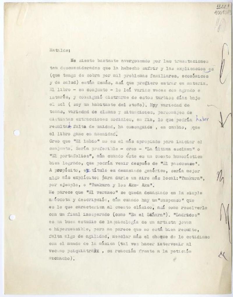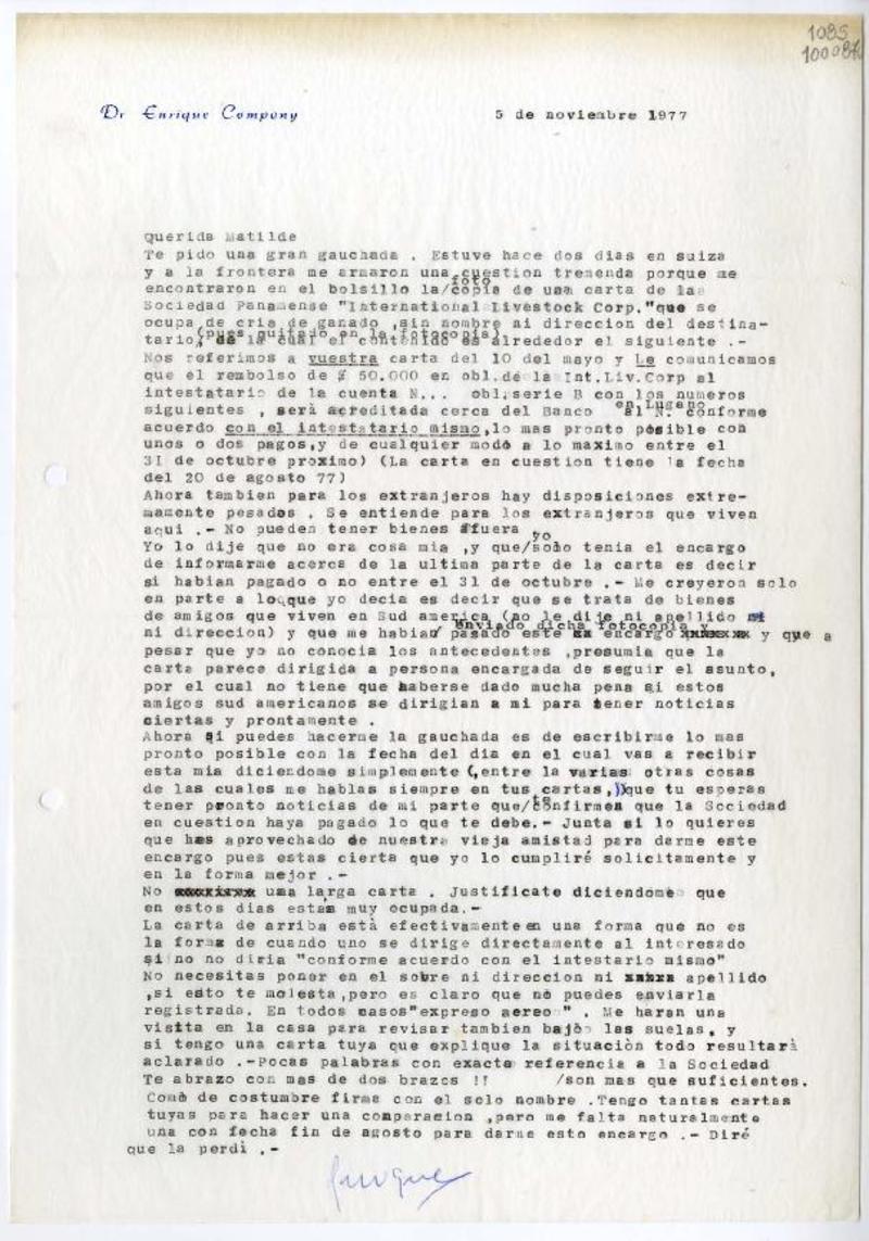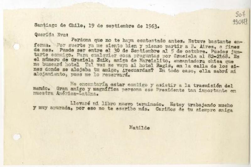 [Carta] 1953 agosto 5, Buenos Aires [a] Querida Matilde [manuscrito].