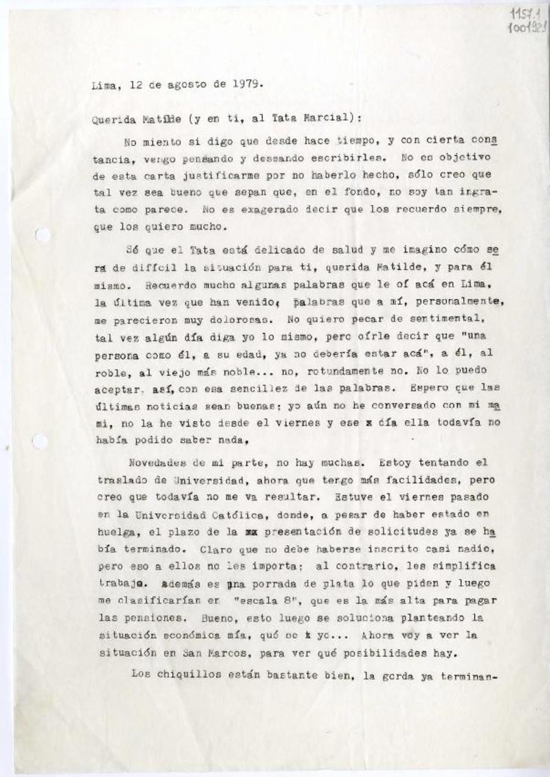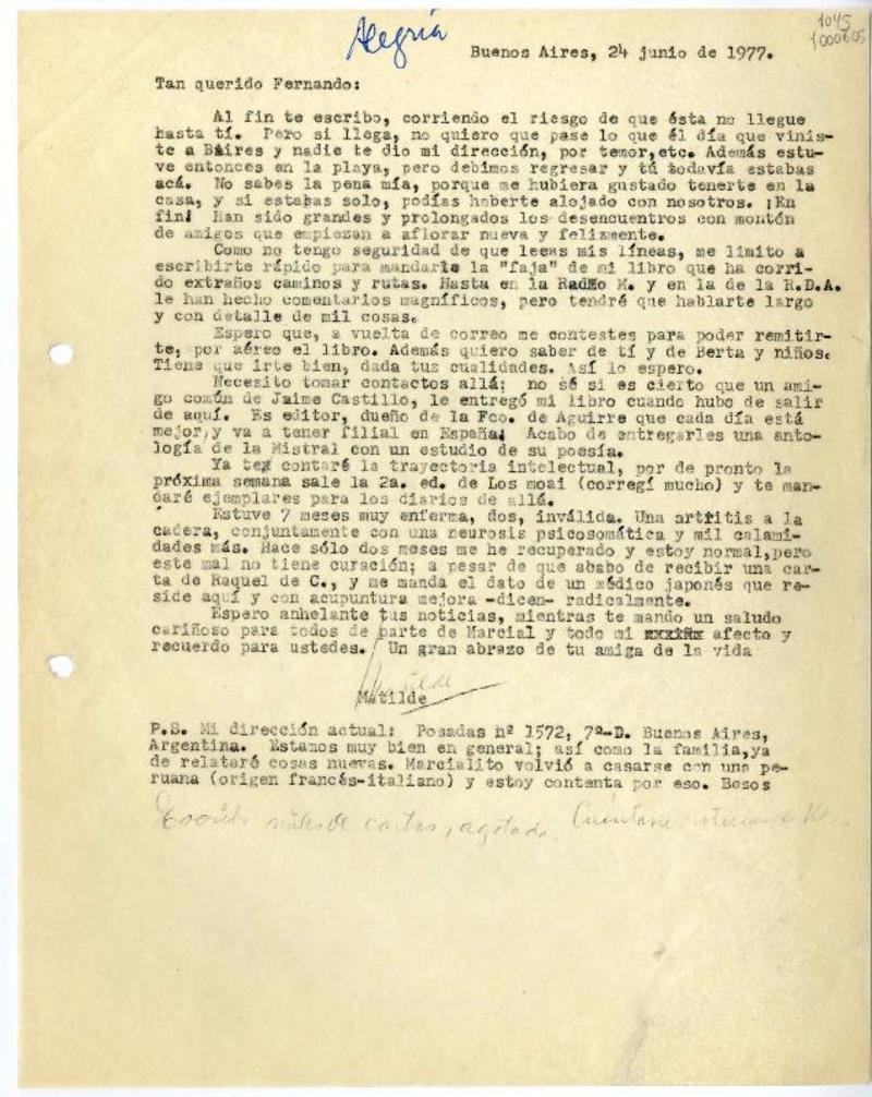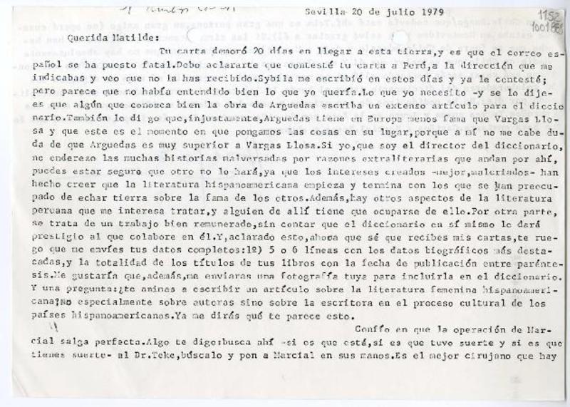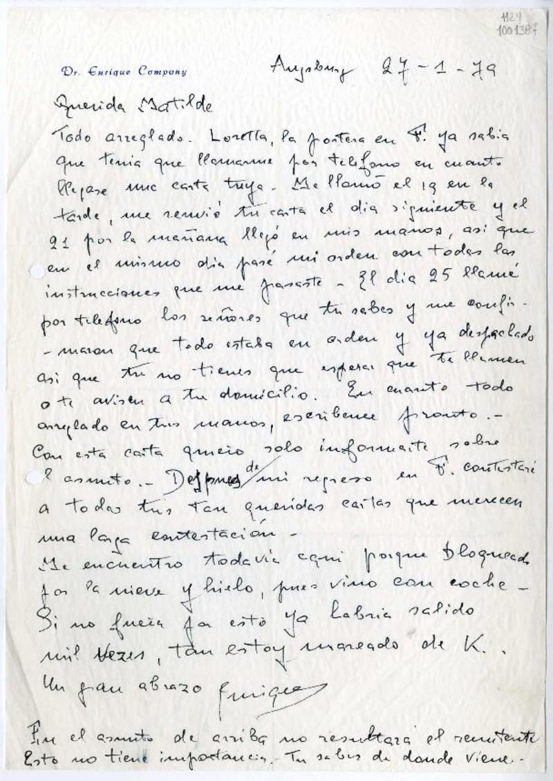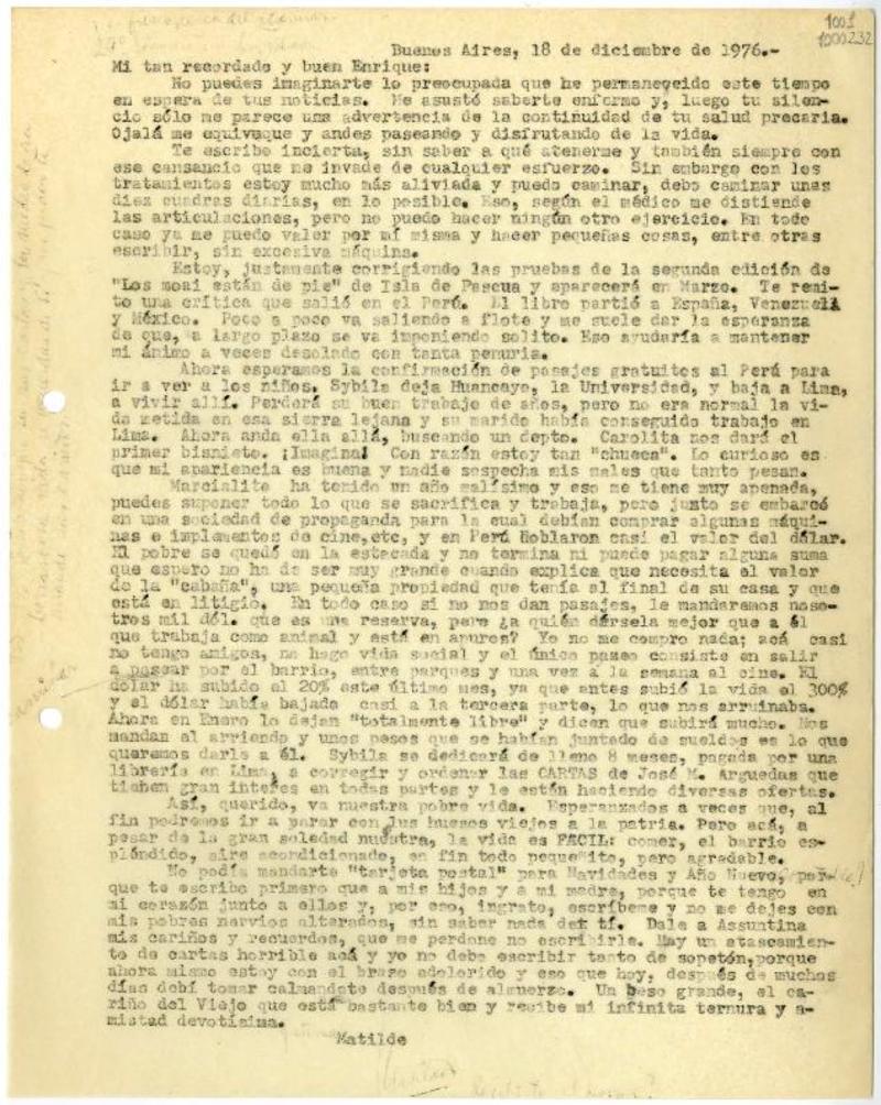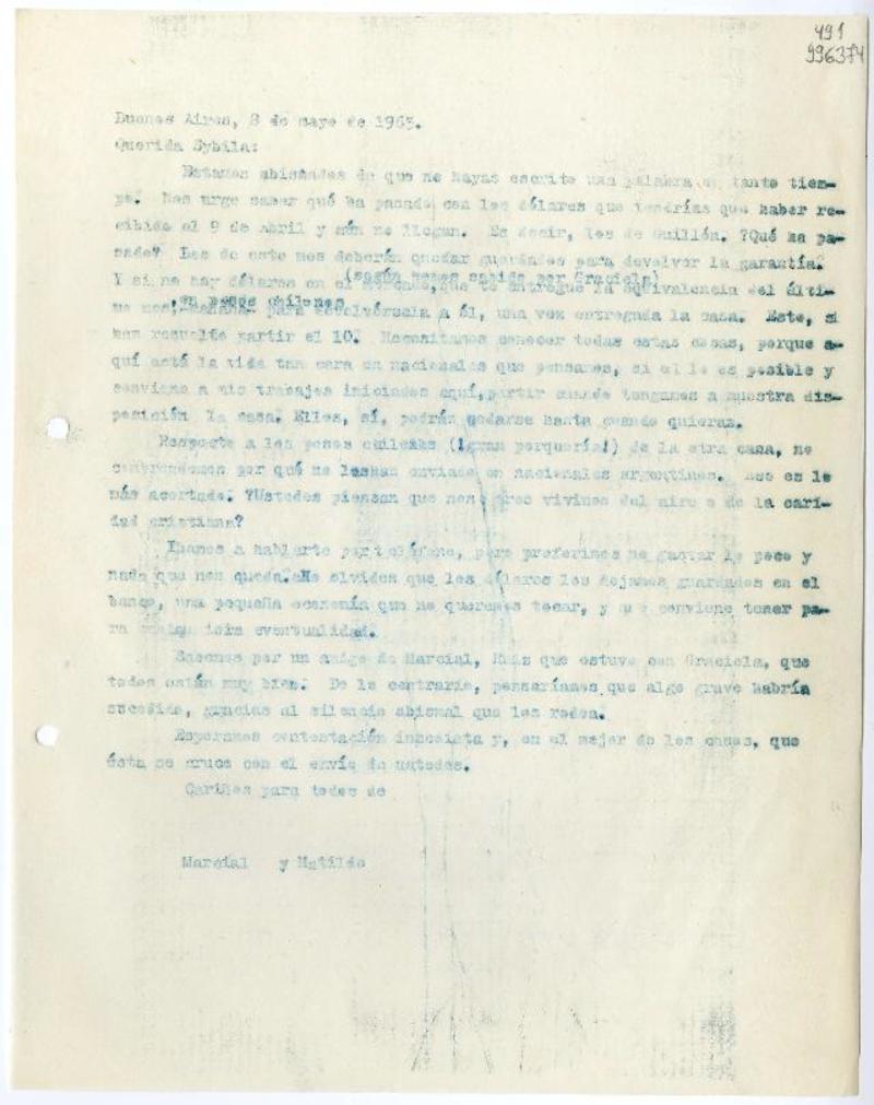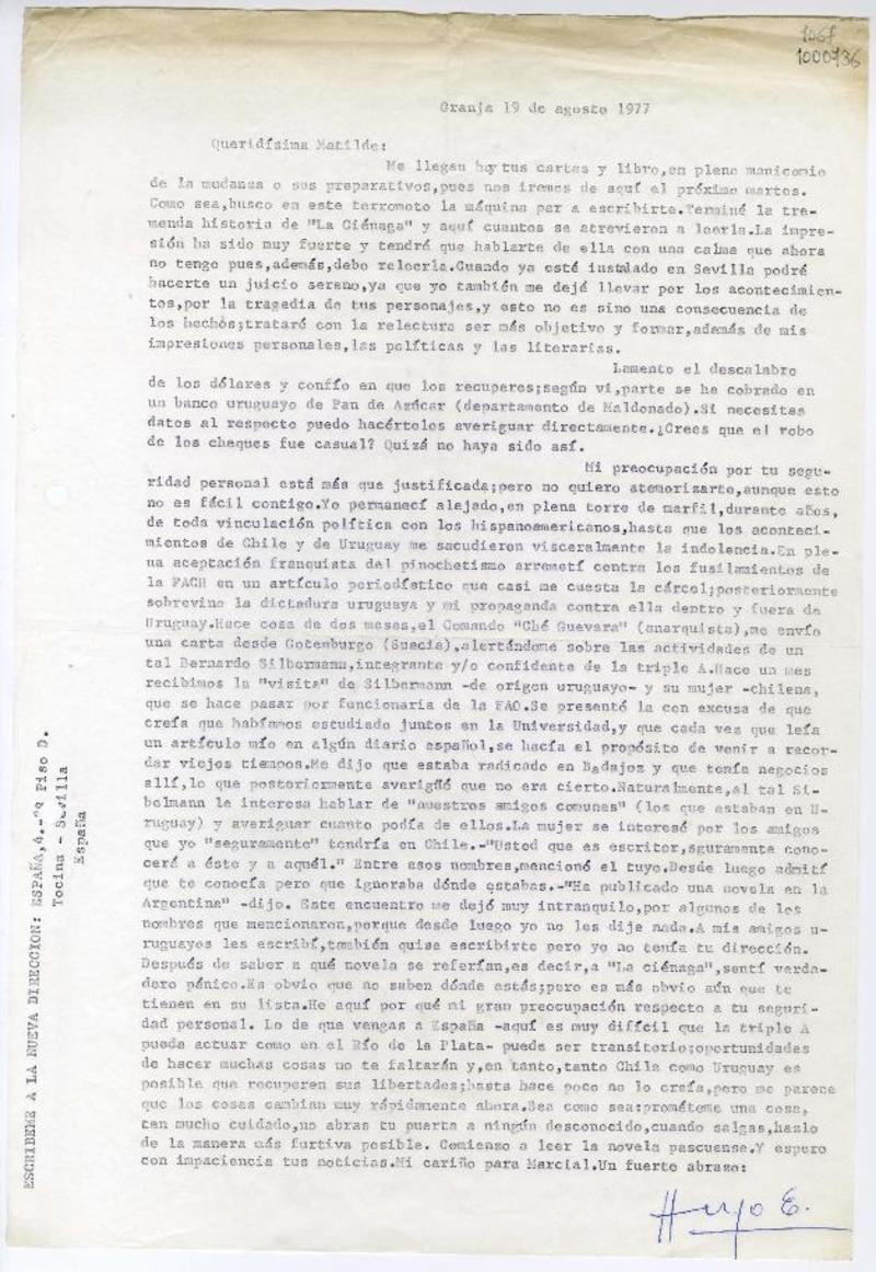 [Carta] 1953 agosto 5, Buenos Aires [a] Querida Matilde [manuscrito].