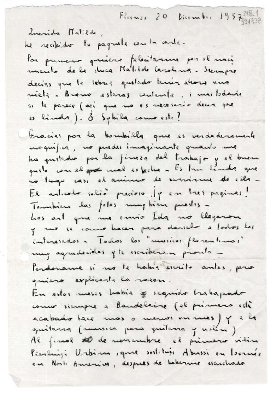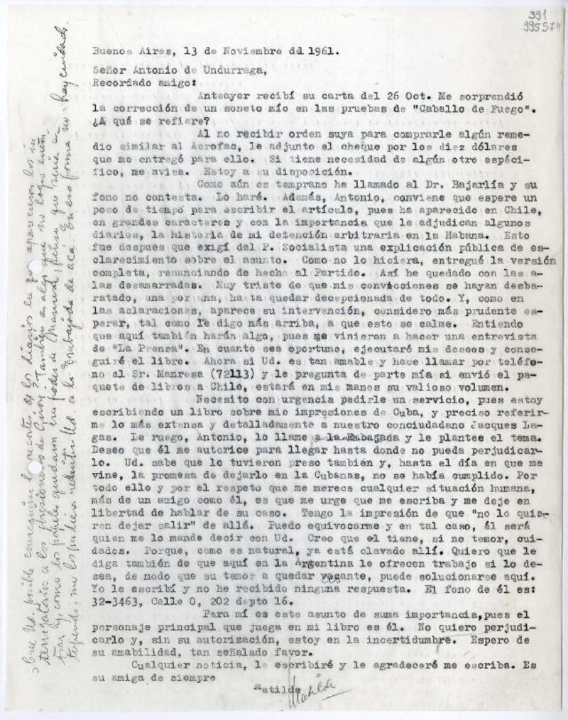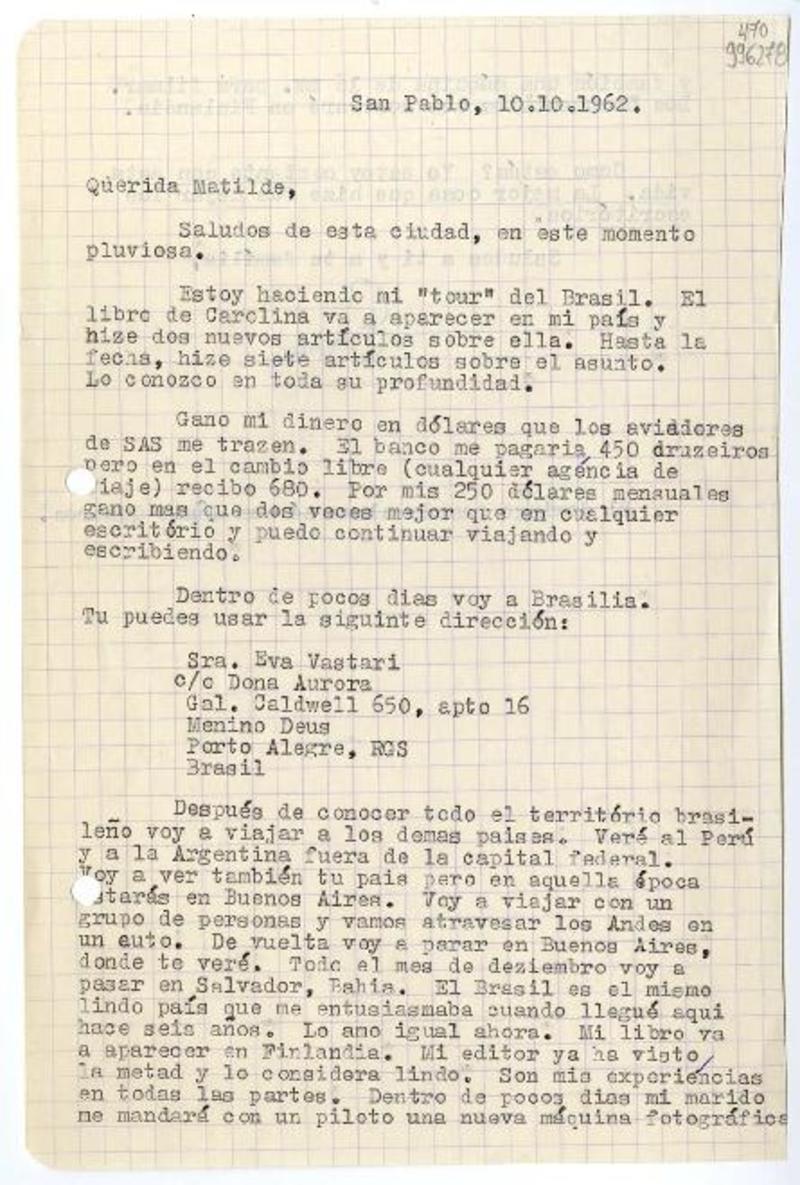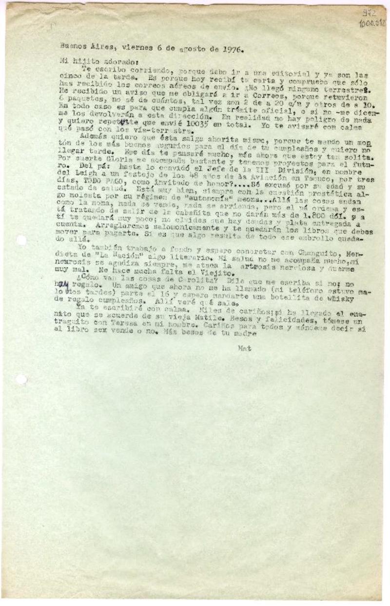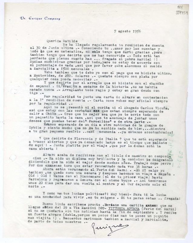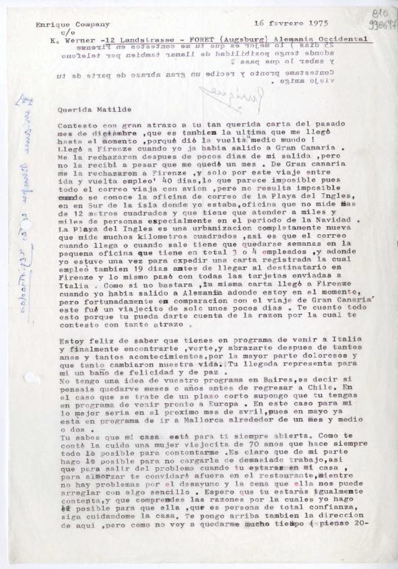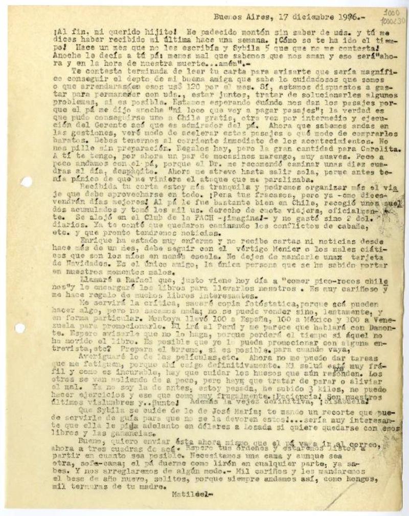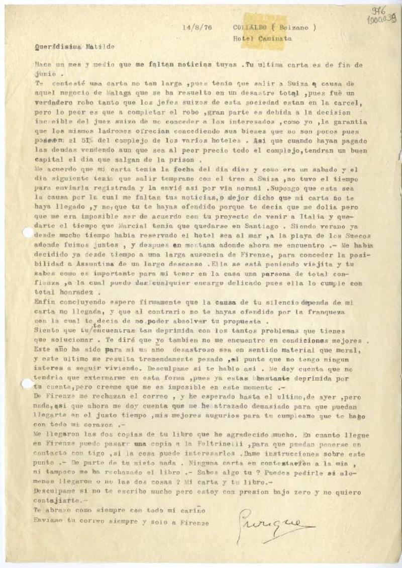 [Carta] 1953 agosto 5, Buenos Aires [a] Querida Matilde [manuscrito].