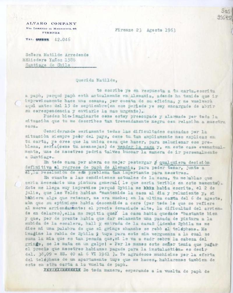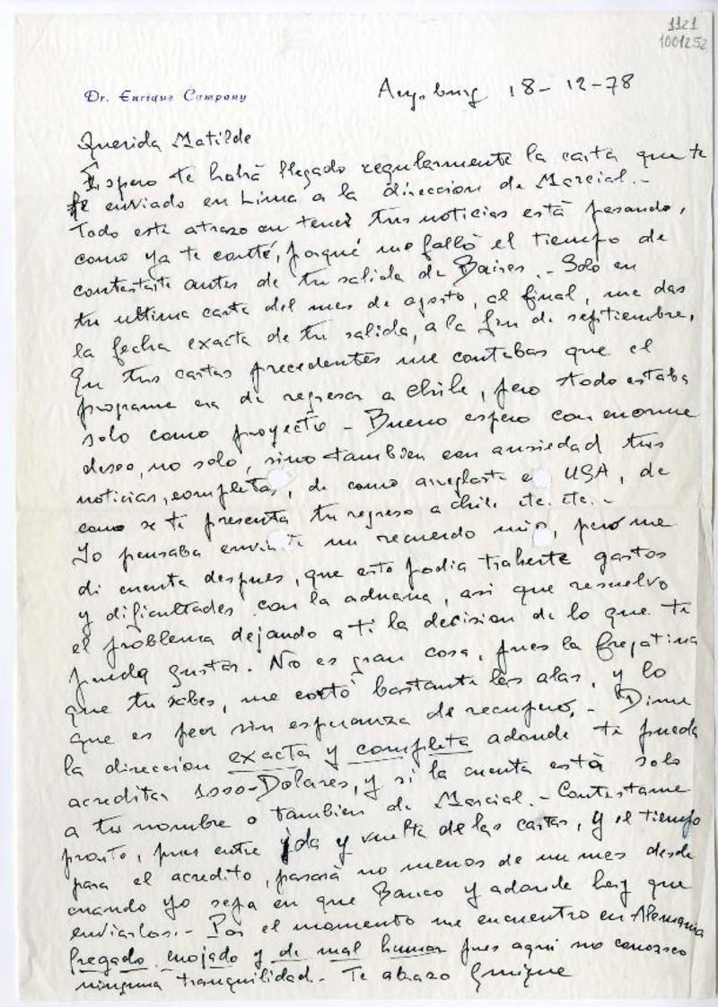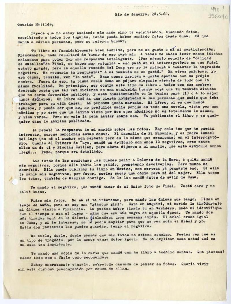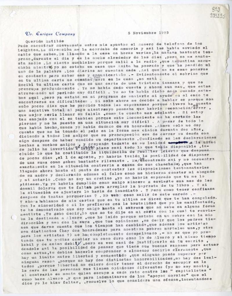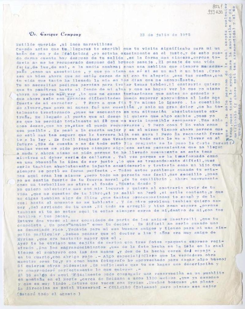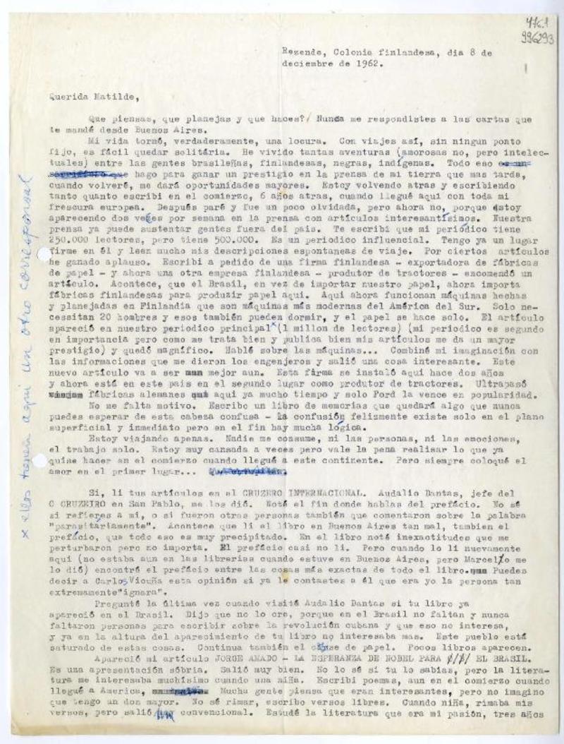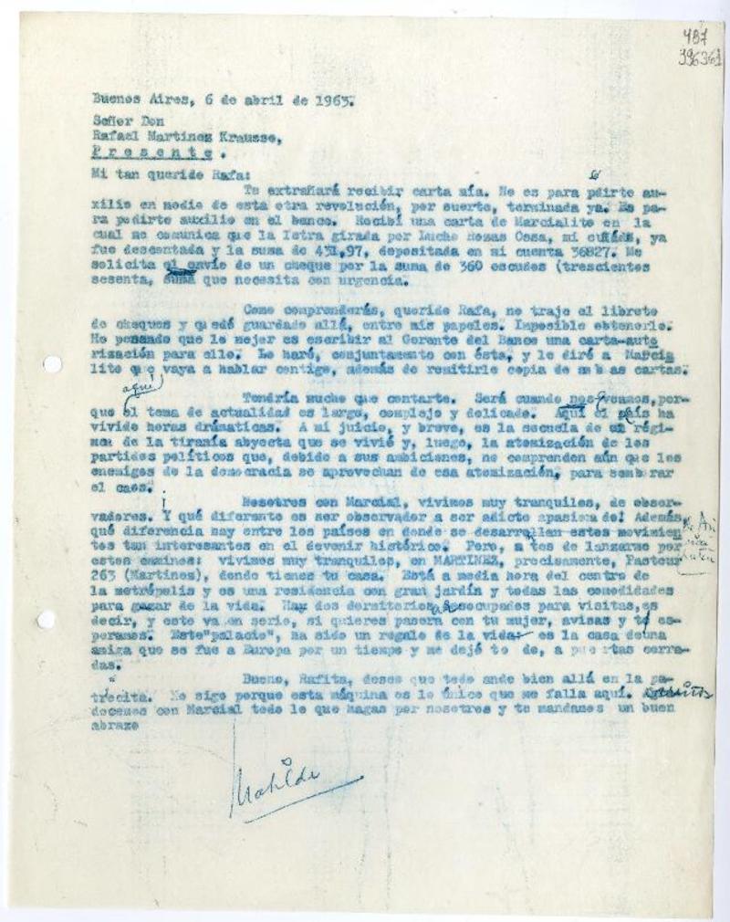 [Carta] 1953 agosto 5, Buenos Aires [a] Querida Matilde [manuscrito].
