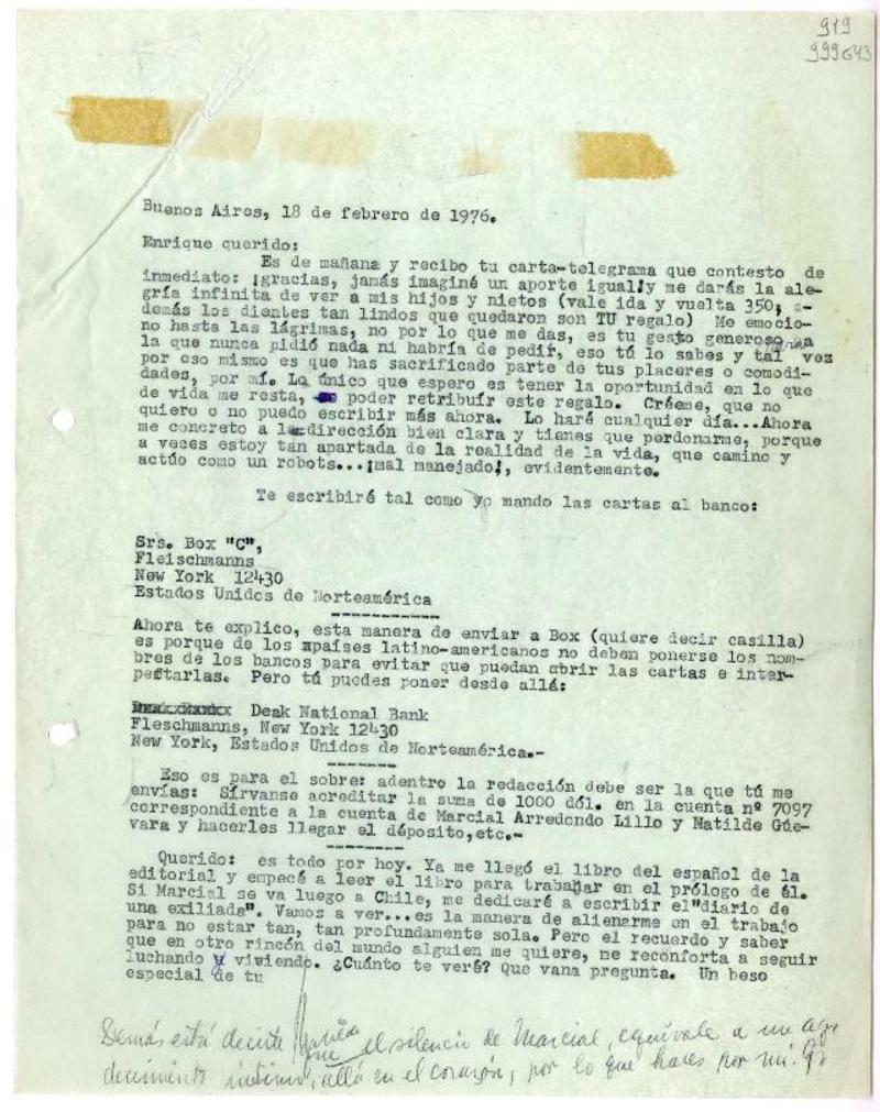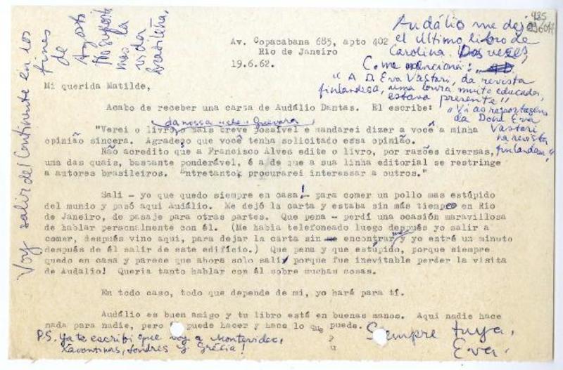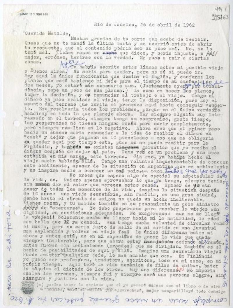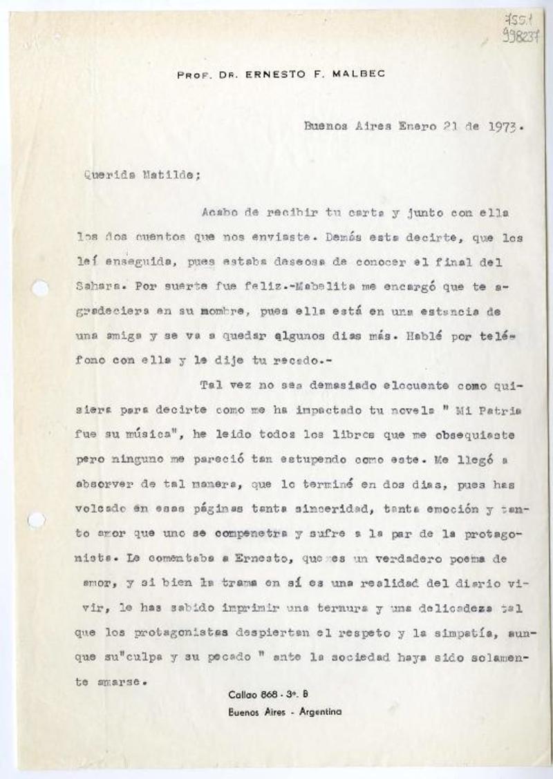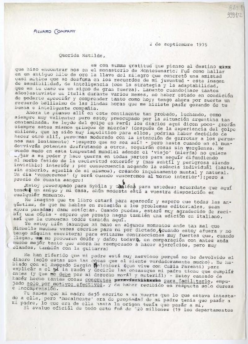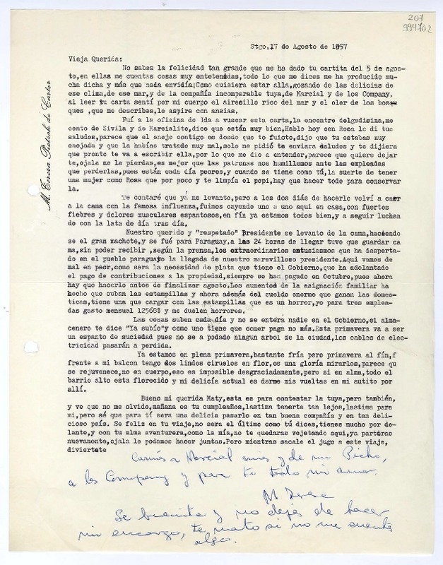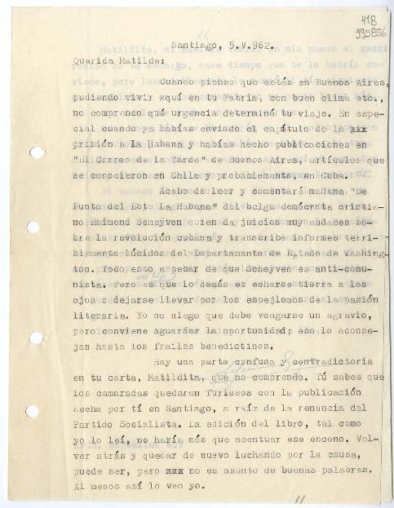 [Carta] 1953 agosto 5, Buenos Aires [a] Querida Matilde [manuscrito].
