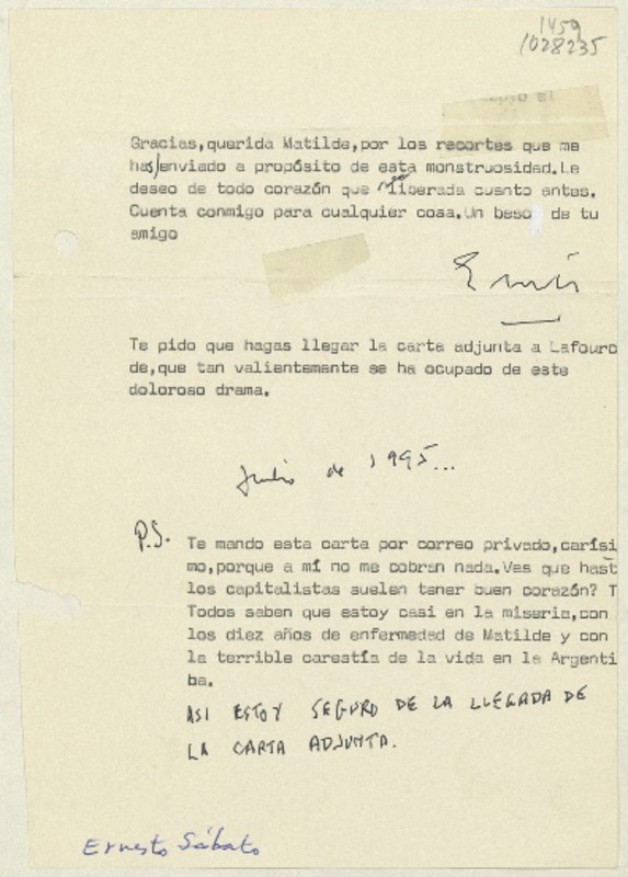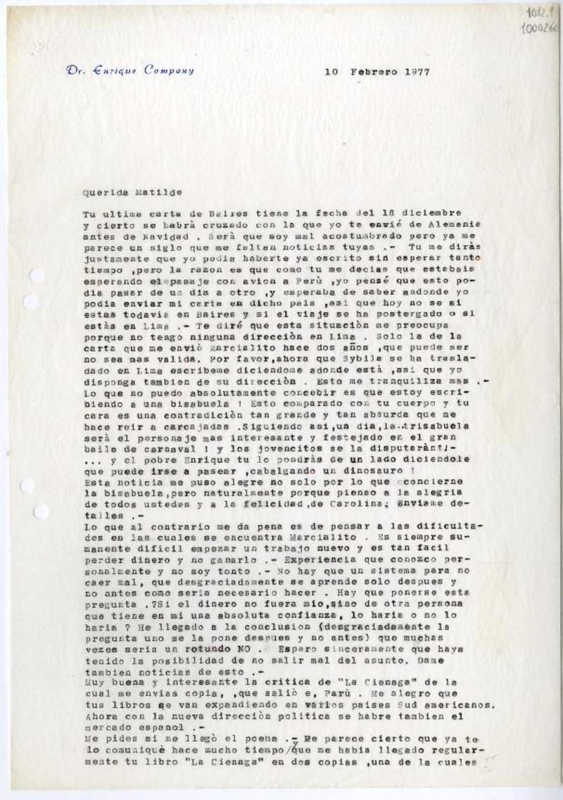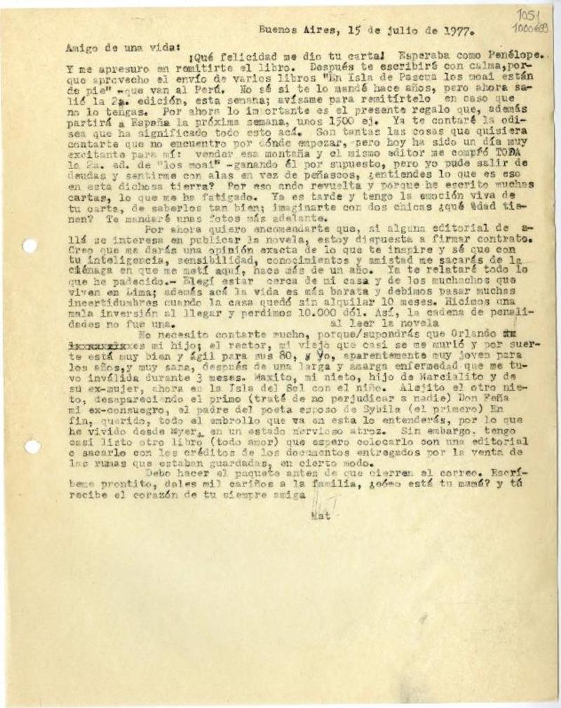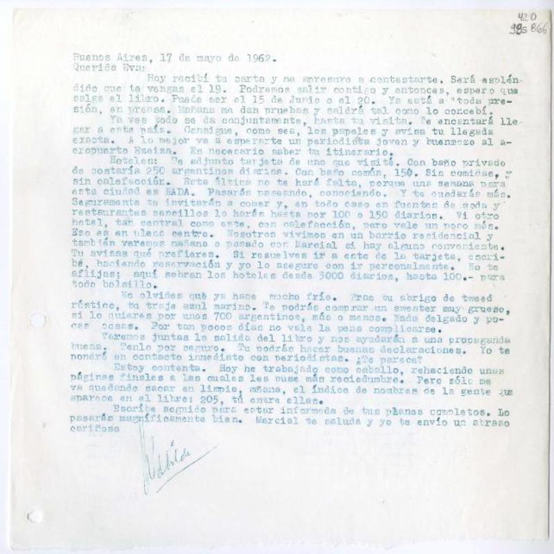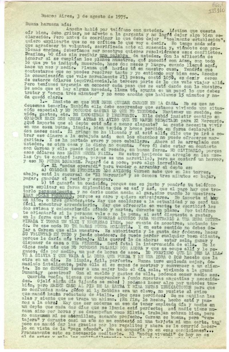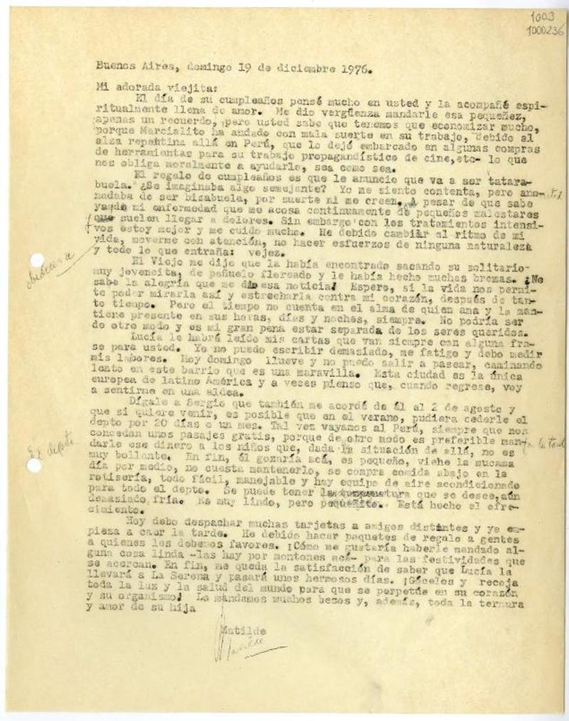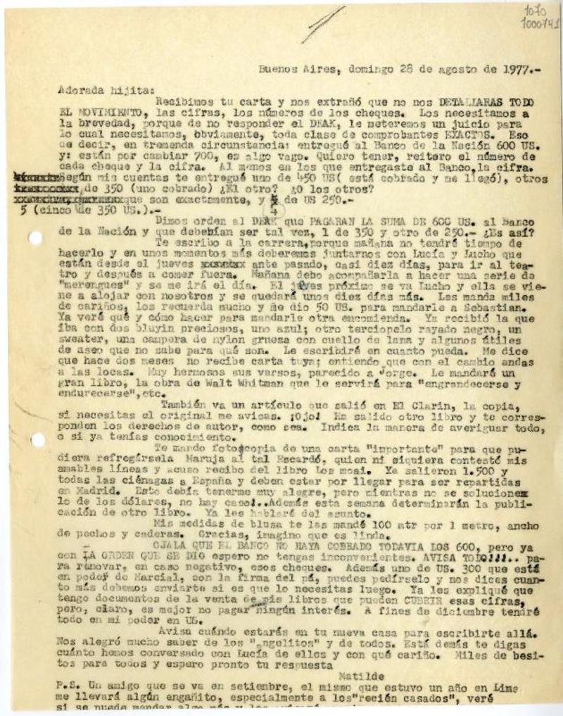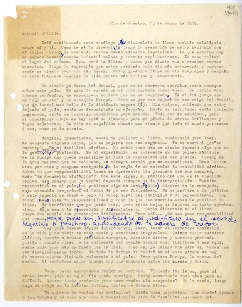 [Carta] 1953 agosto 5, Buenos Aires [a] Querida Matilde [manuscrito].