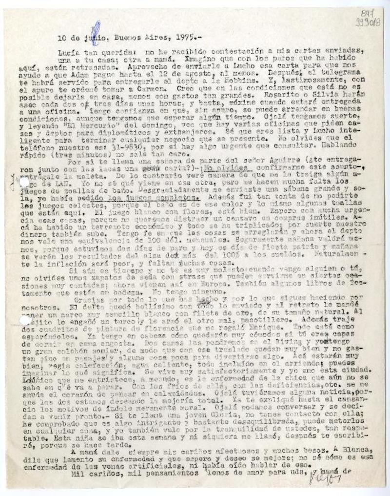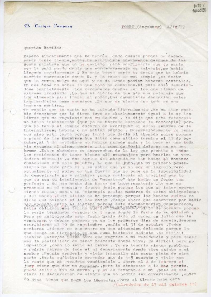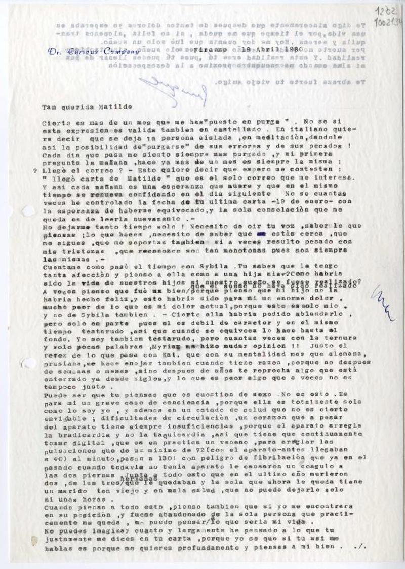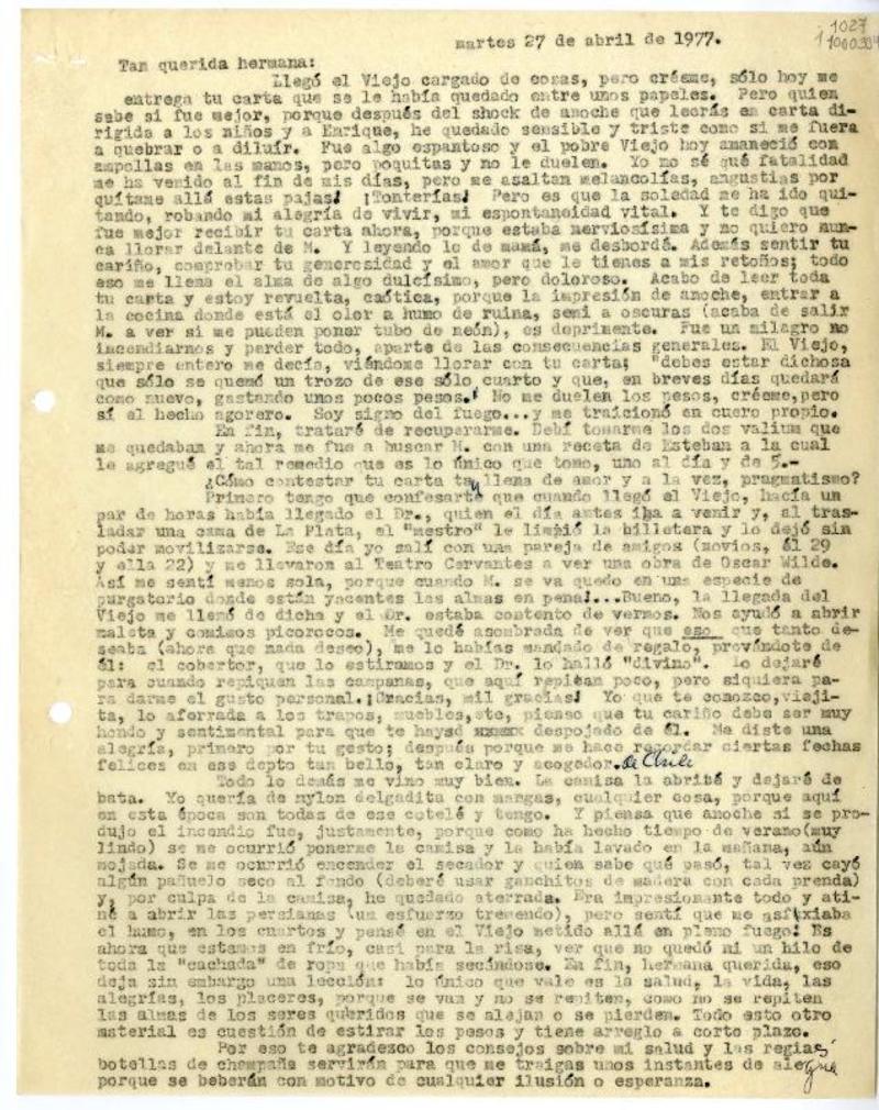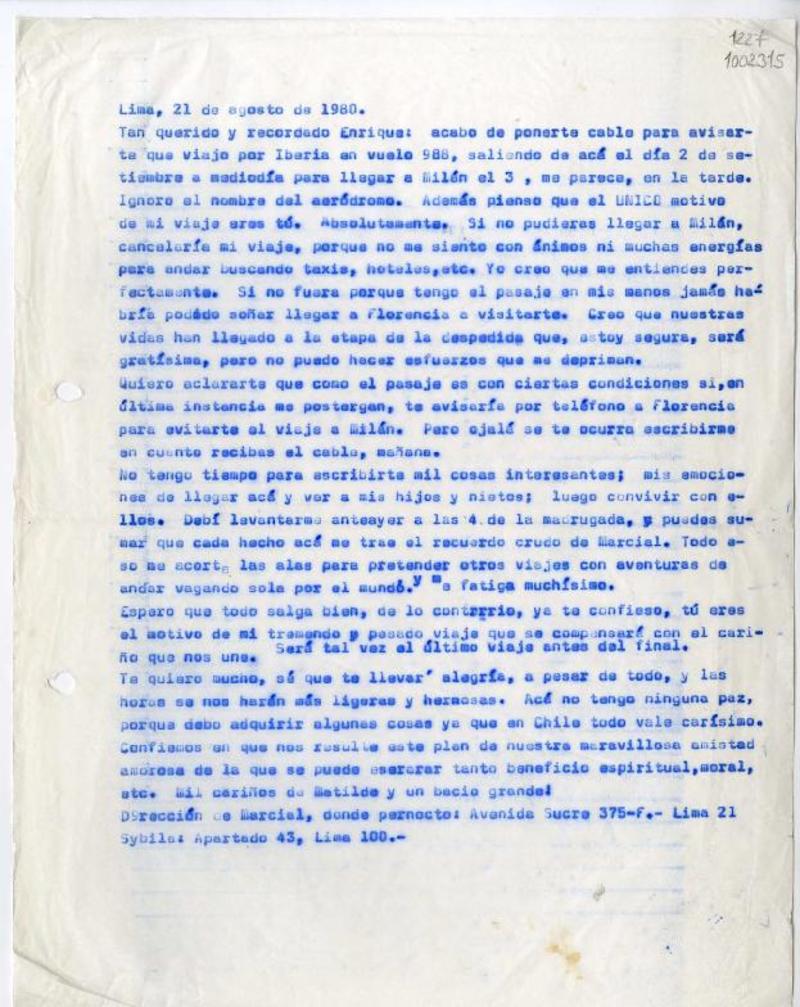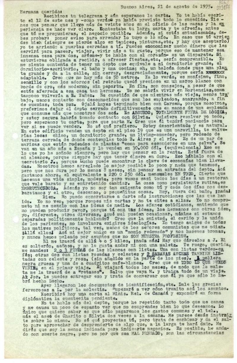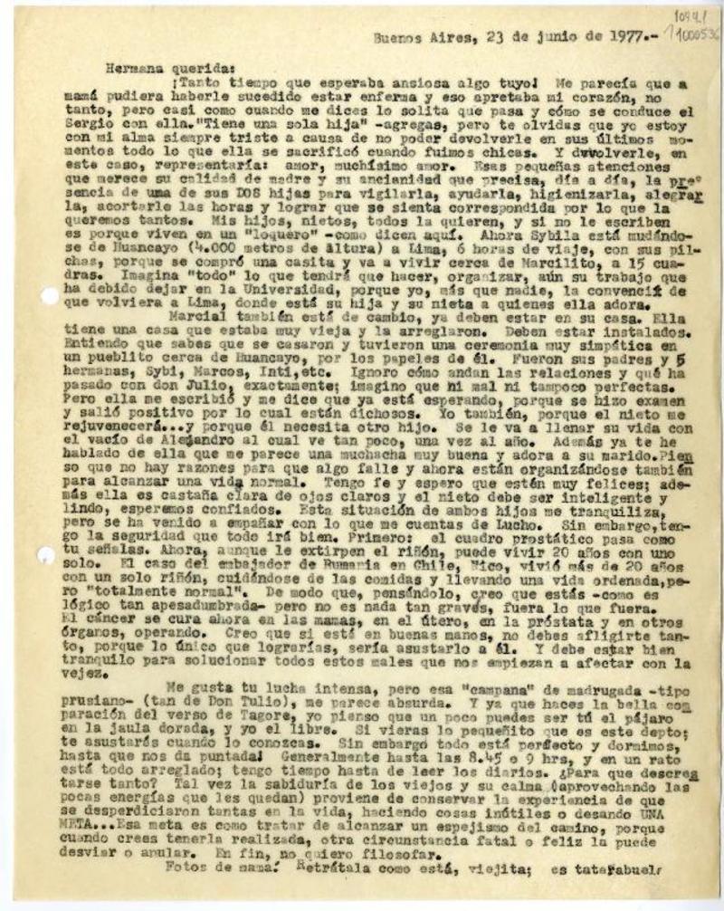 [Carta] 1953 agosto 5, Buenos Aires [a] Querida Matilde [manuscrito].