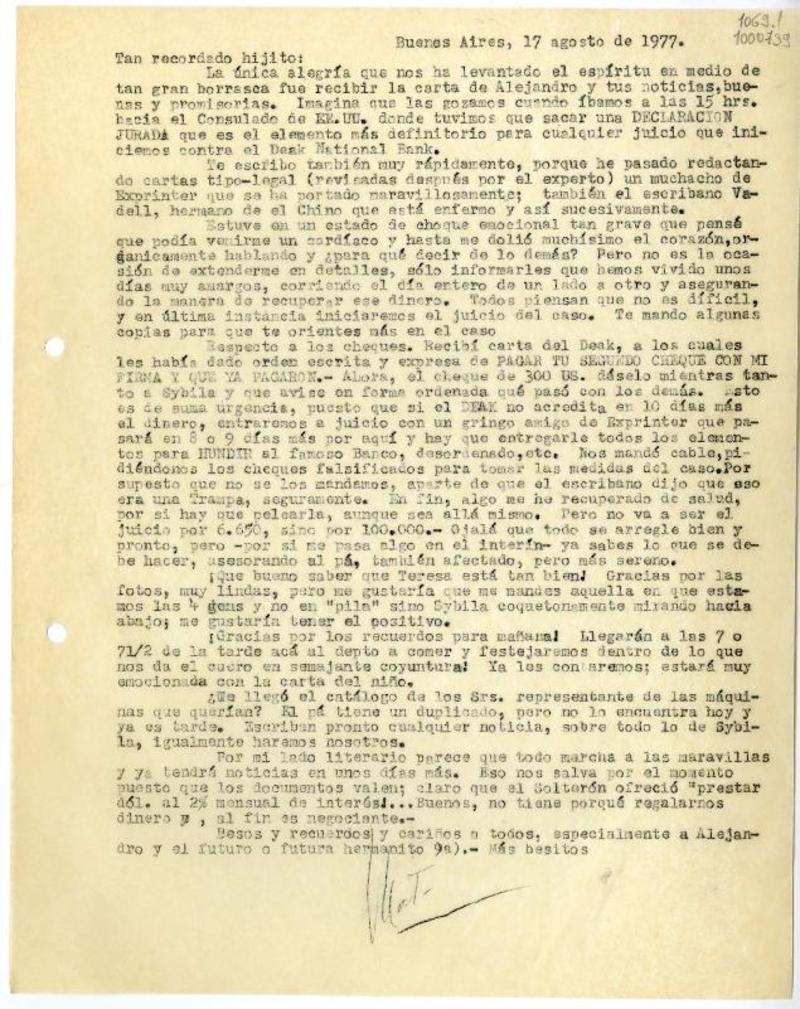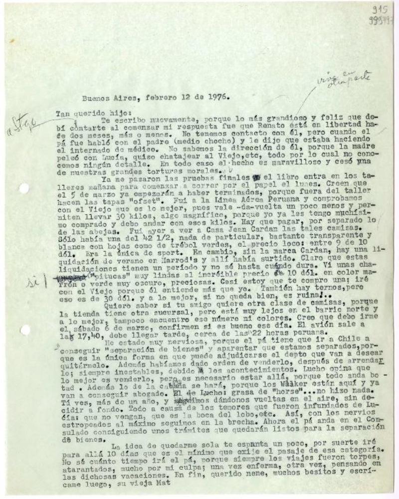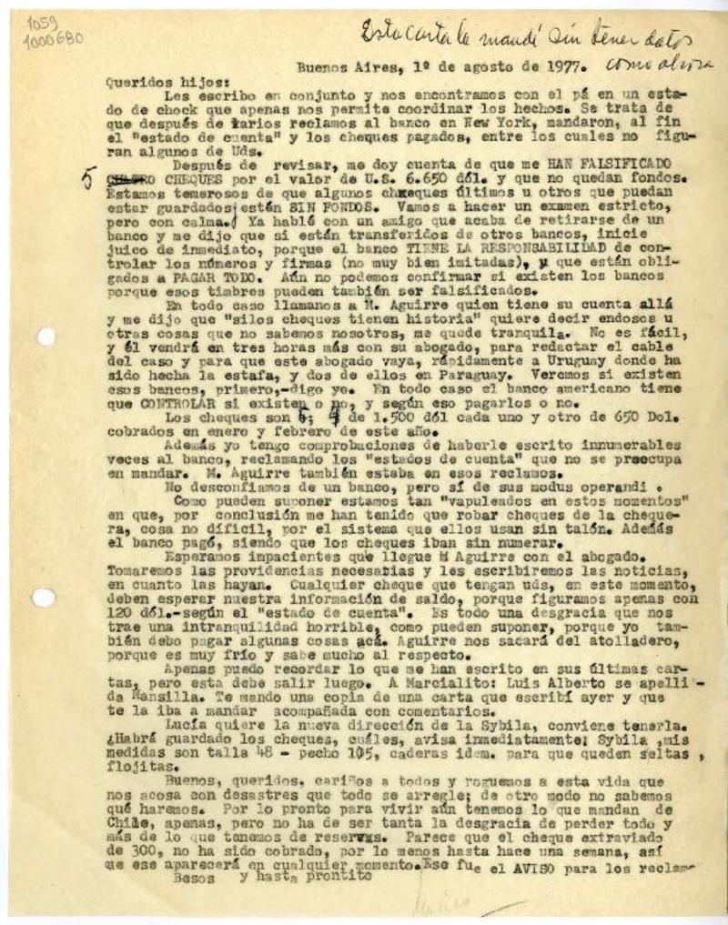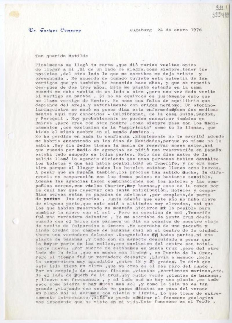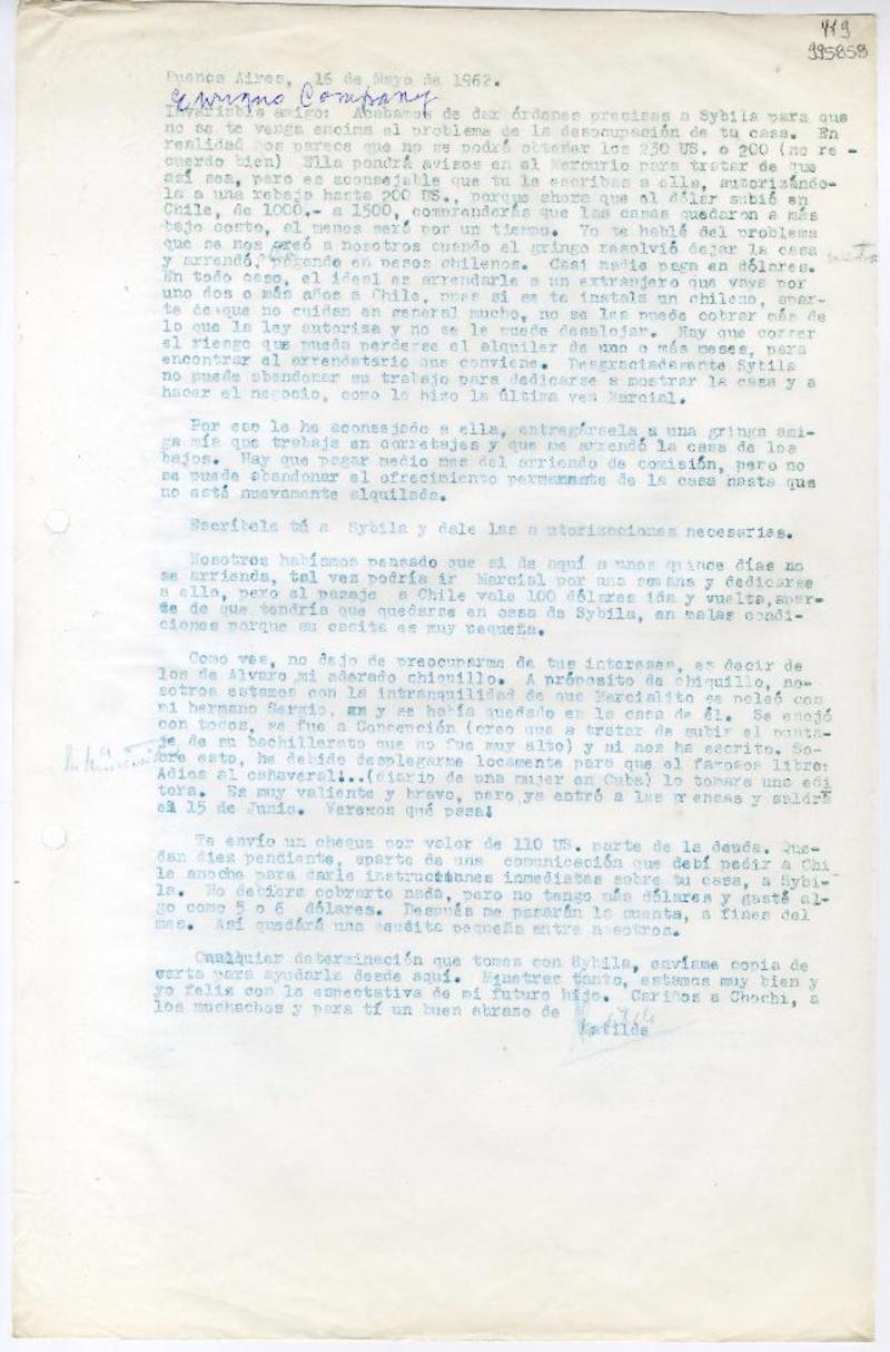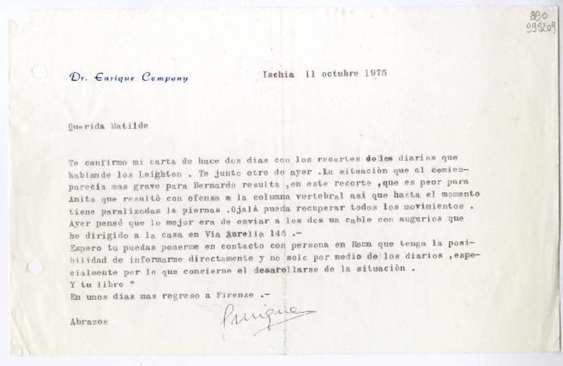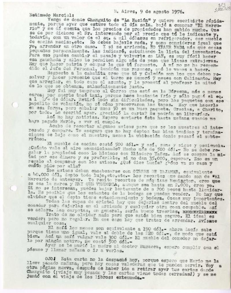 [Carta] 1953 agosto 5, Buenos Aires [a] Querida Matilde [manuscrito].