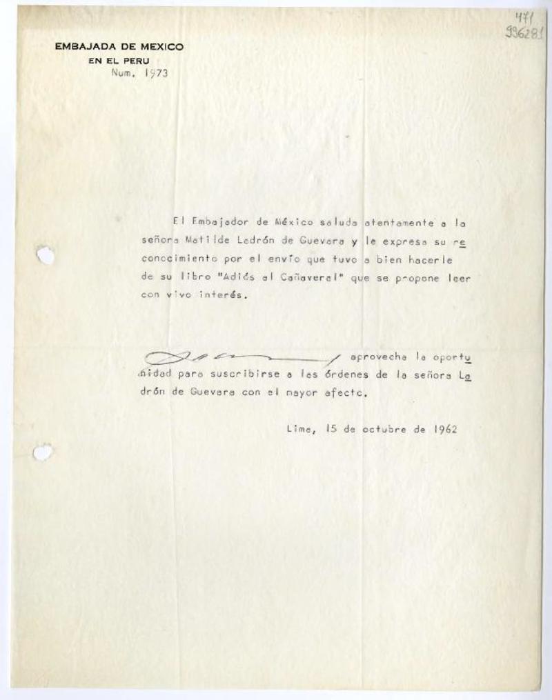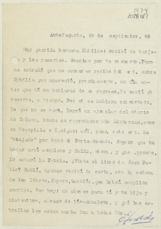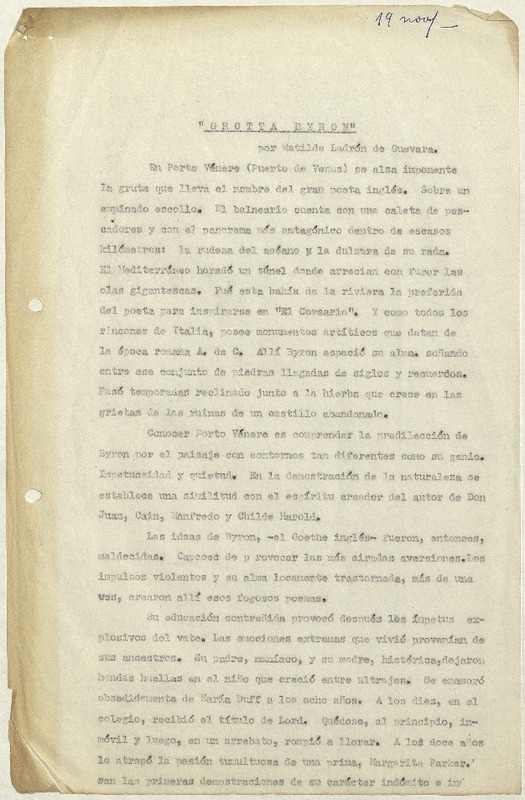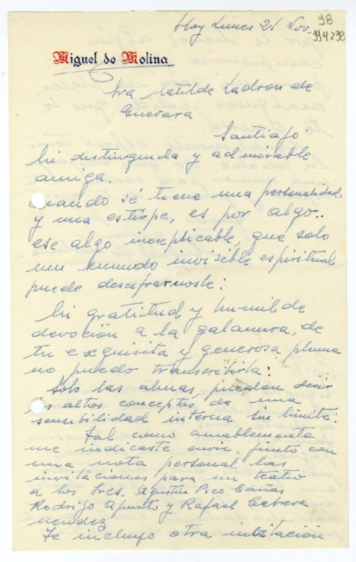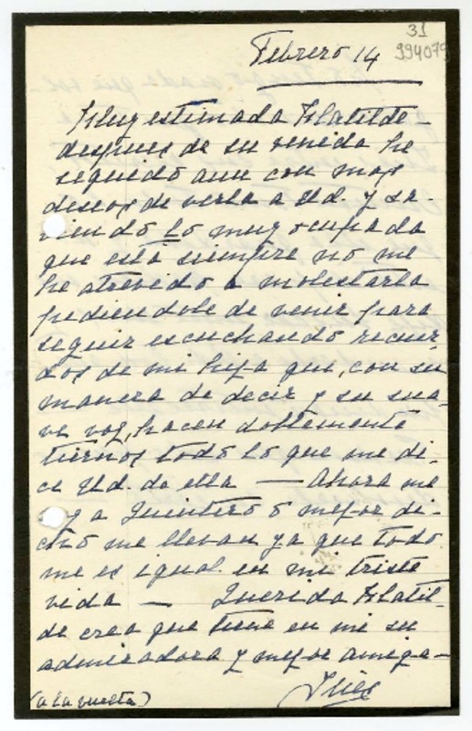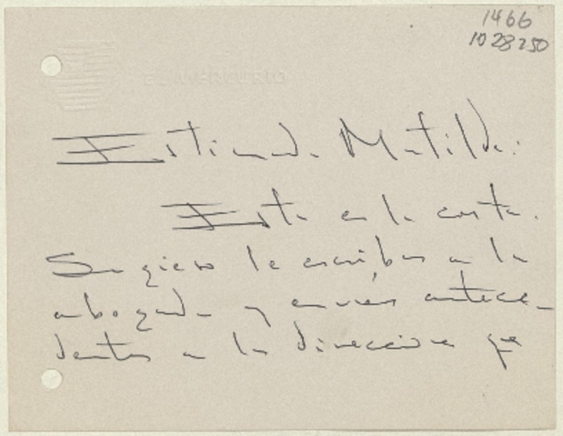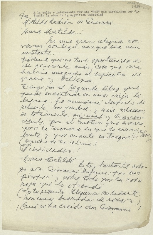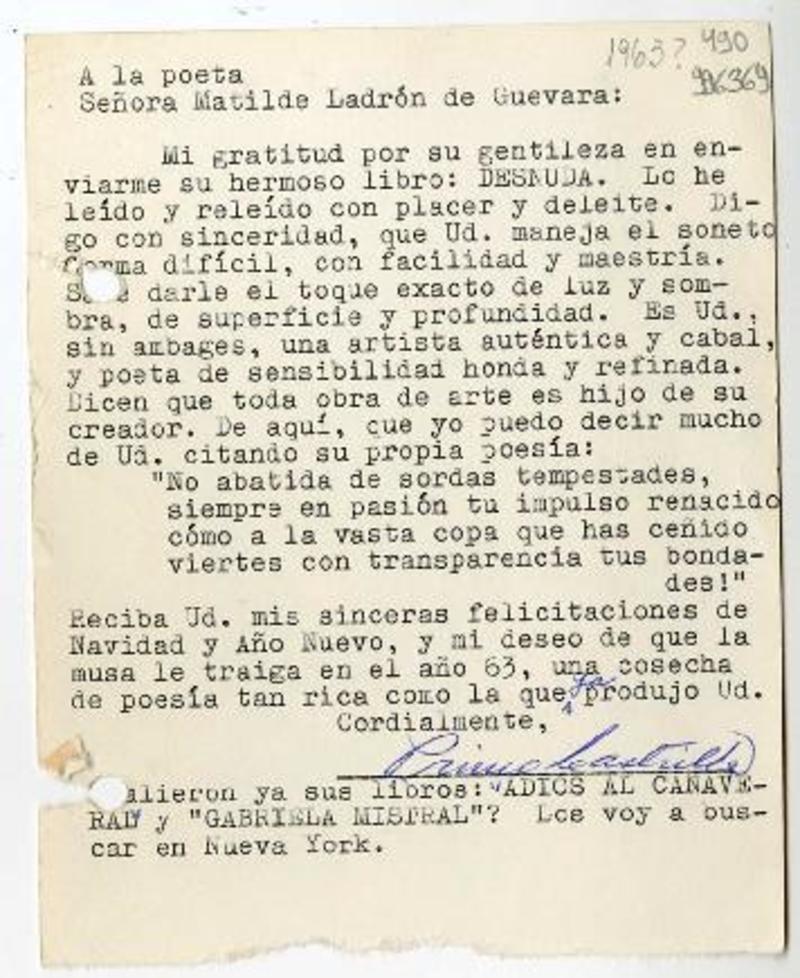 Una [manuscrito] Matilde Ladrón de Guevara.