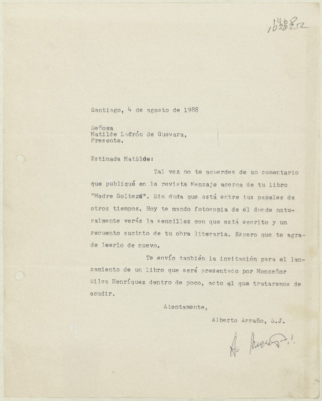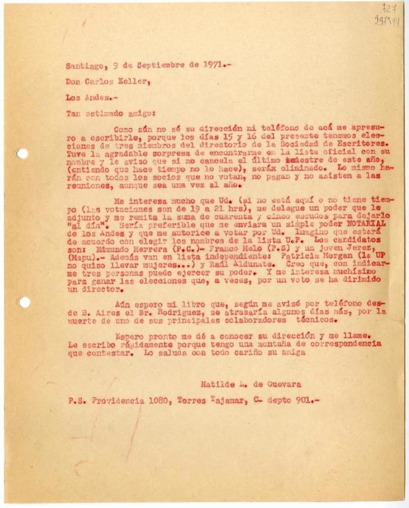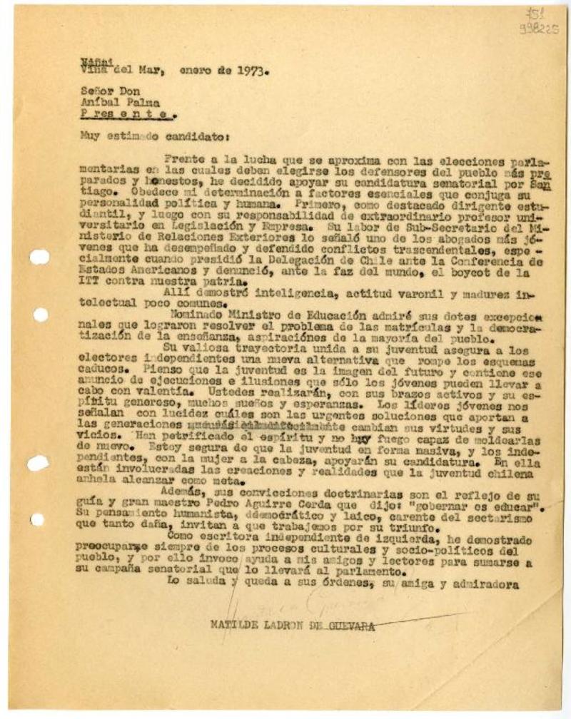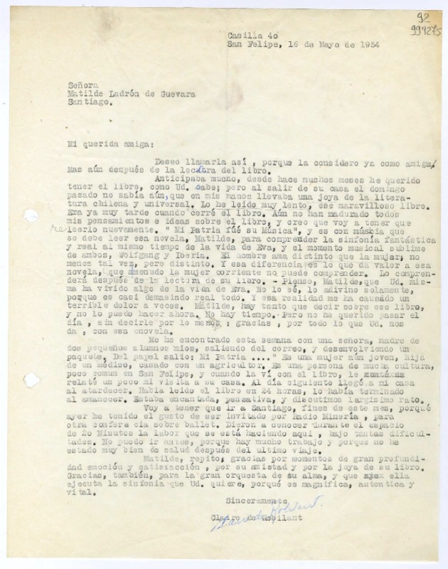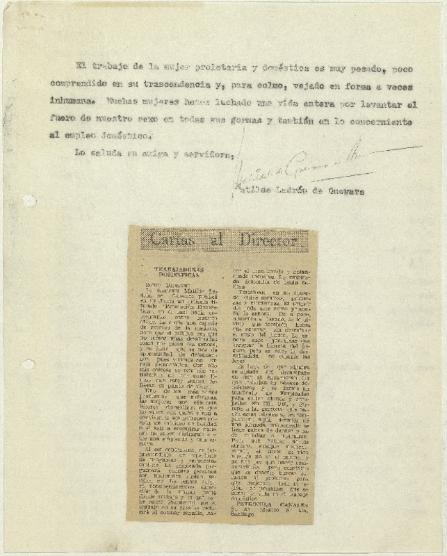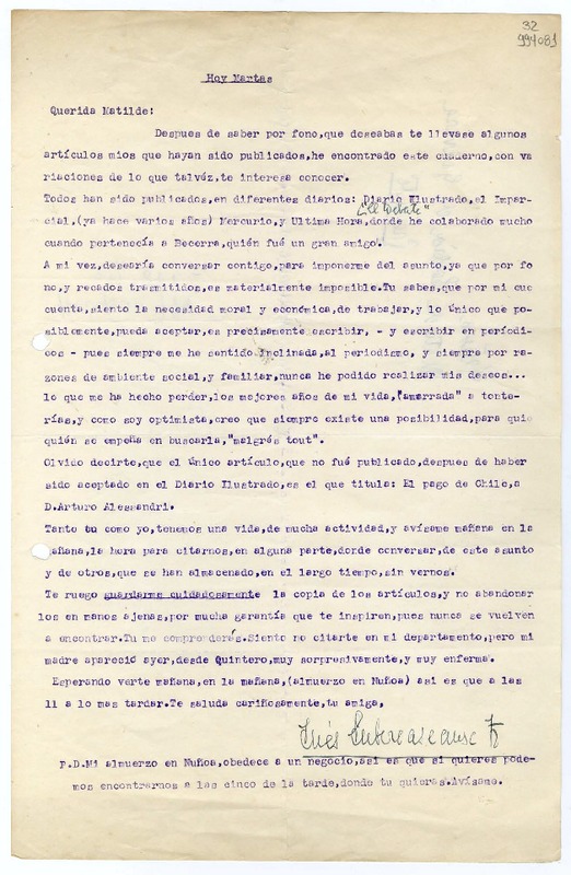 Aldunate Phillips, Raúl - Correspondencia - Manuscritos chilenos - Ladrón de Guevara, Matilde