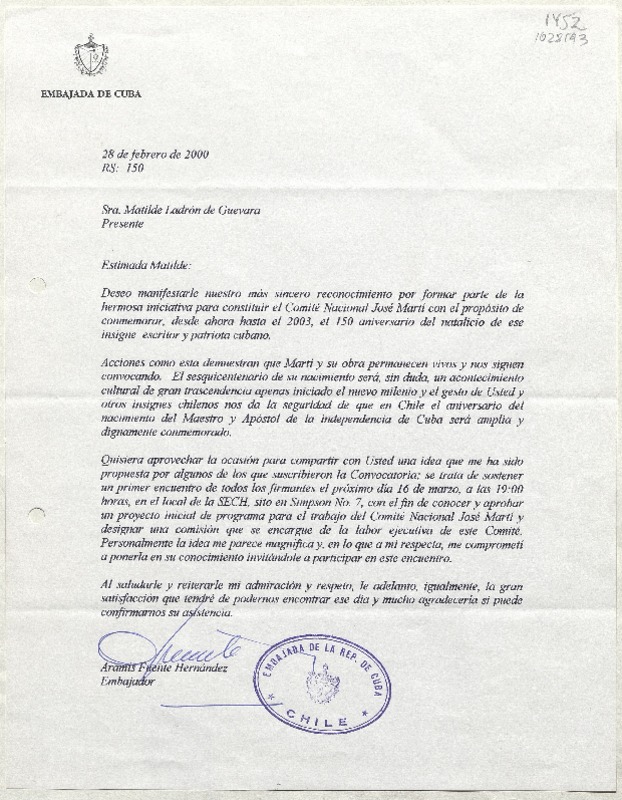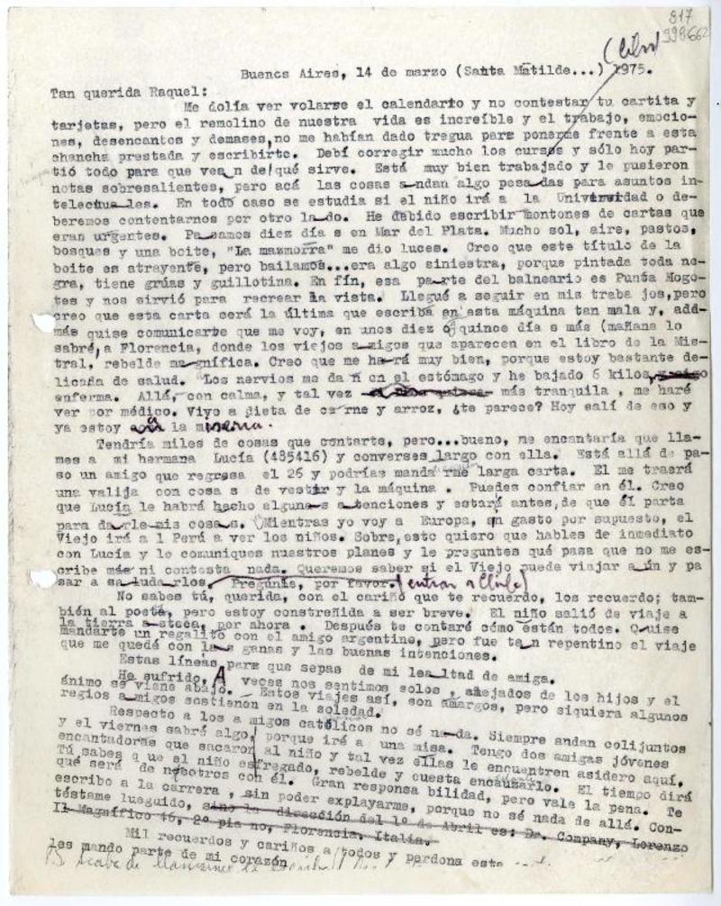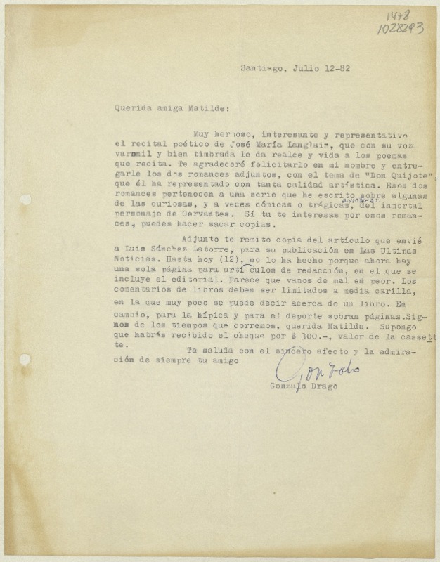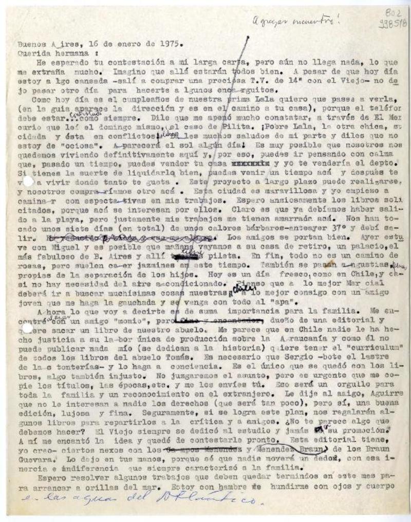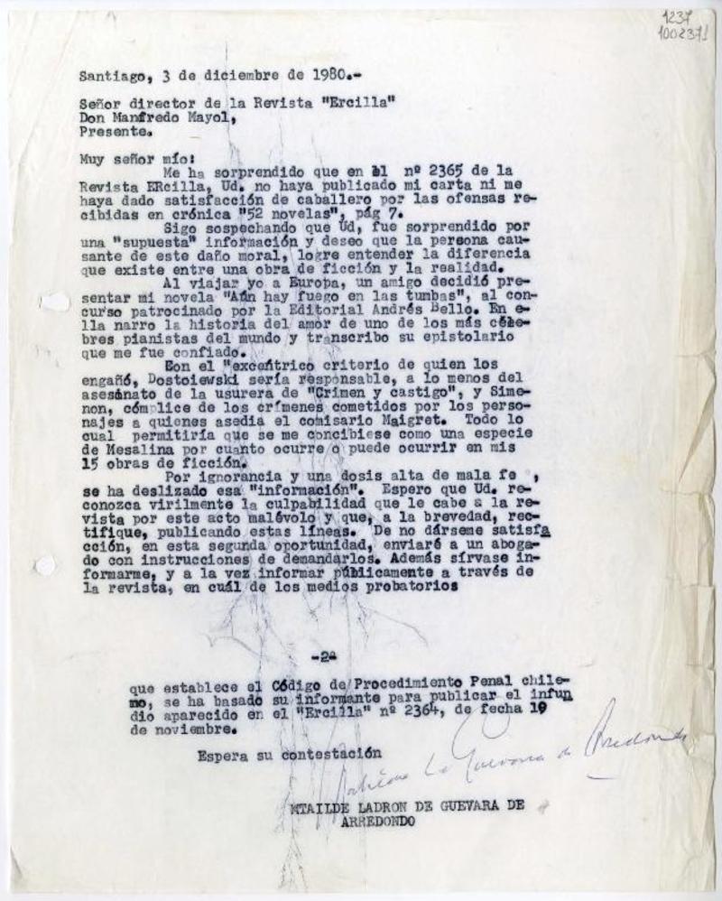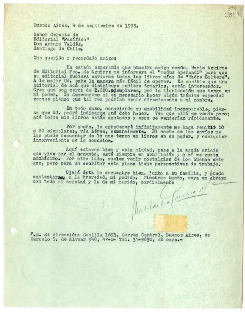 Aldunate Phillips, Raúl - Correspondencia - Manuscritos chilenos - Ladrón de Guevara, Matilde