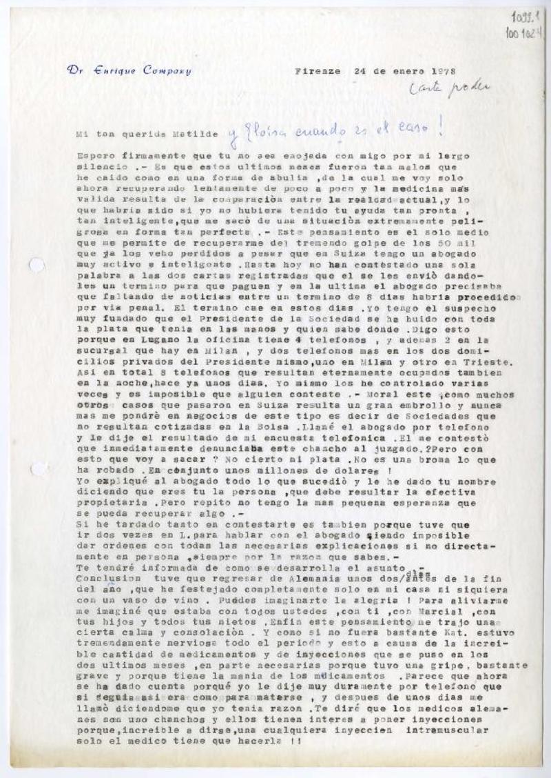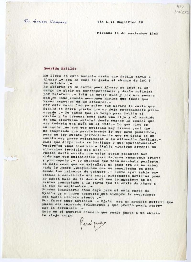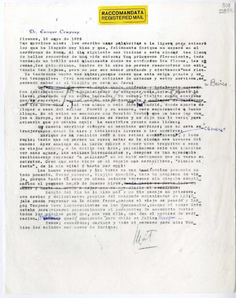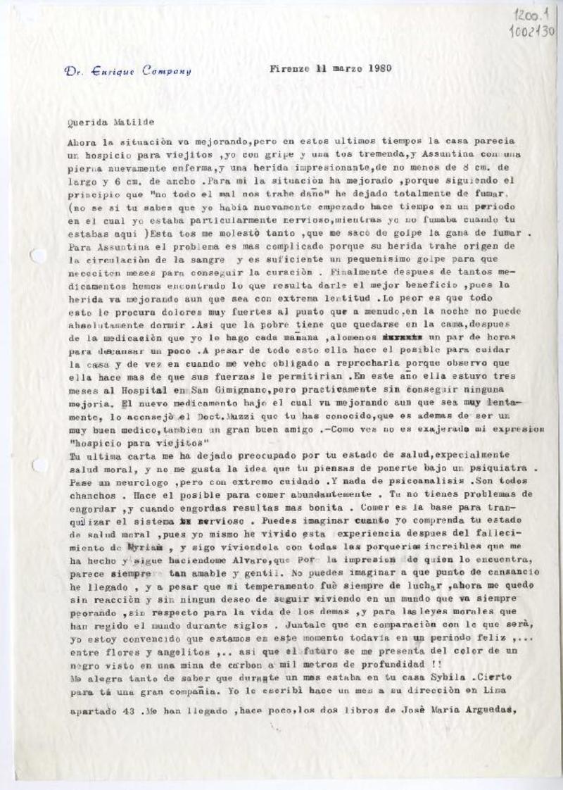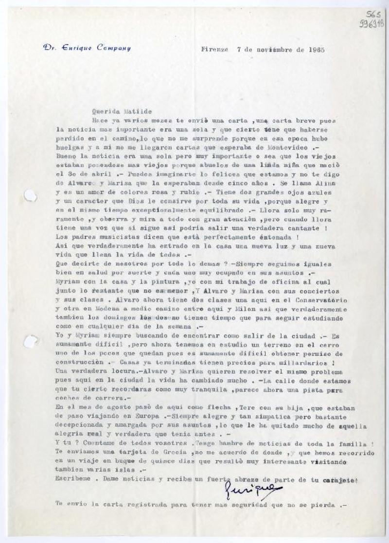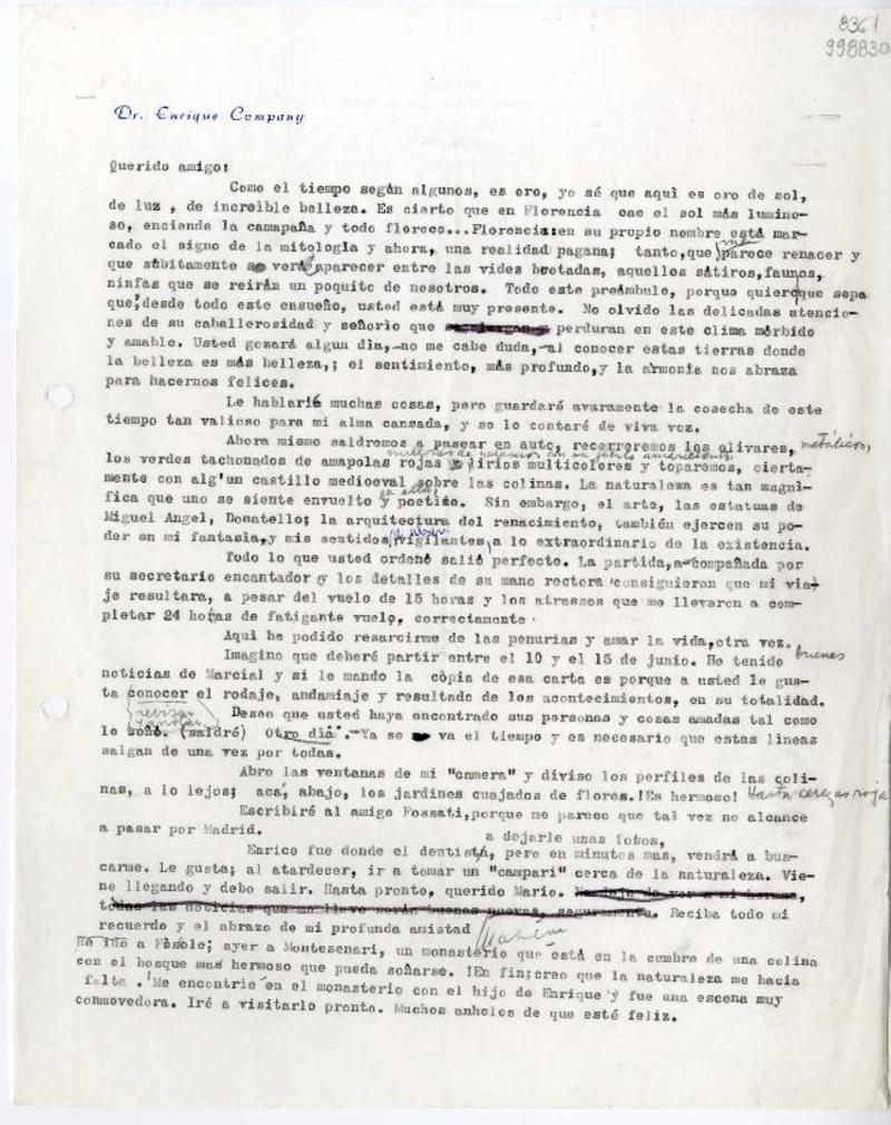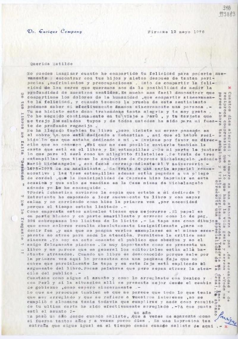 [Carta] 1951 abril 27, Firenze, [Italia] [a] Querida comadre [María de la Cruz] [manuscrito] Matilde Ladrón de Guevara.