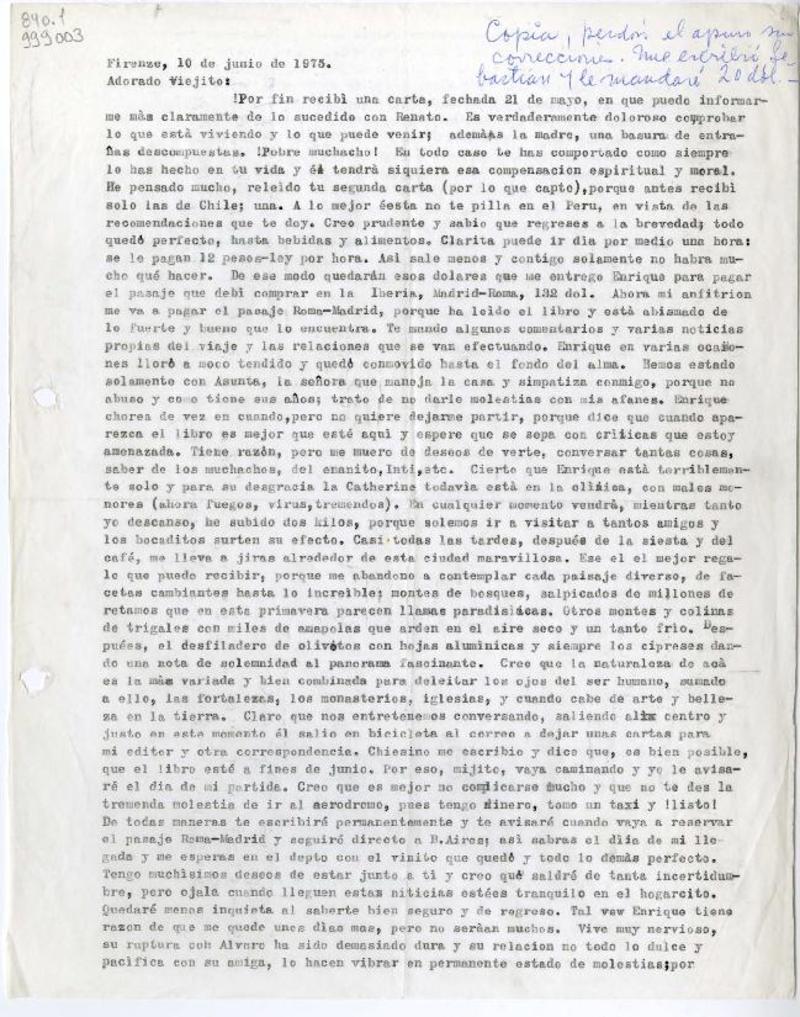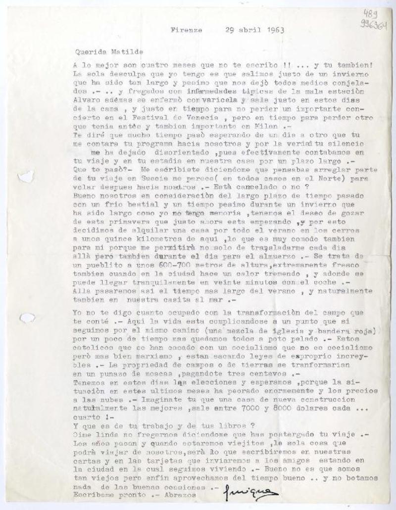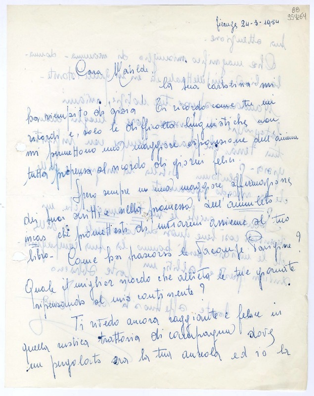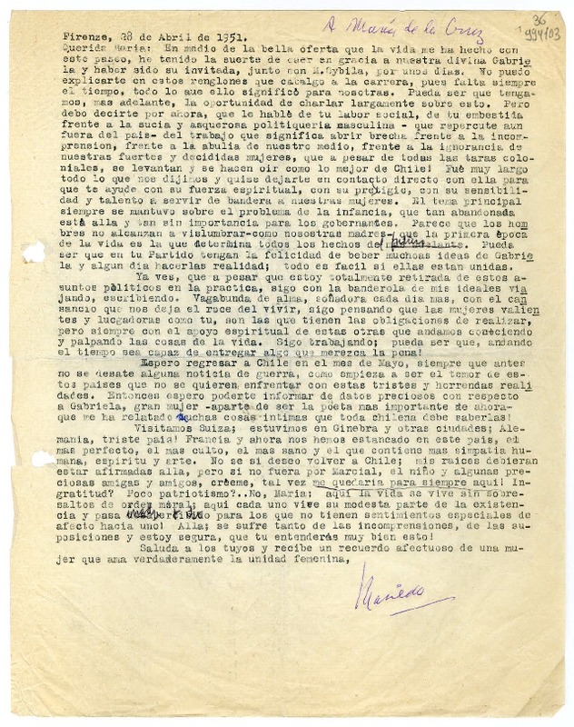 [Carta] 1951 abril 28, Firenze, [Italia] [a] María de la Cruz [manuscrito] Matilde Ladrón de Guevara.