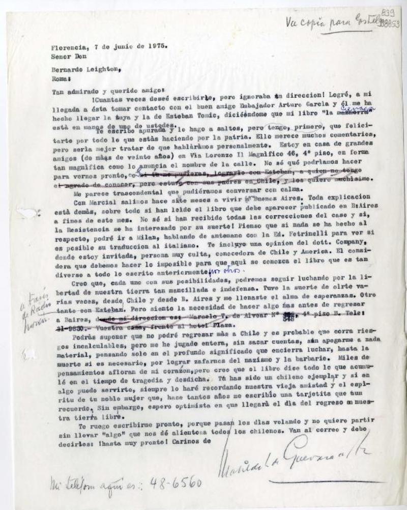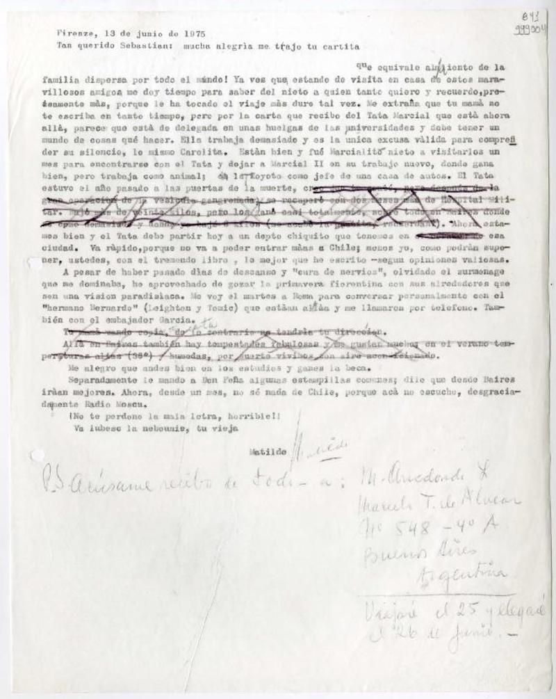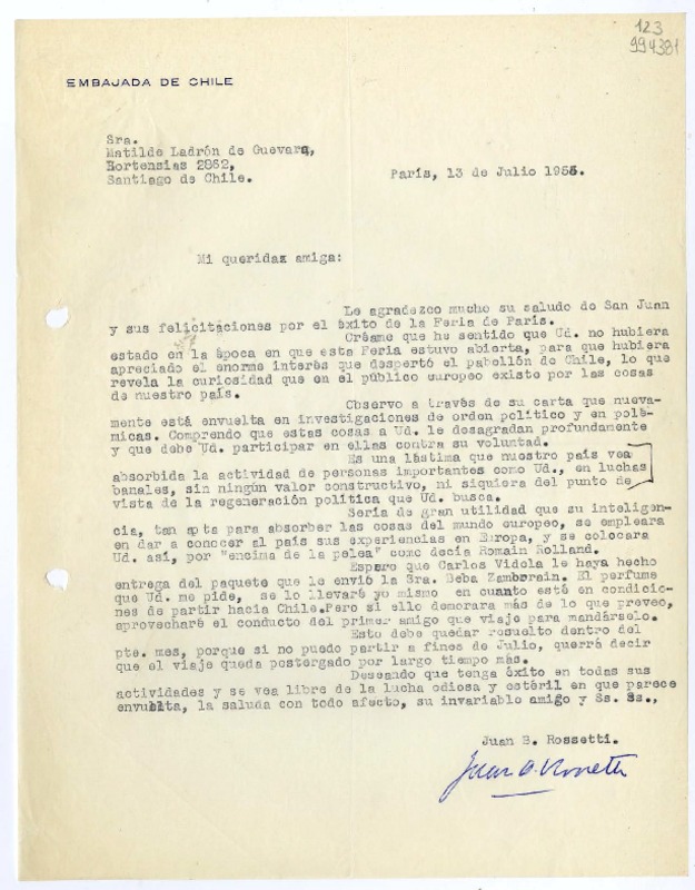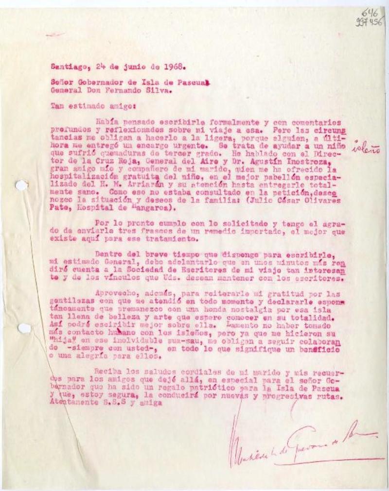 [Carta] 1951 julio 17, Génova, [Italia] [a] Matilde L. de Guevara de Arredondo, Santiago [manuscrito] Marcelo Silva Temme.