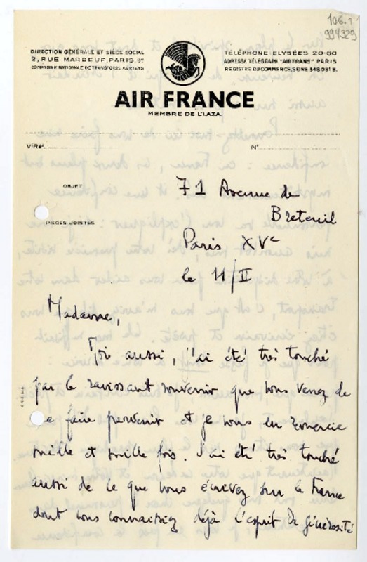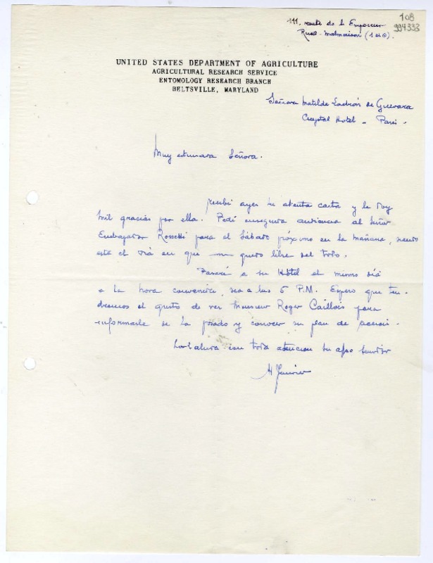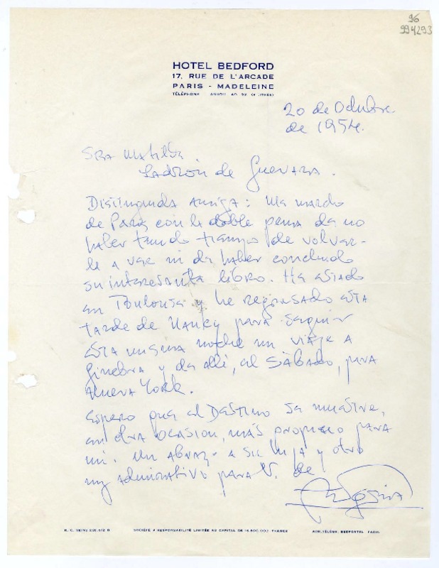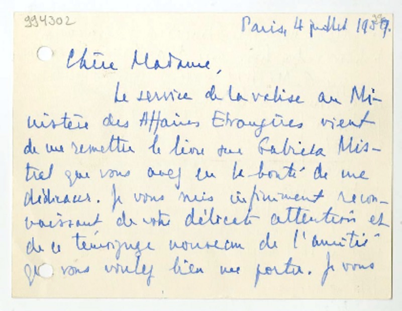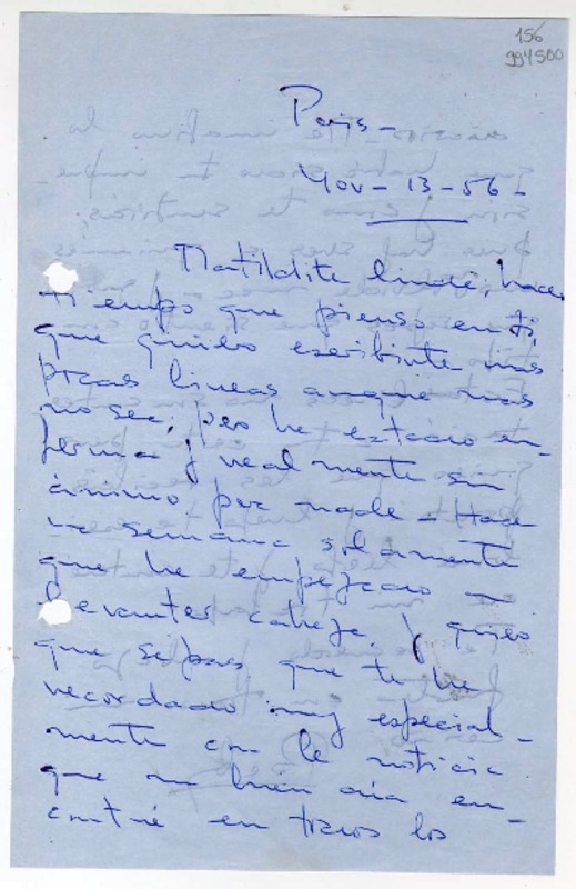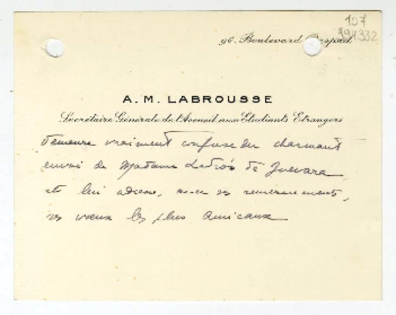 [Tarjeta] [1955] Paris [a] Matilde Ladrón de Guevara [manuscrito] A. M. Labrousse.