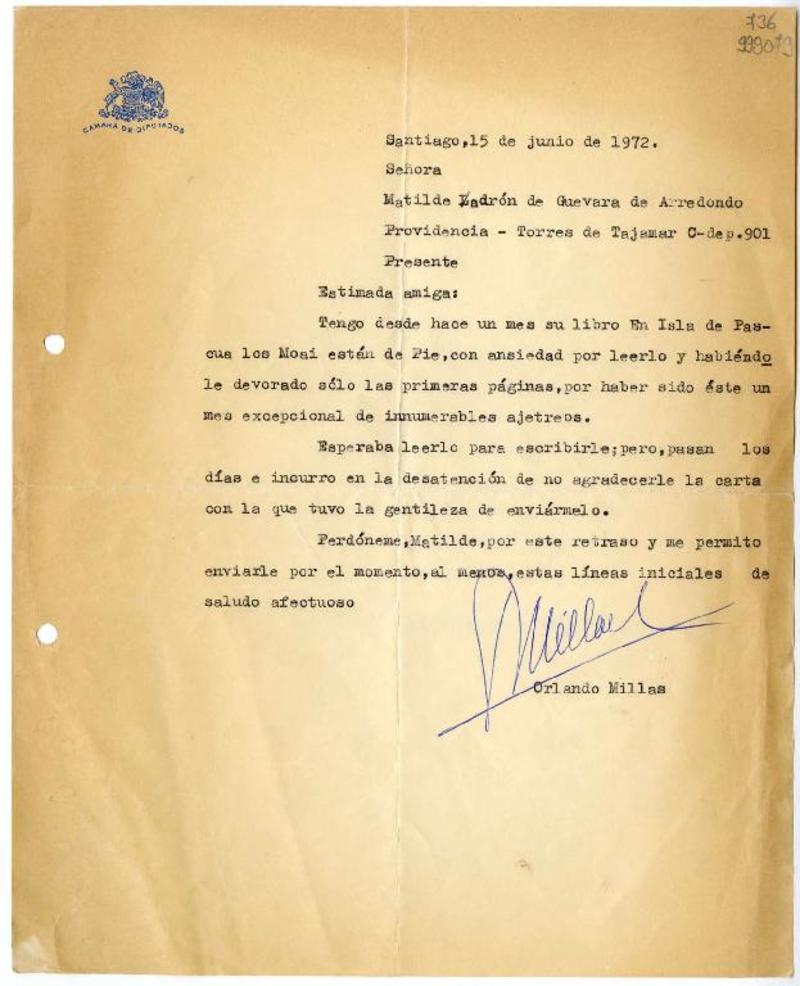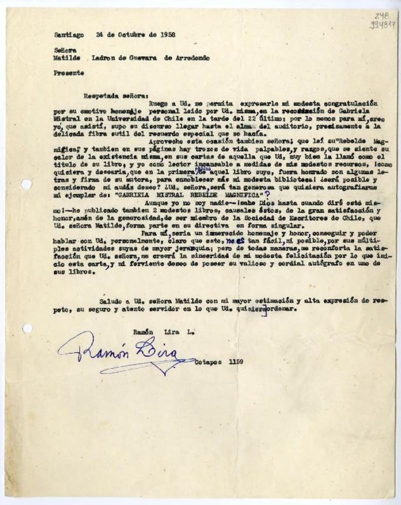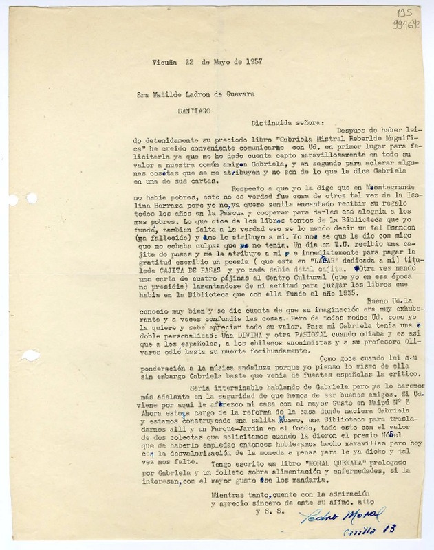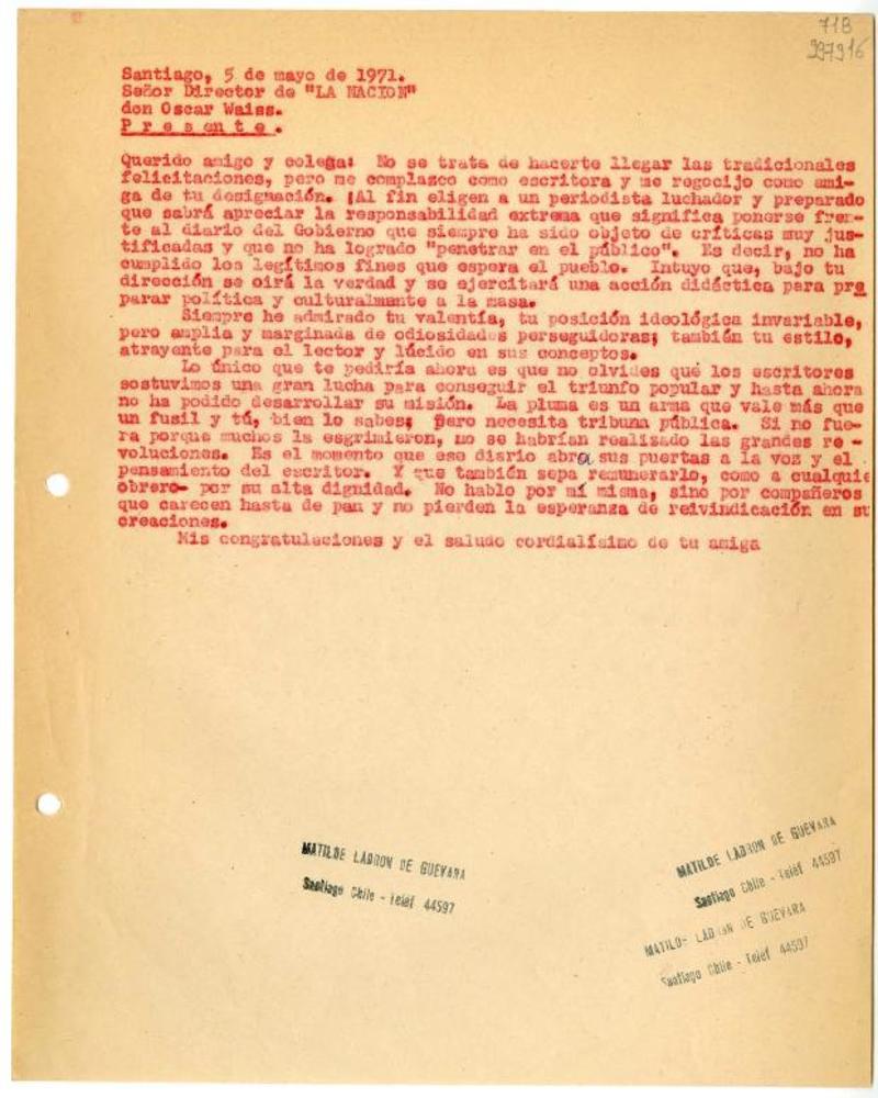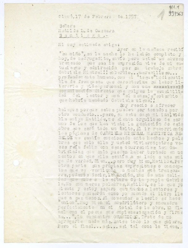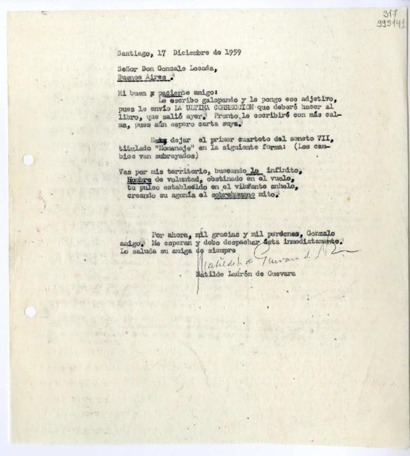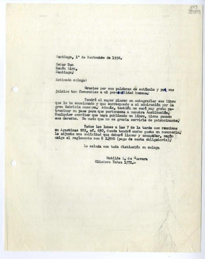 Valderrama O., Lorenzo - Correspondencia - Manuscritos chilenos - Ladrón de Guevara, Matilde