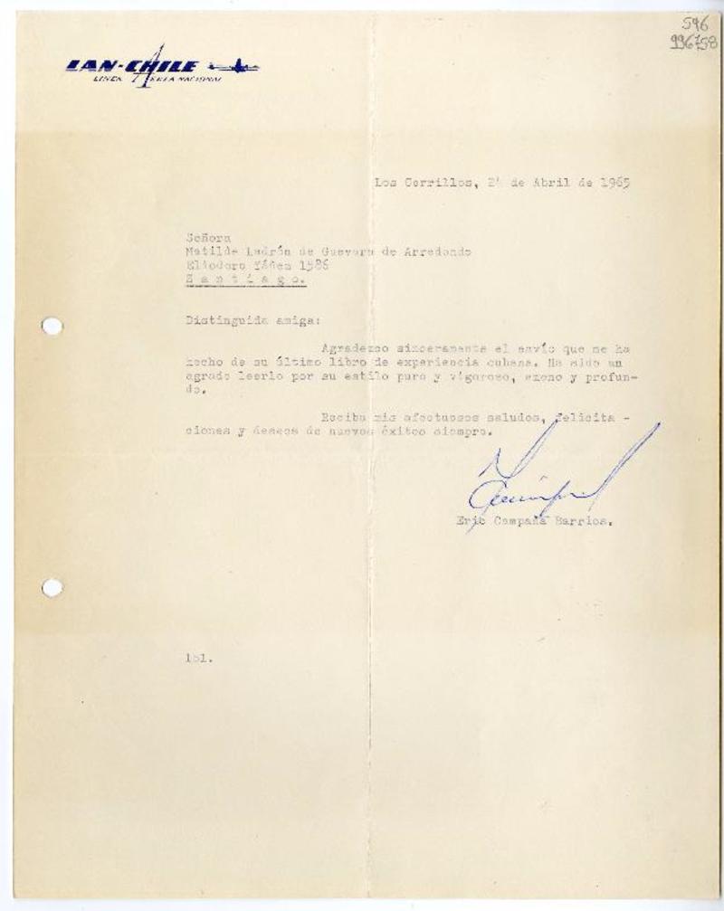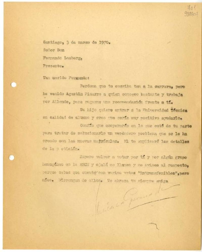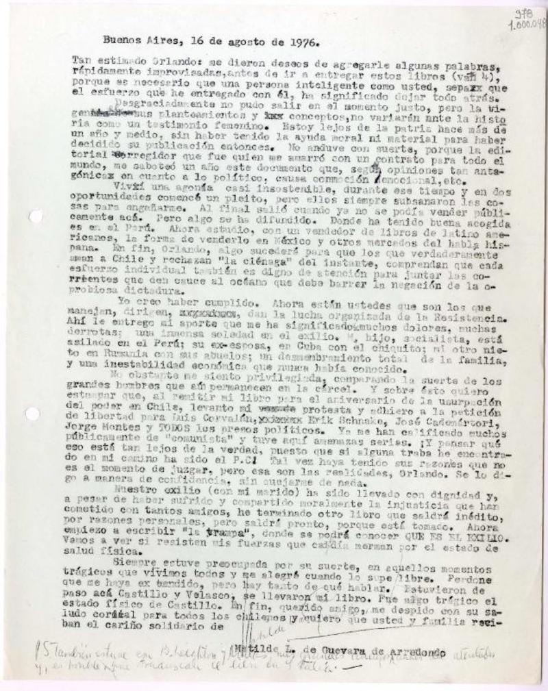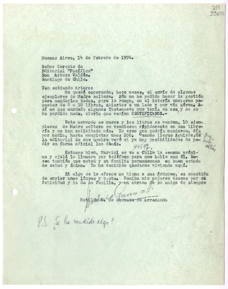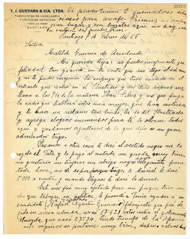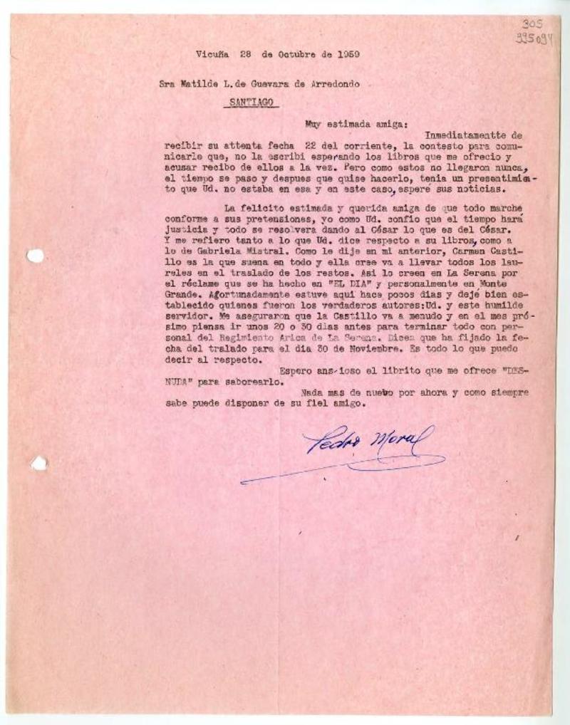Valderrama O., Lorenzo - Correspondencia - Manuscritos chilenos - Ladrón de Guevara, Matilde