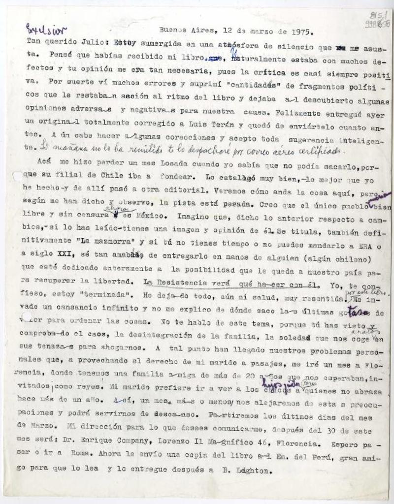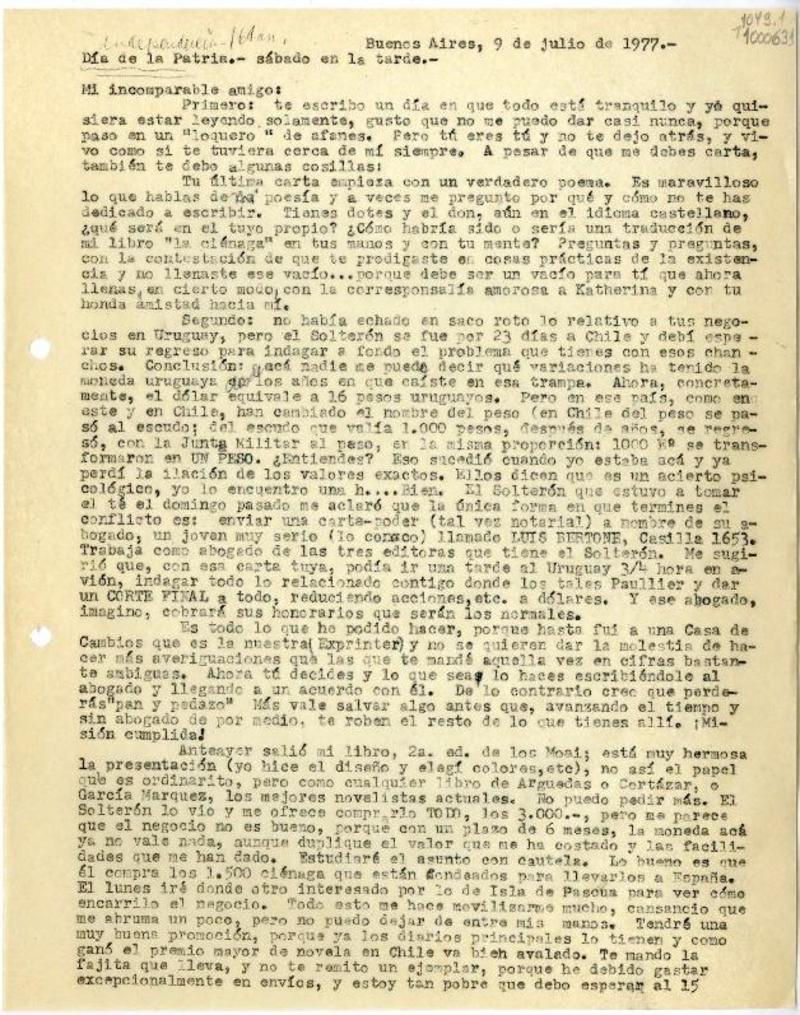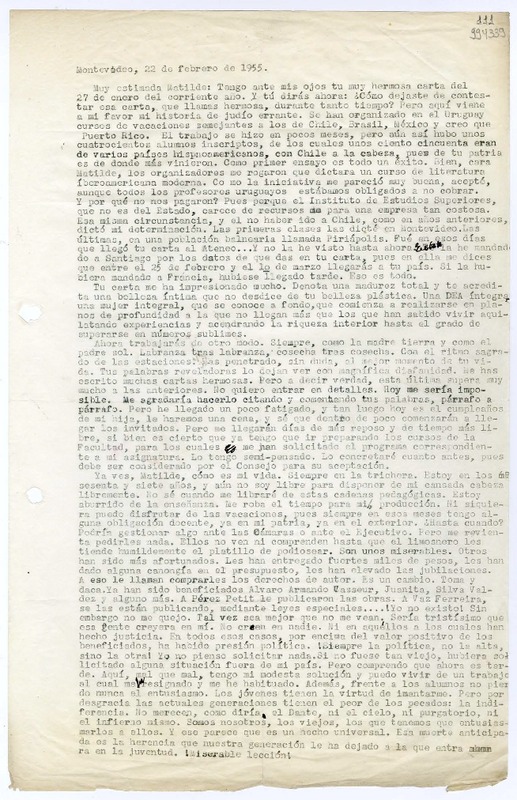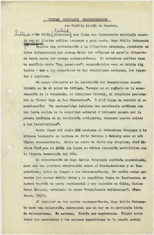 Manuscritos uruguayos - Ladrón de Guevara, Matilde - Autores uruguayos - Correspondencia - Pedemonte, Hugo Emilio