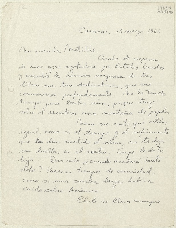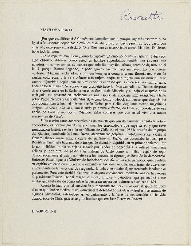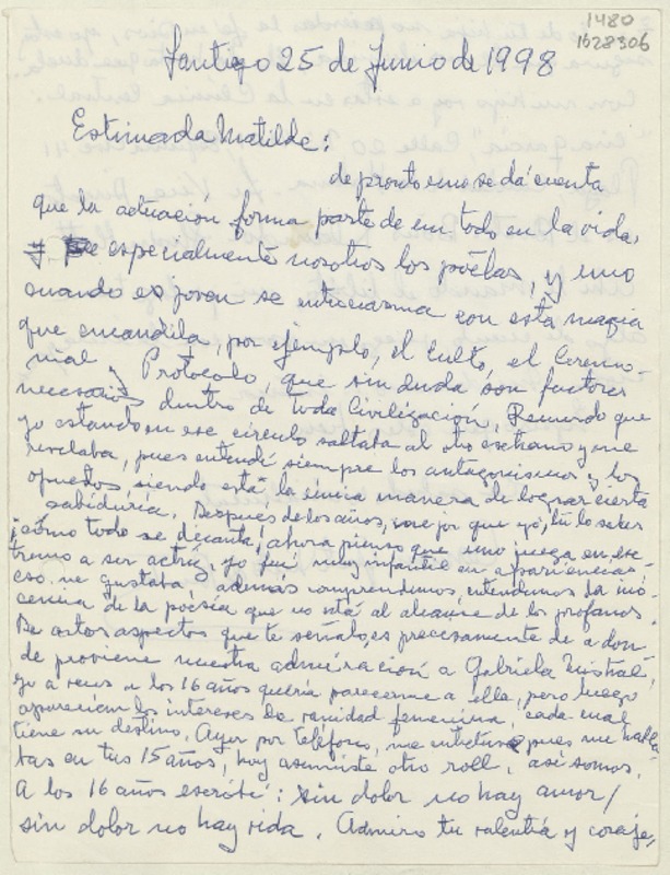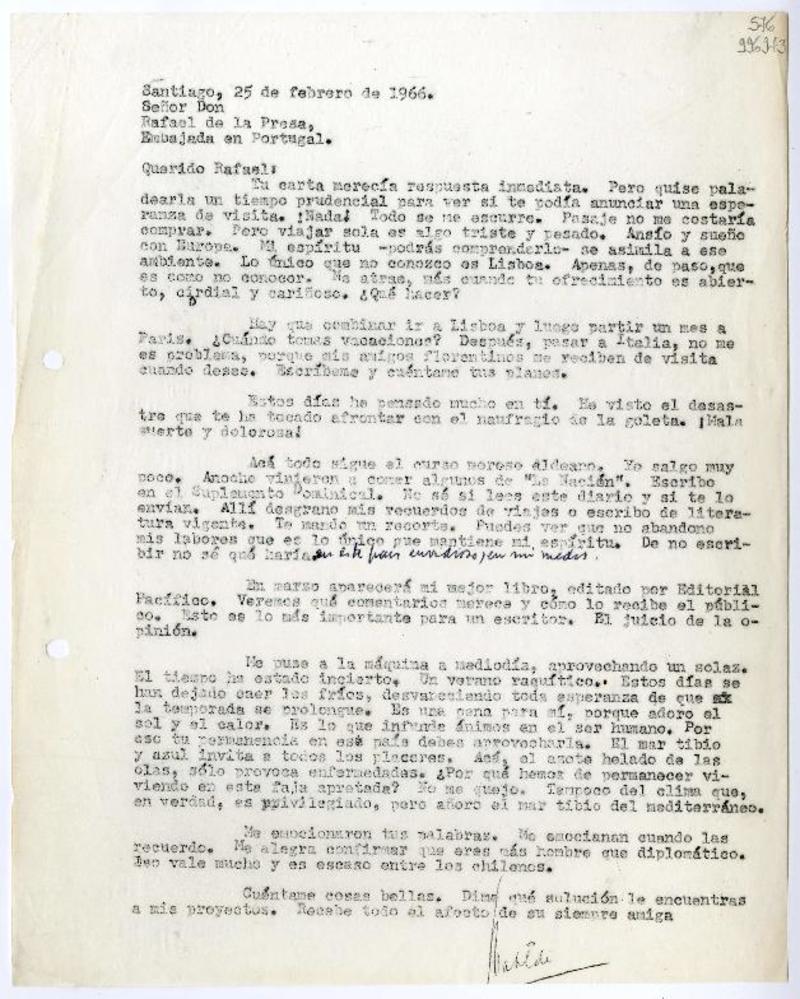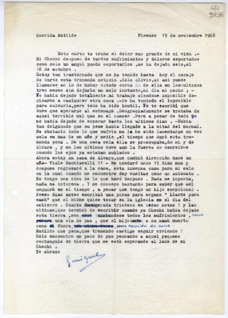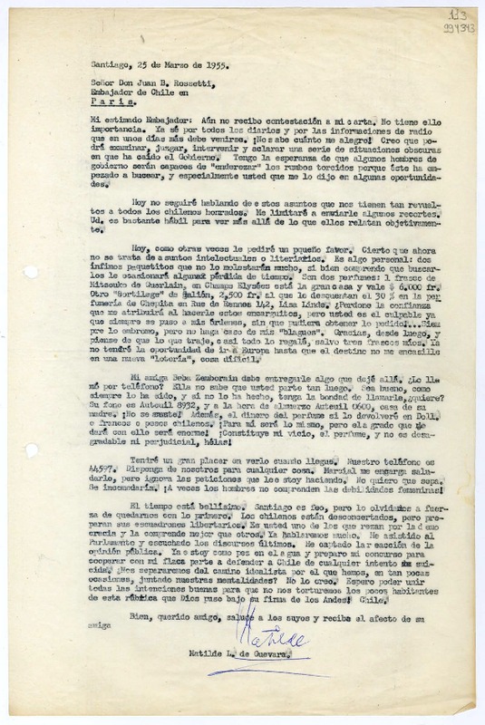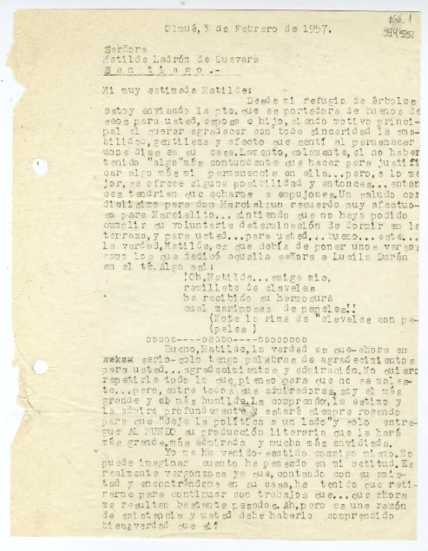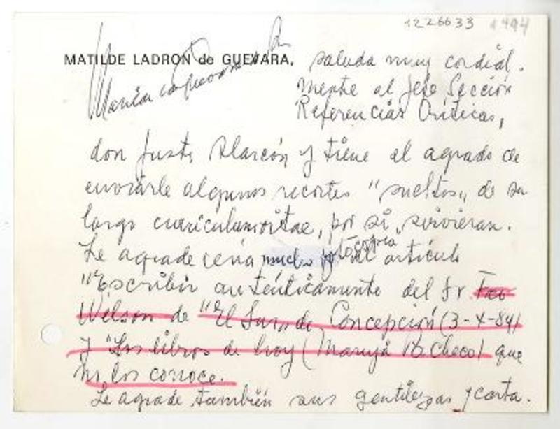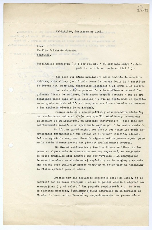 Rojas Saavedra, Patricio - Correspondencia - Manuscritos chilenos - Ladrón de Guevara, Matilde