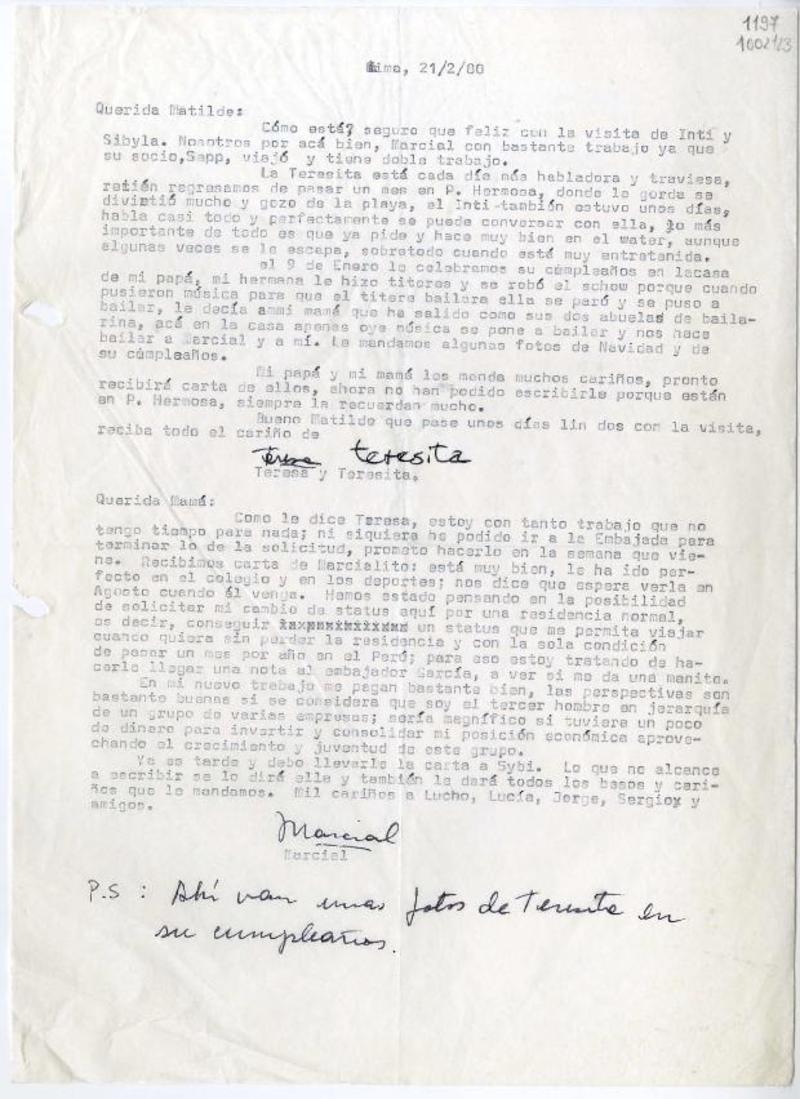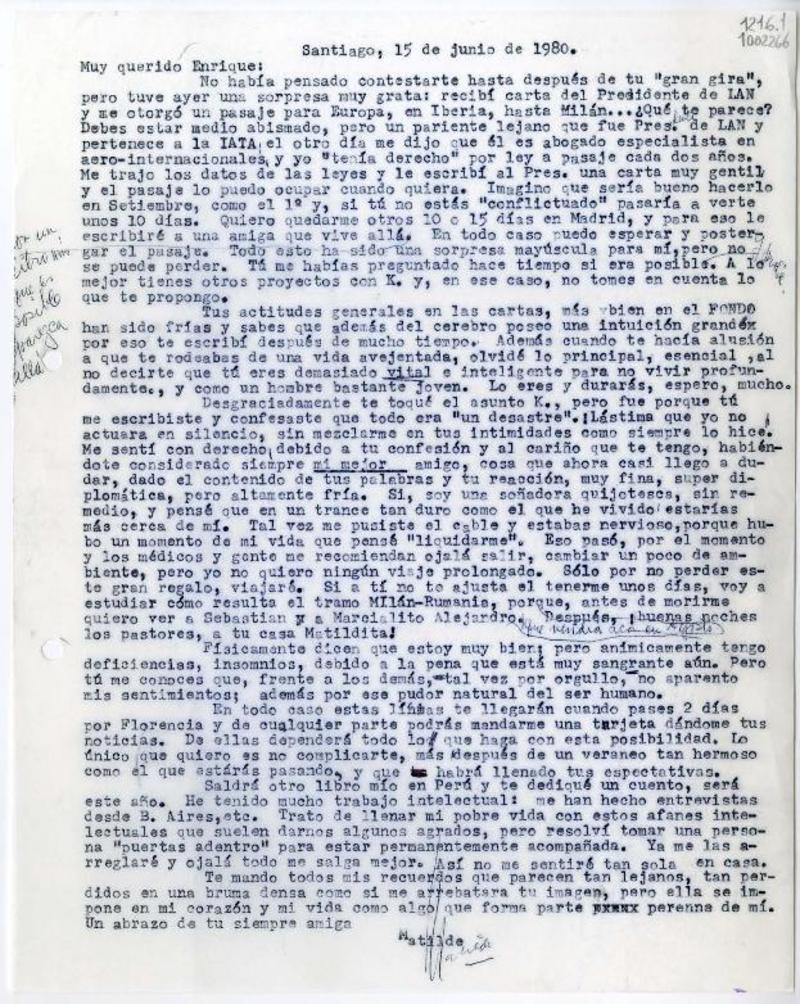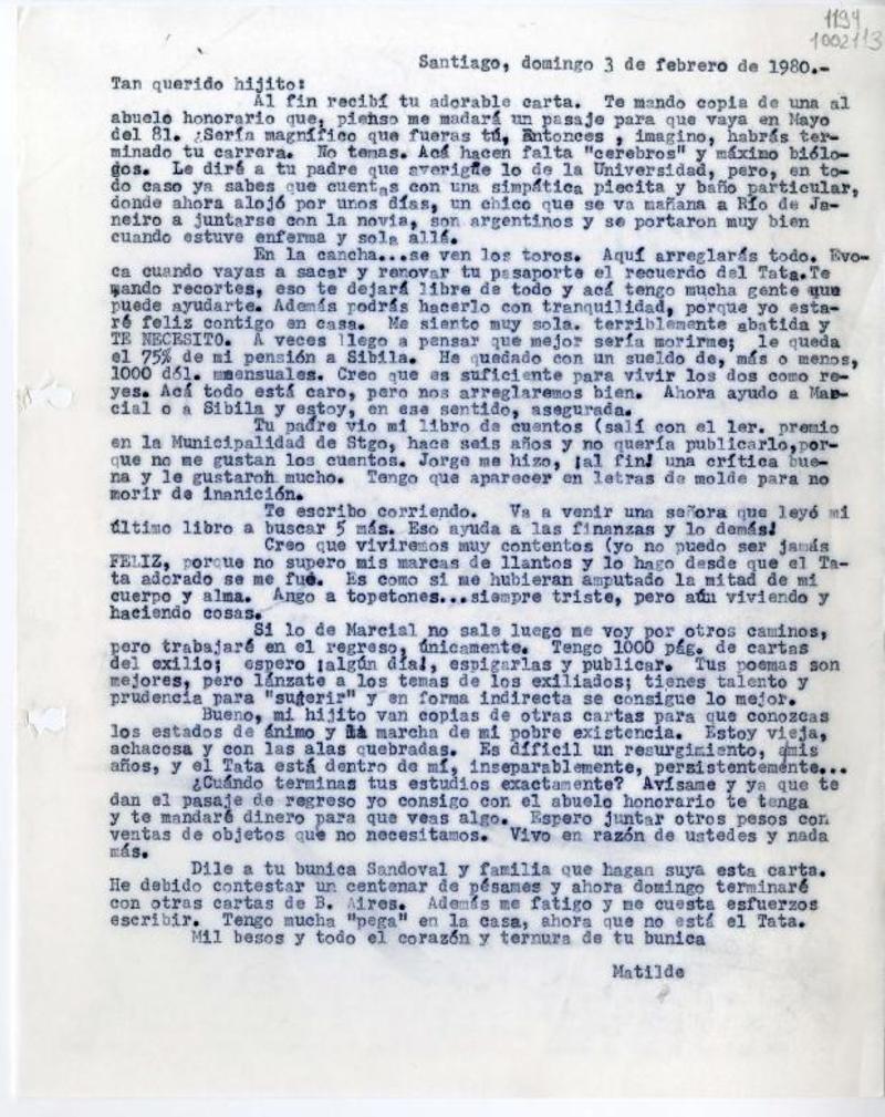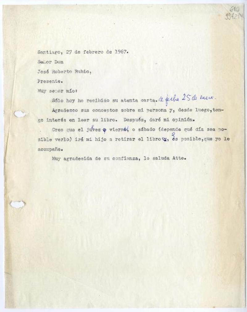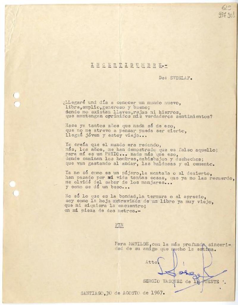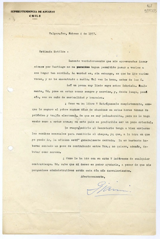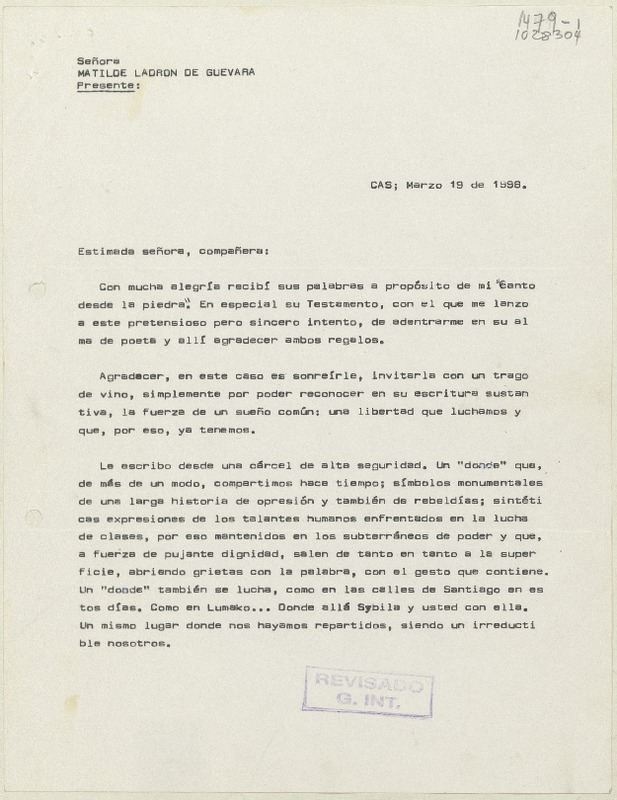 Rojas Saavedra, Patricio - Correspondencia - Manuscritos chilenos - Ladrón de Guevara, Matilde