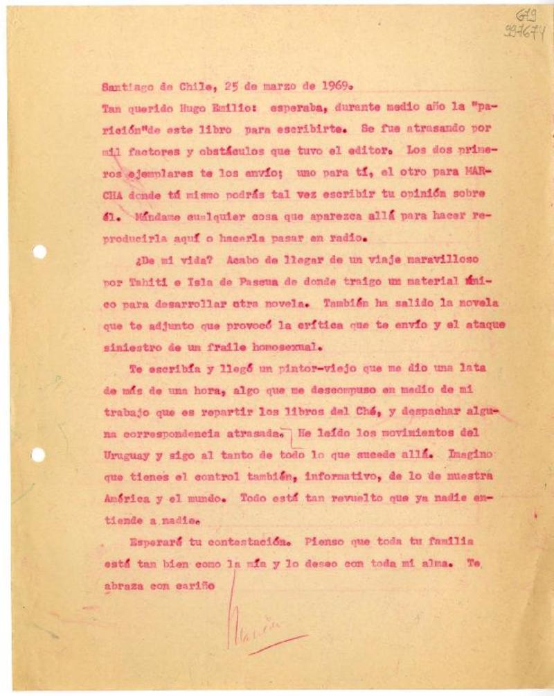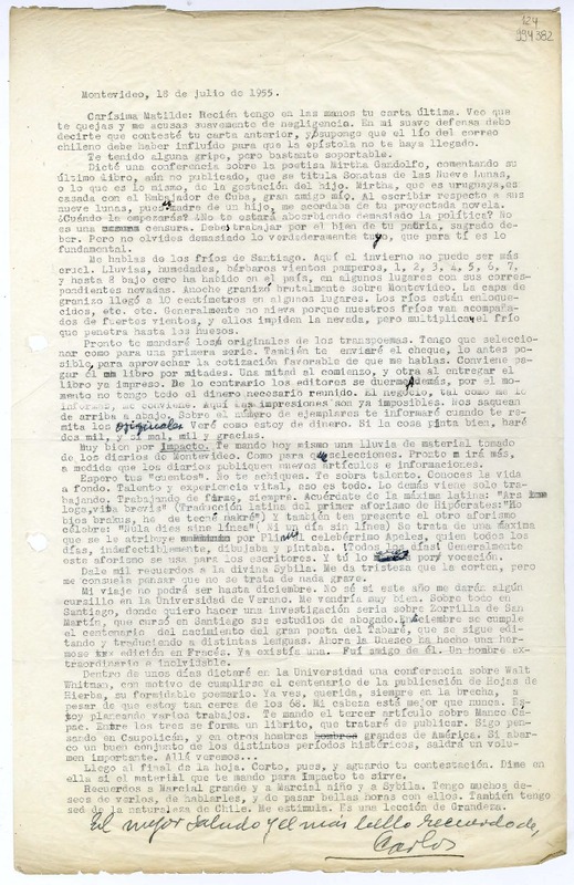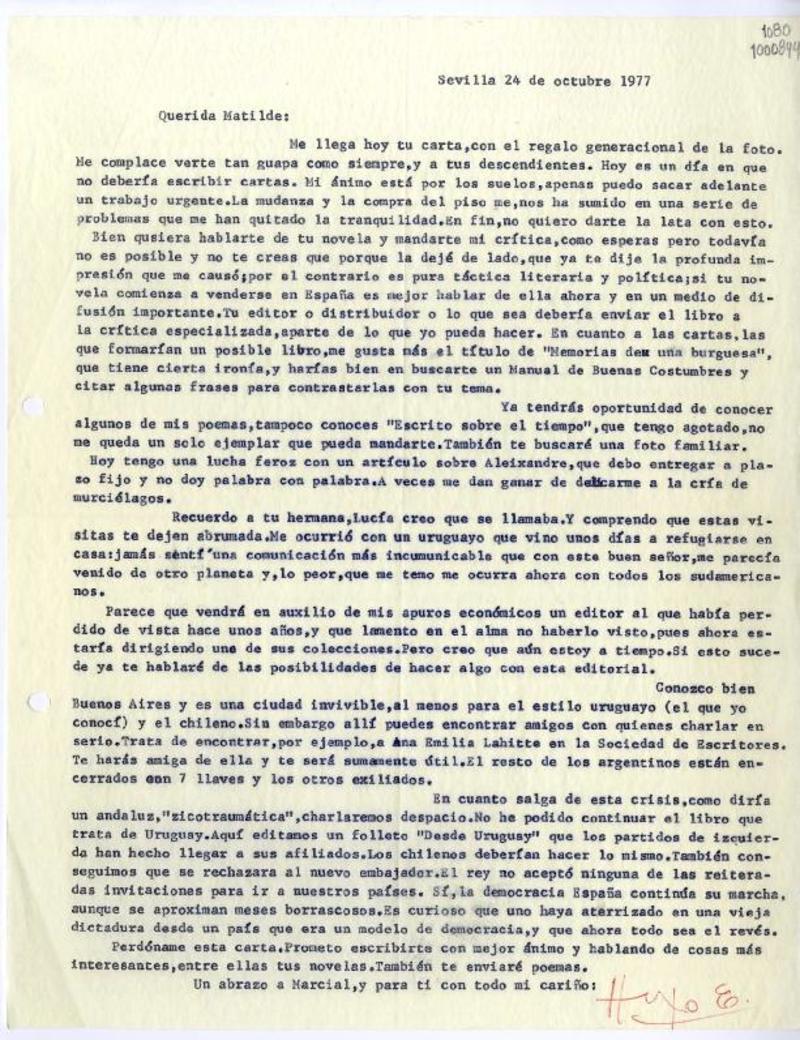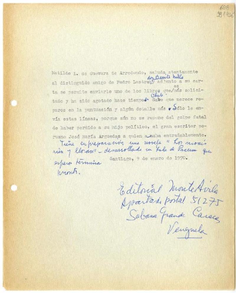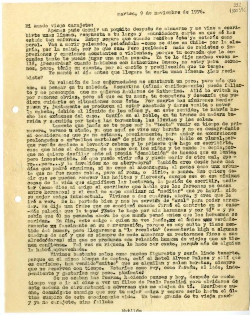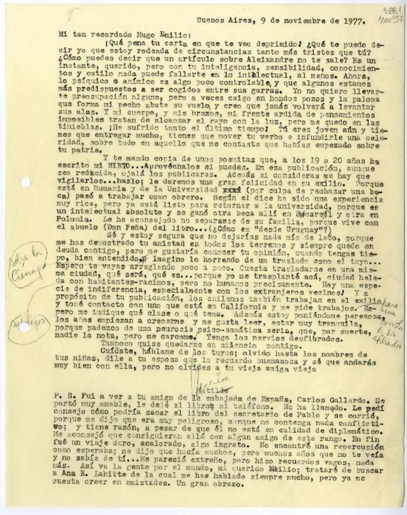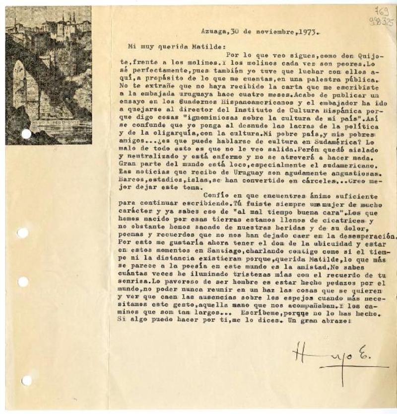 Pedemonte, Hugo Emilio - Correspondencia - Ladrón de Guevara, Matilde - Manuscritos uruguayos
