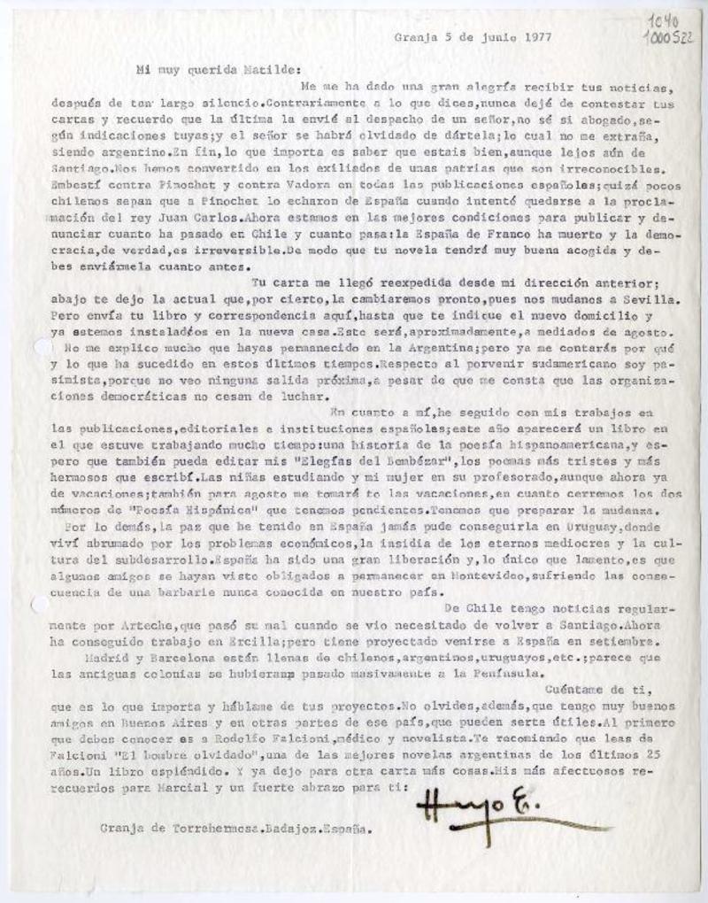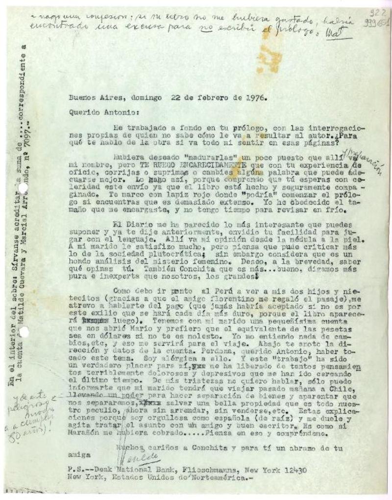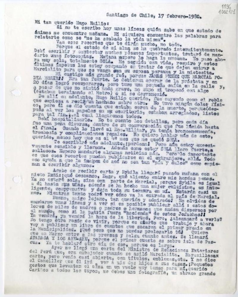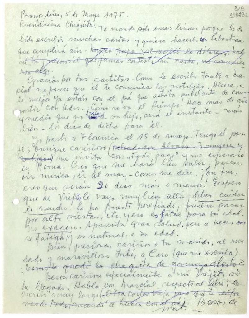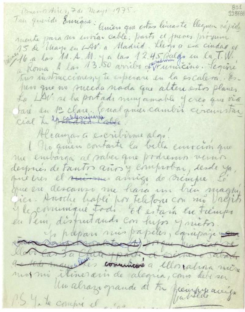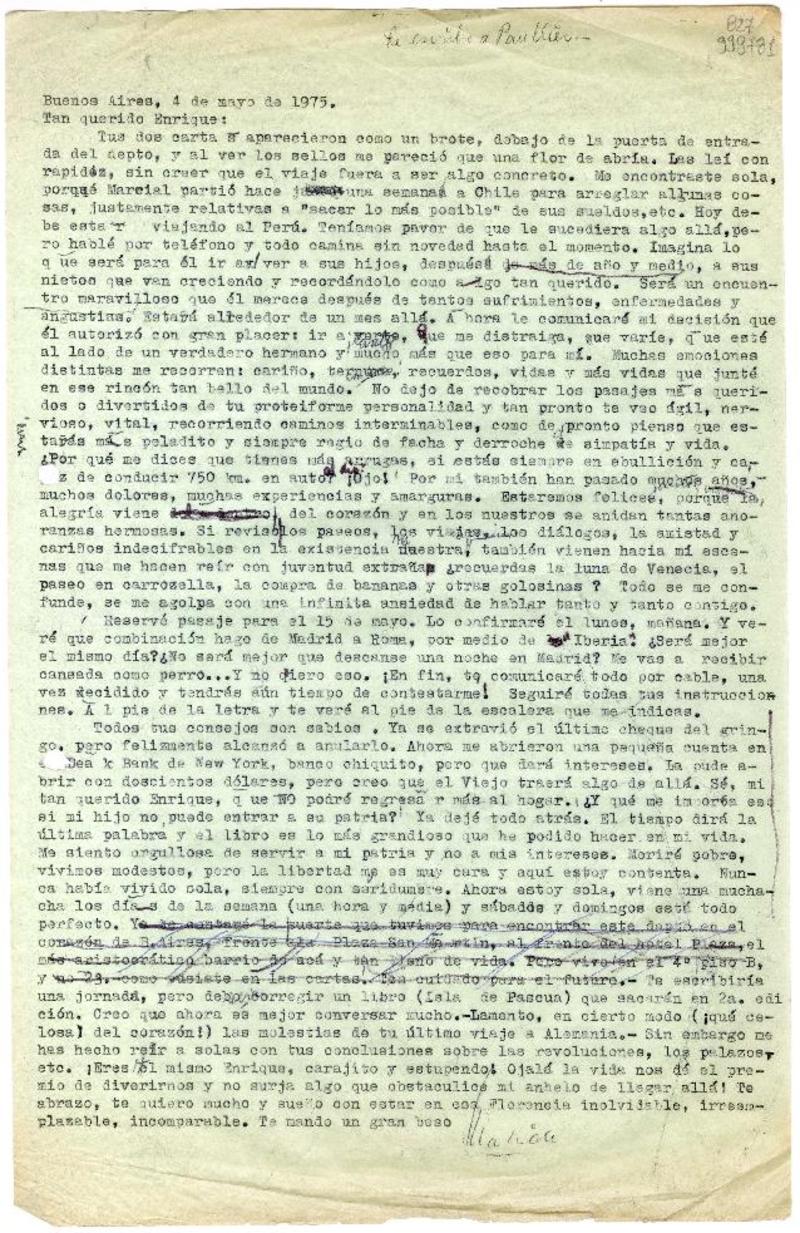 Pedemonte, Hugo Emilio - Correspondencia - Ladrón de Guevara, Matilde - Manuscritos uruguayos