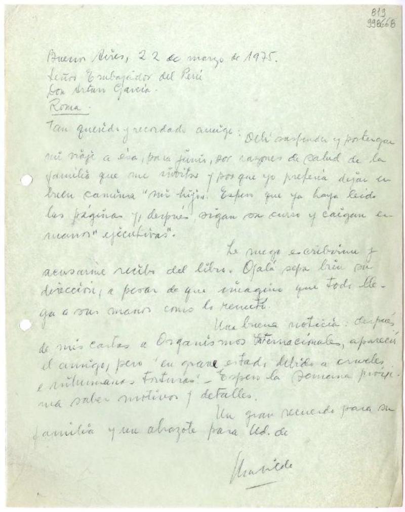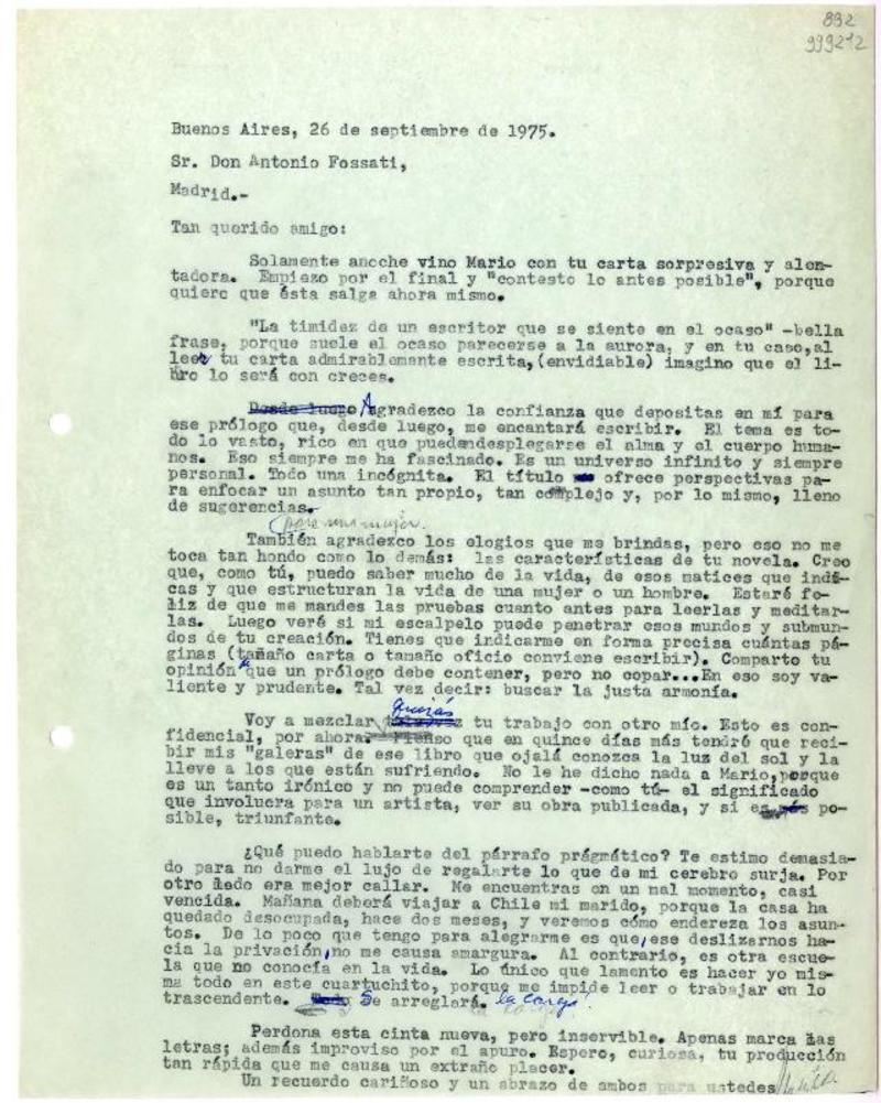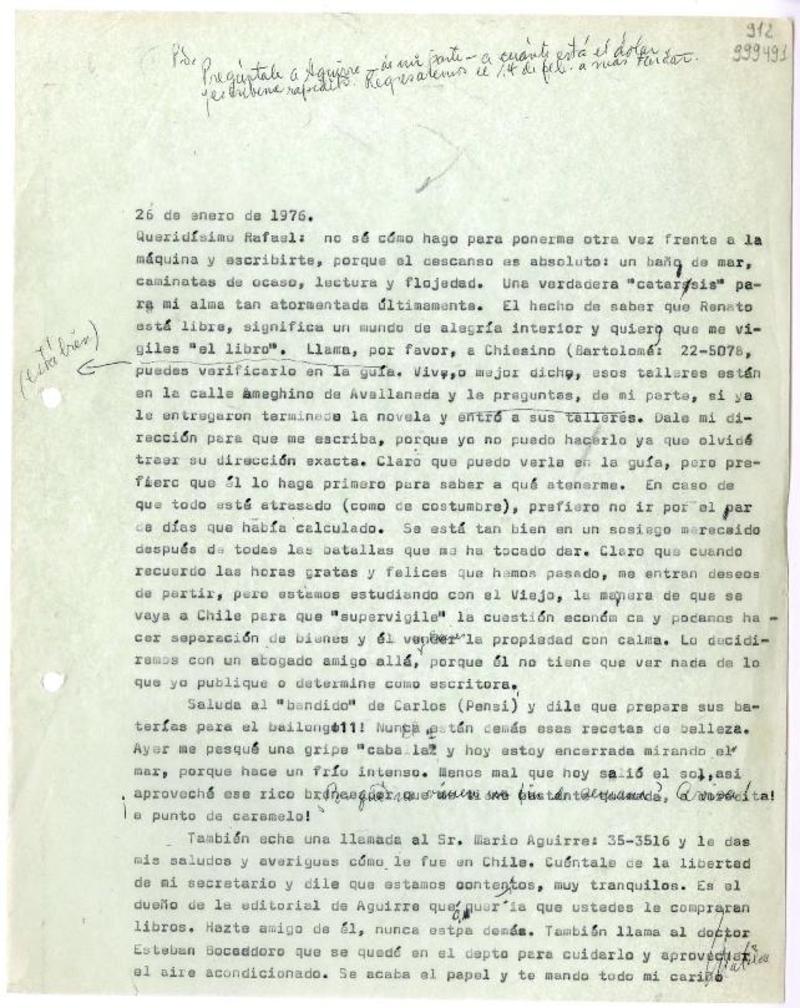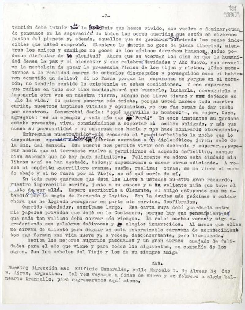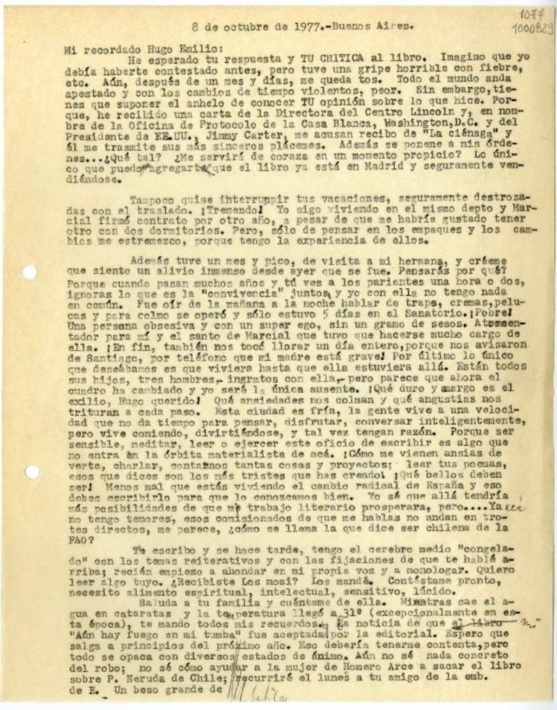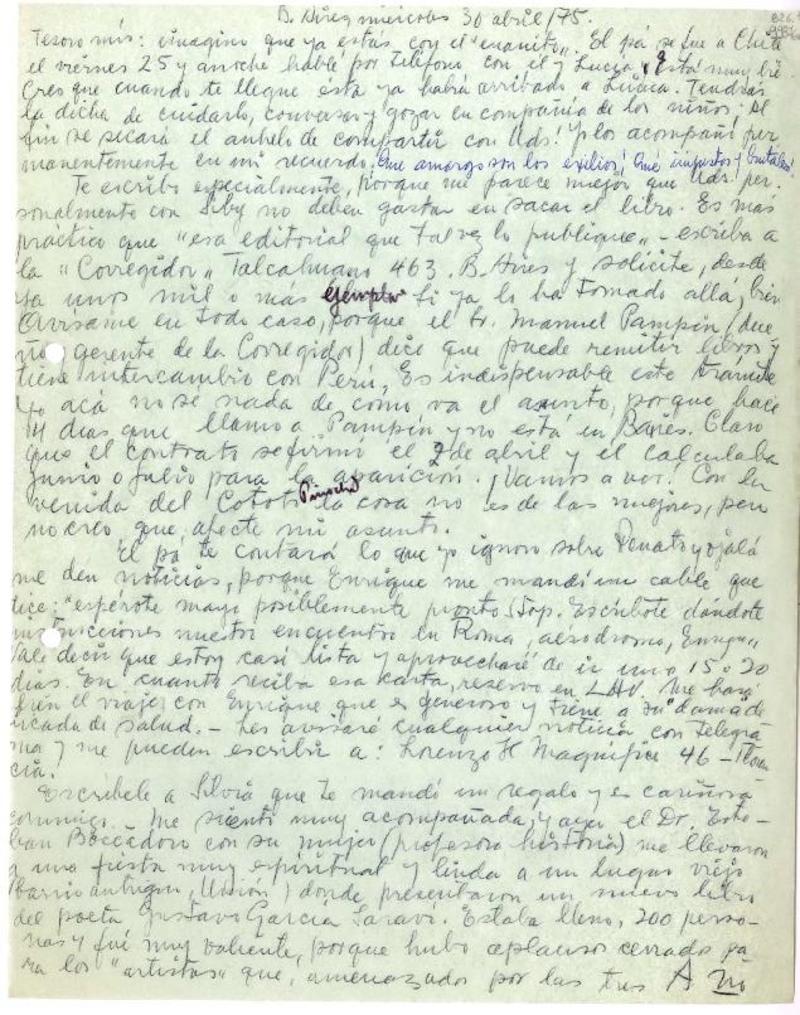 Pedemonte, Hugo Emilio - Correspondencia - Ladrón de Guevara, Matilde - Manuscritos uruguayos