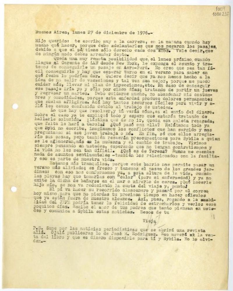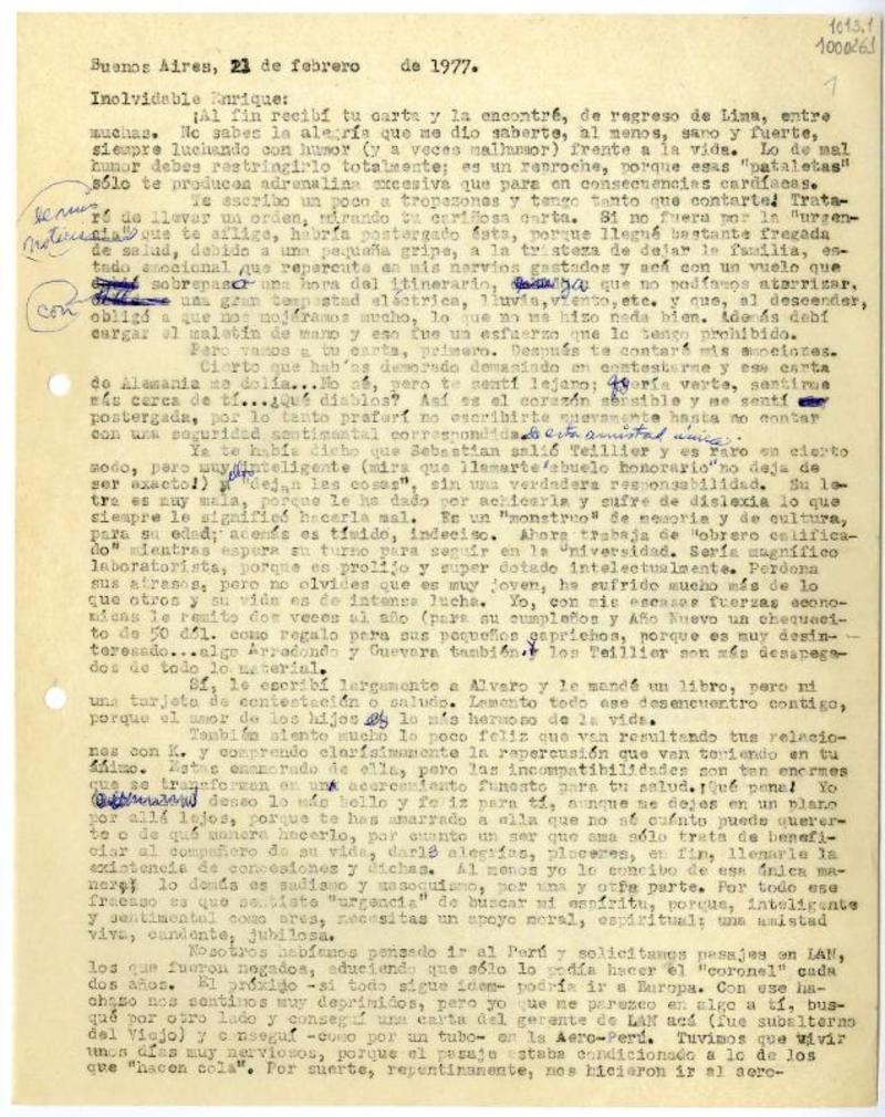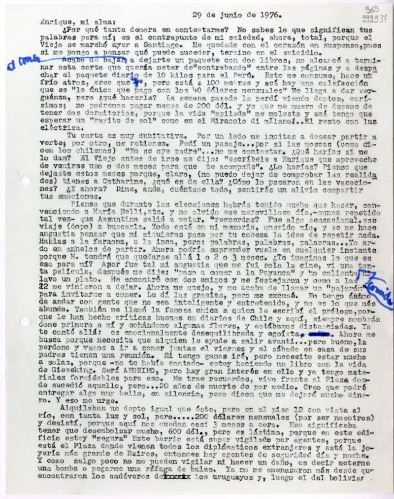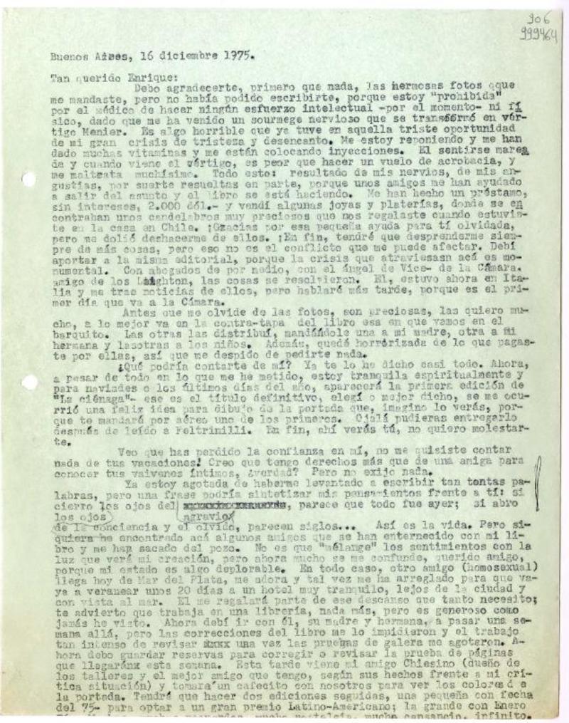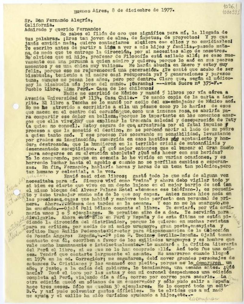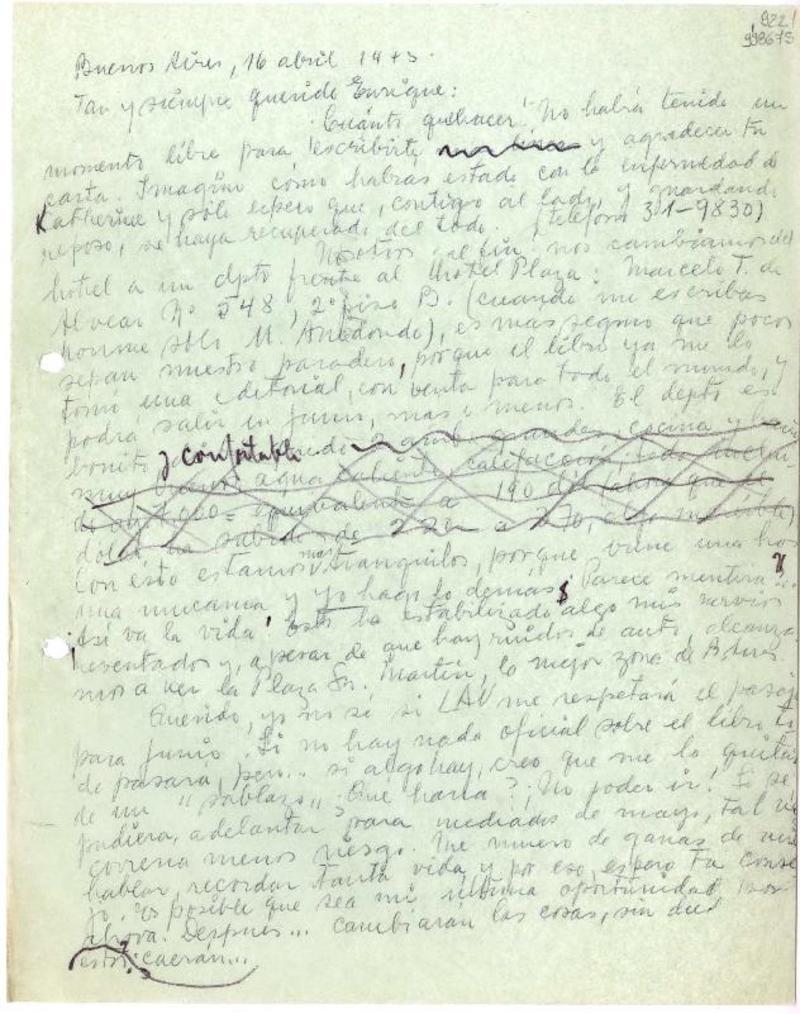 Pedemonte, Hugo Emilio - Correspondencia - Ladrón de Guevara, Matilde - Manuscritos uruguayos