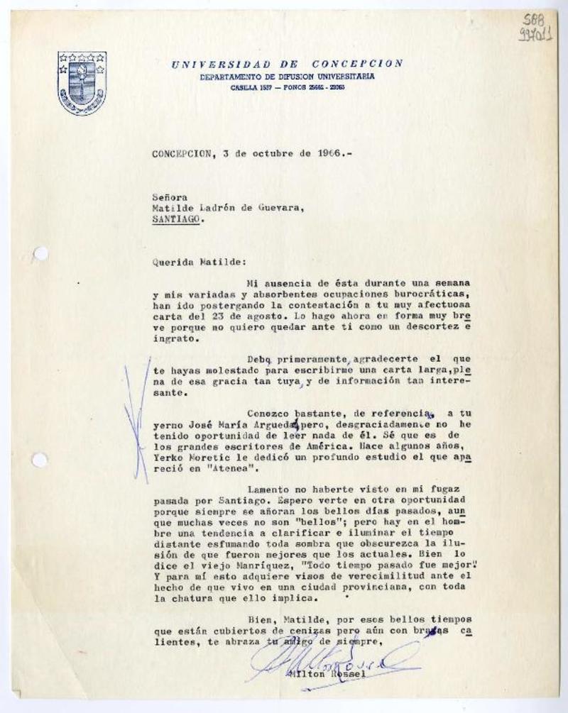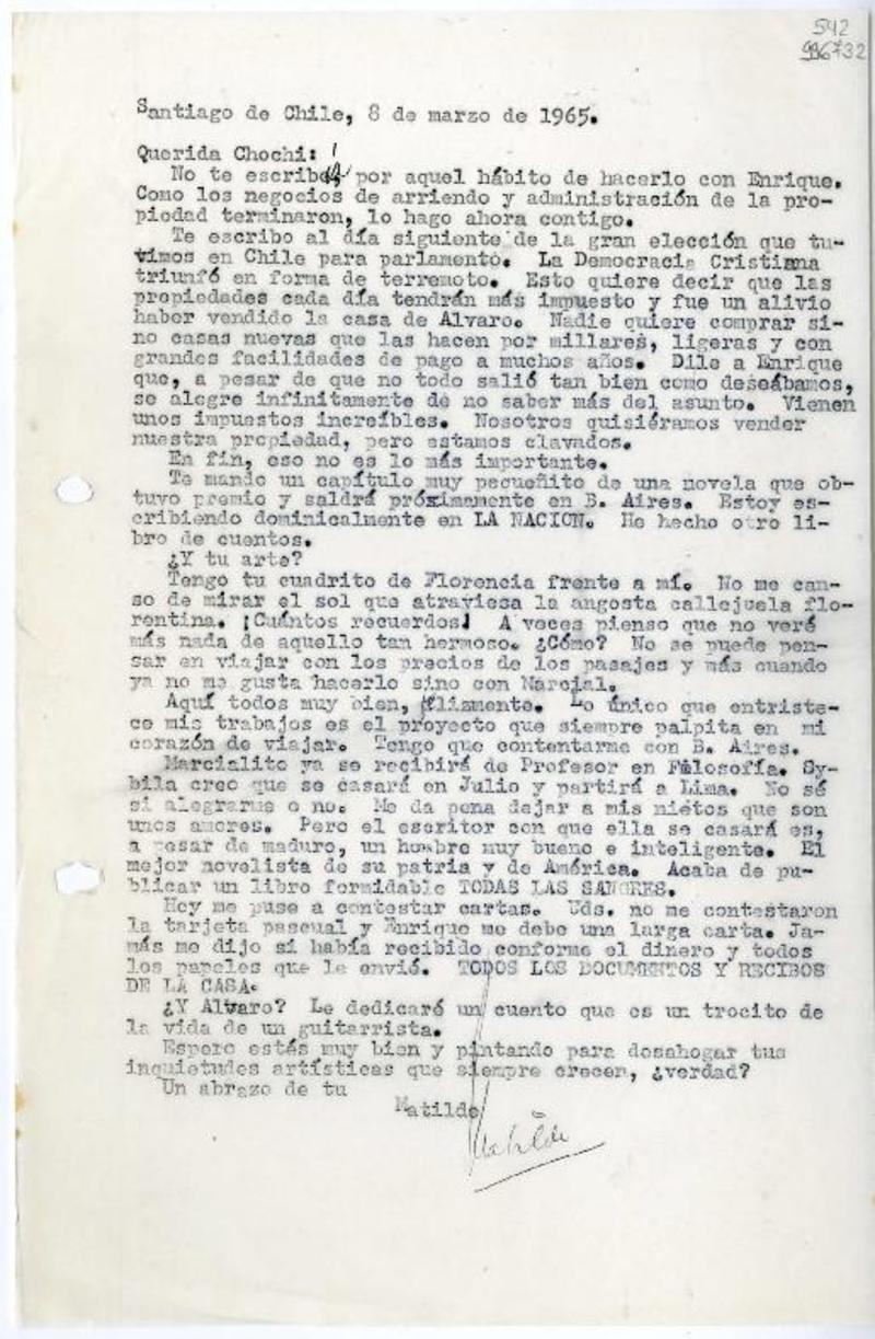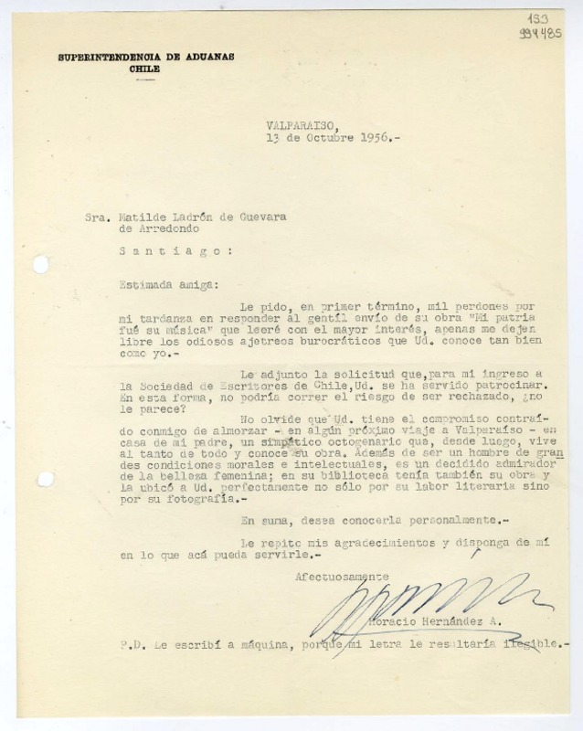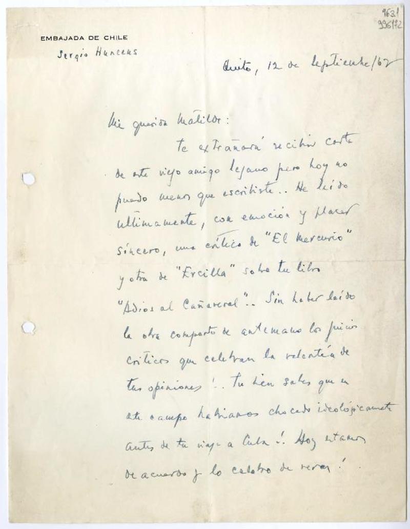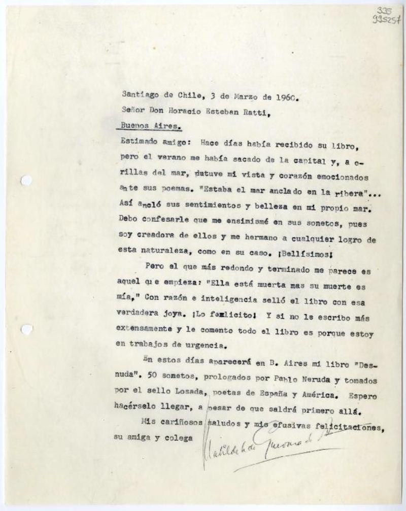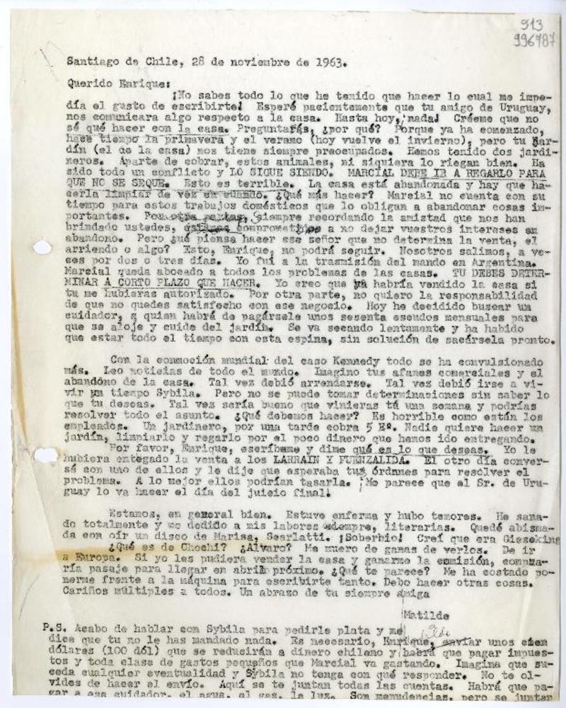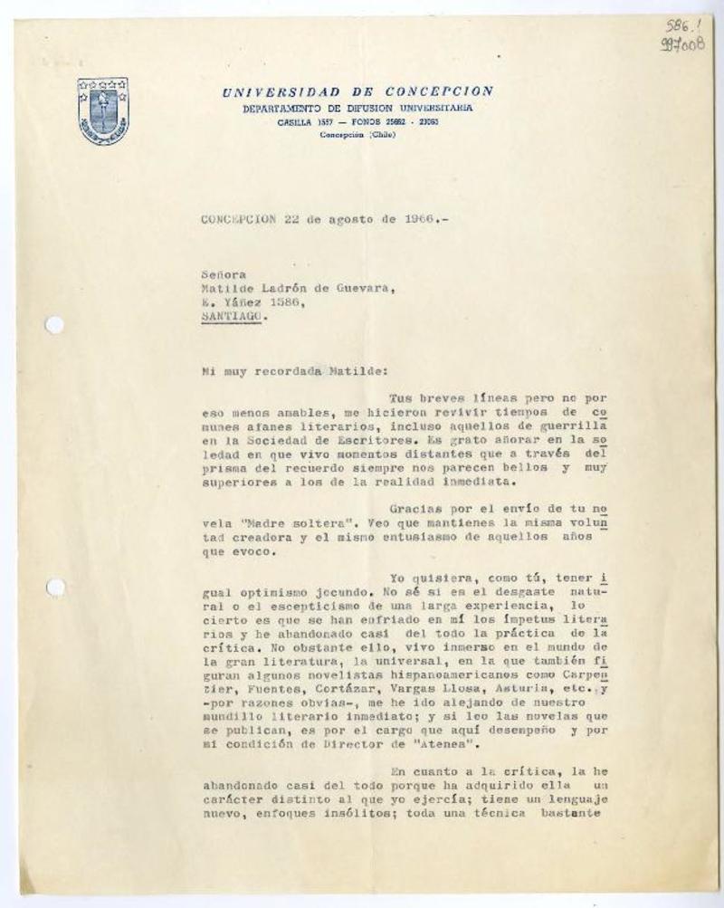 Hurtado Borne, René - Correspondencia - Autores chilenos - Manuscritos chilenos - Ladrón de Guevara, Matilde