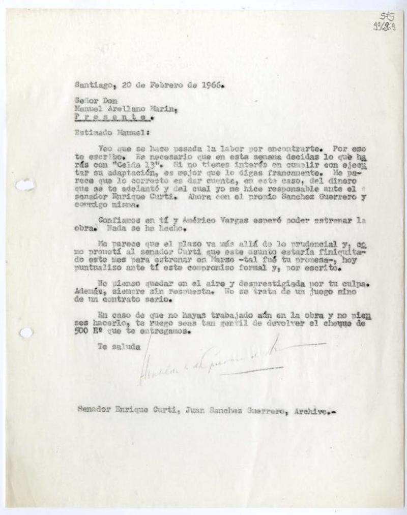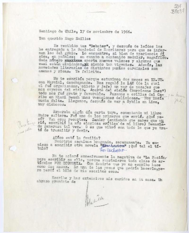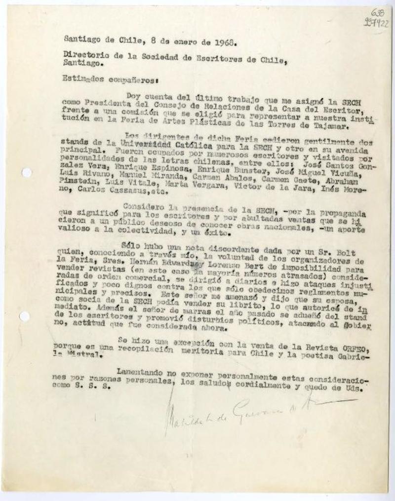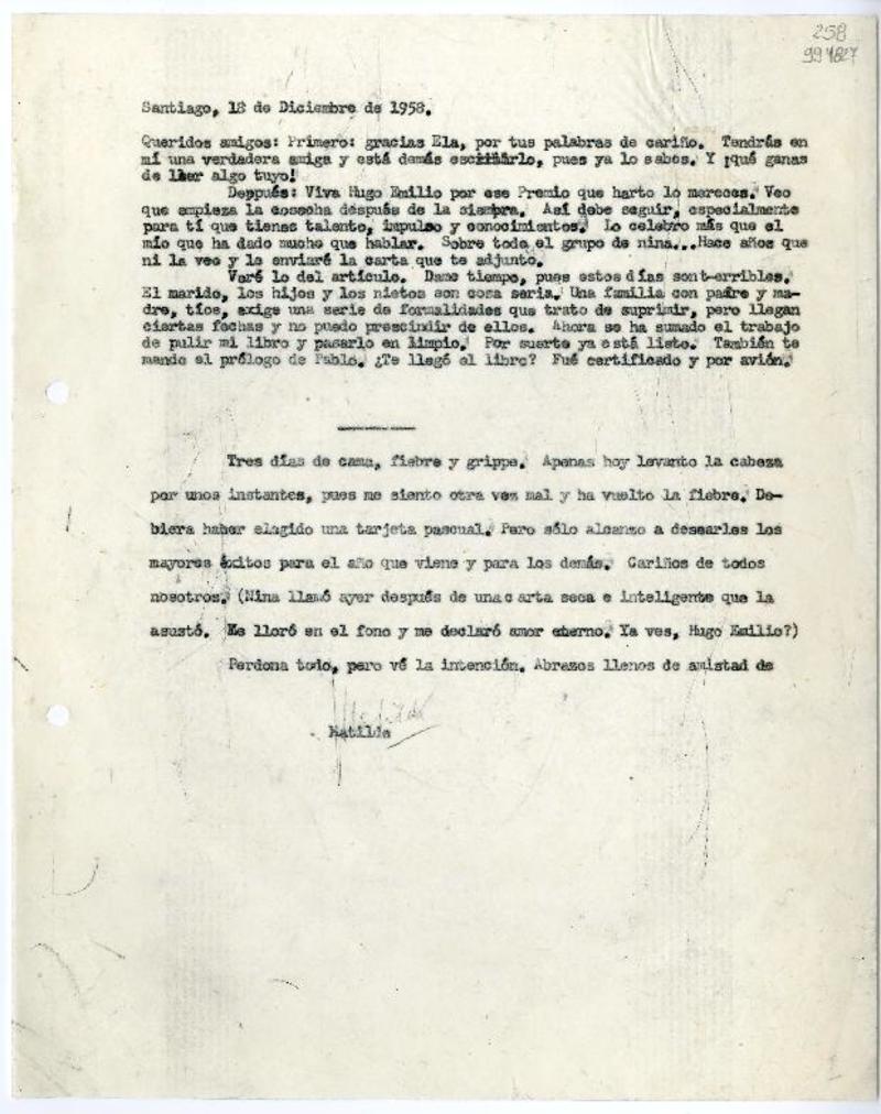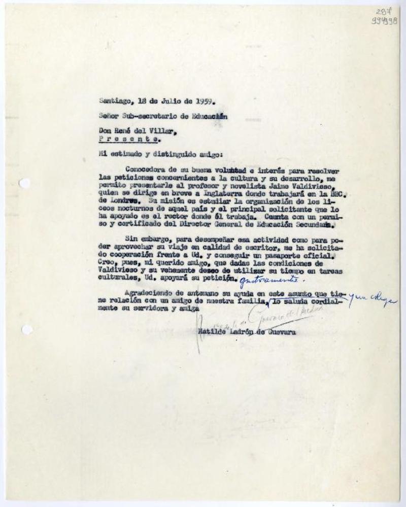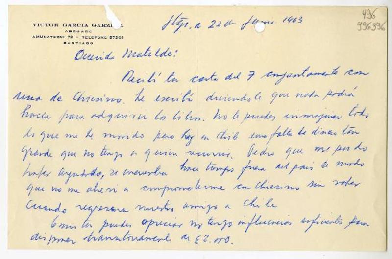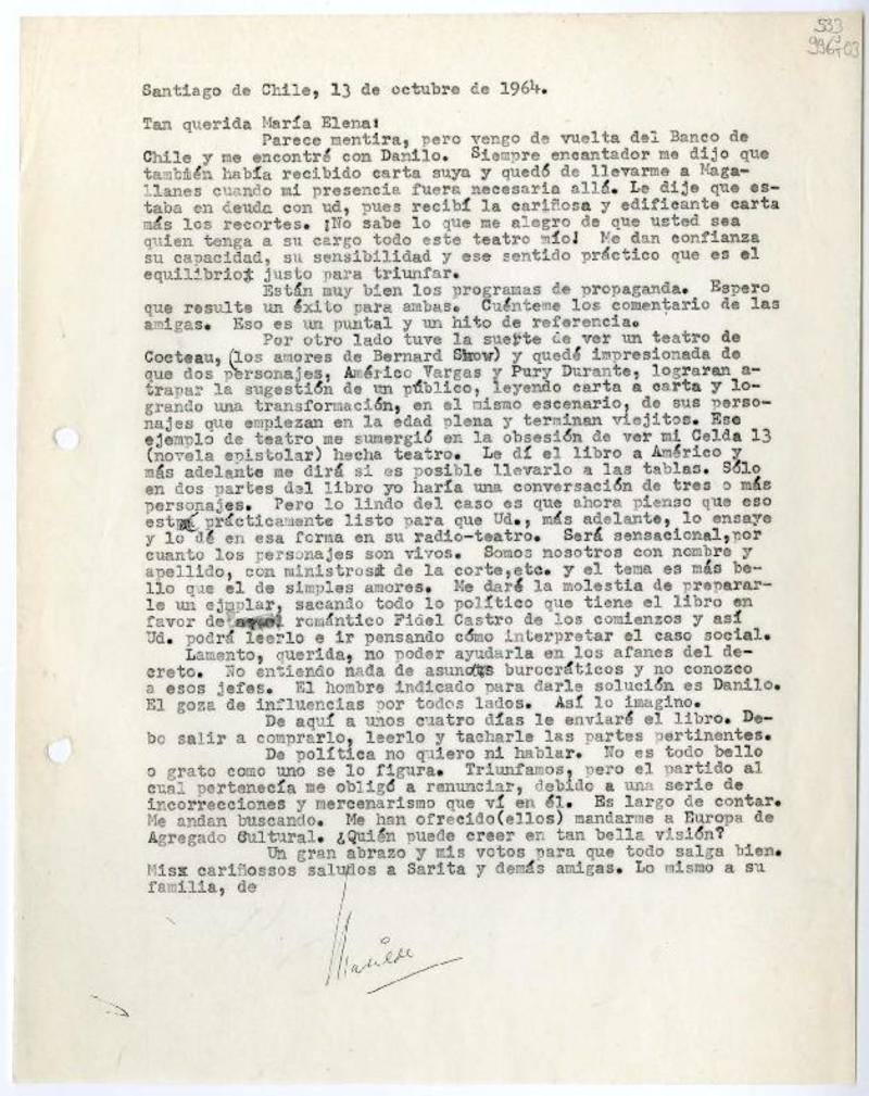 Hurtado Borne, René - Correspondencia - Autores chilenos - Manuscritos chilenos - Ladrón de Guevara, Matilde