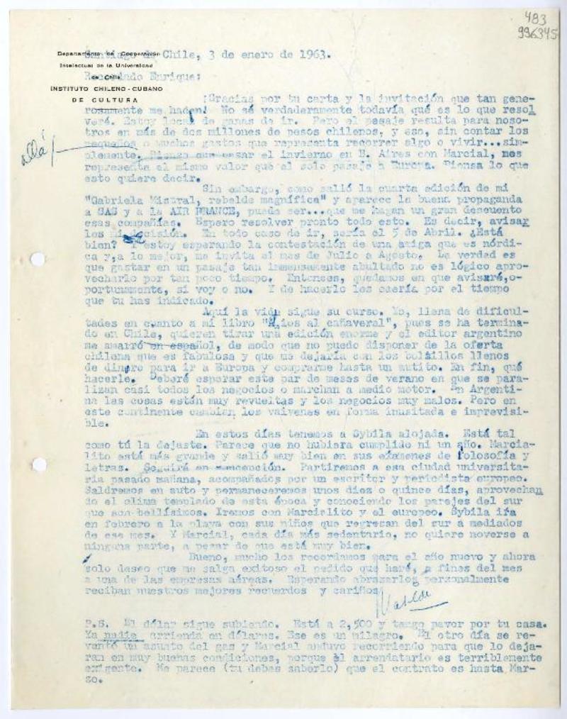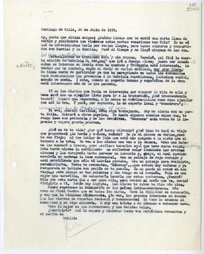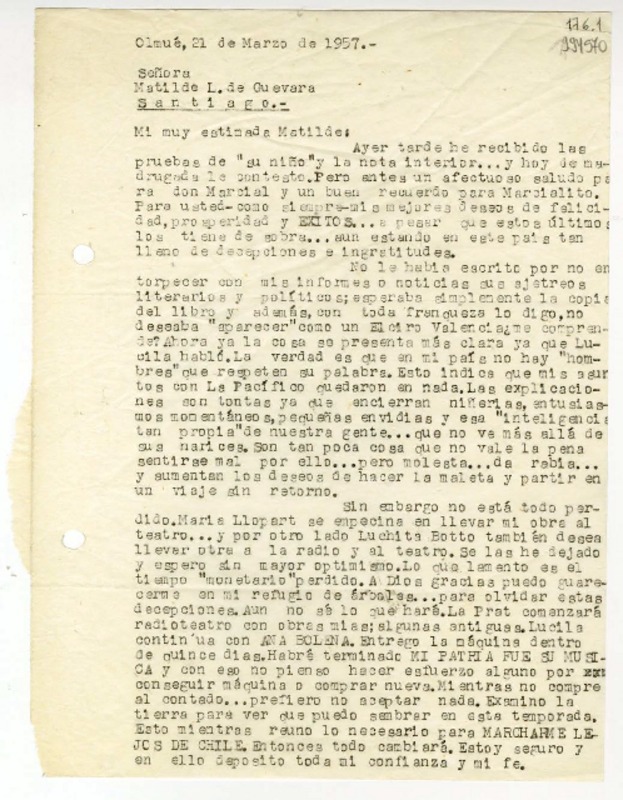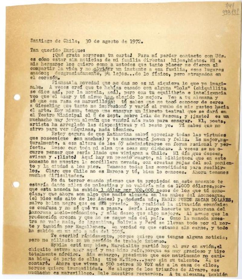Olsen Nielsen, Kaare - Ladrón de Guevara, Matilde - Manuscritos chilenos - Correspondencia