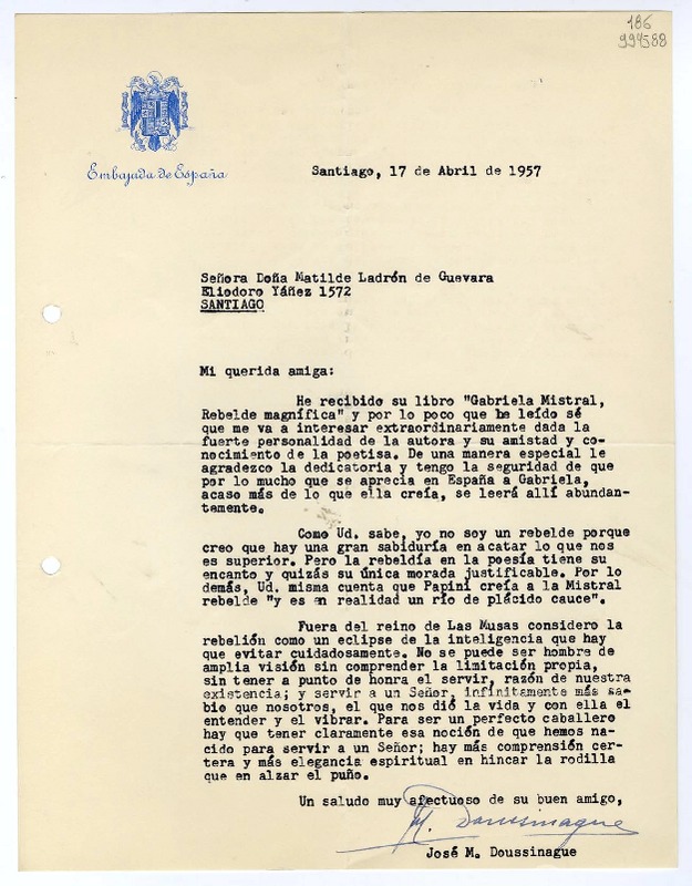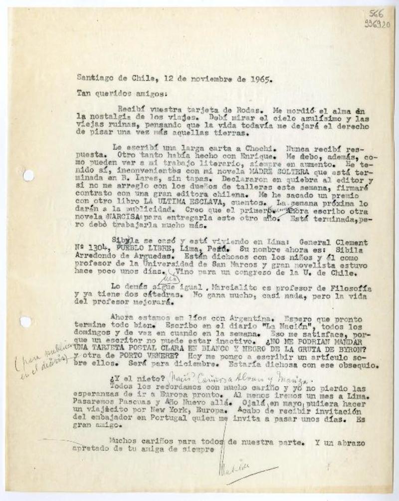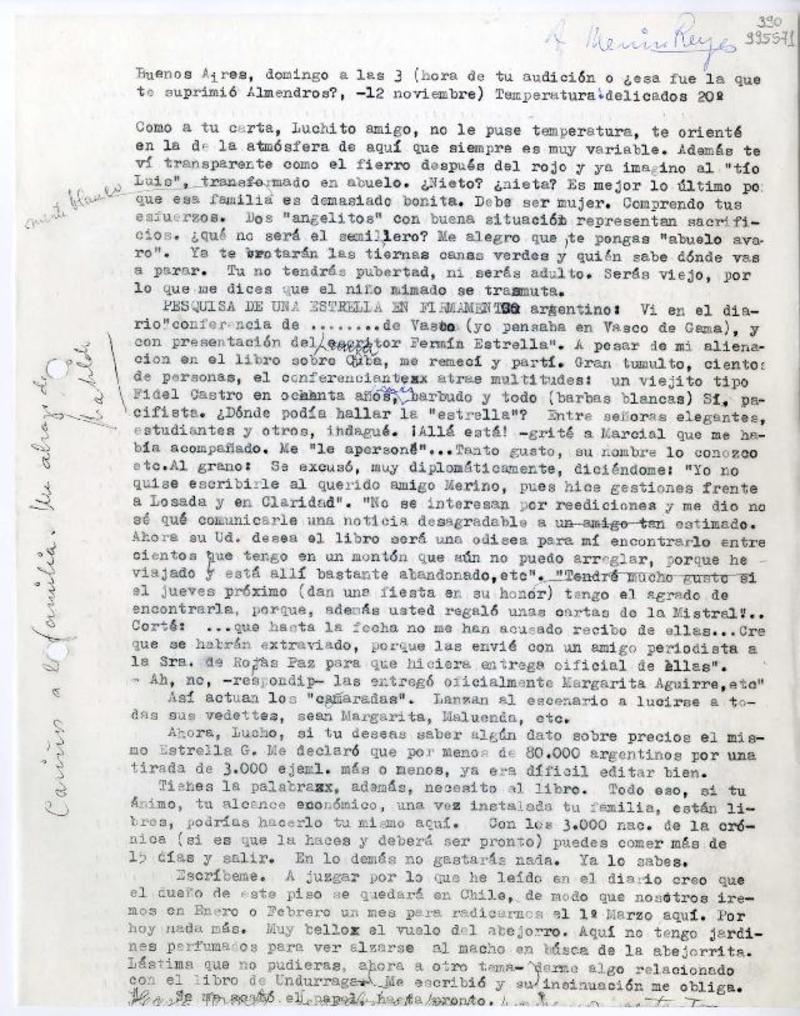 Ladrón de Guevara, Matilde - Autoras chilenas - Correspondencia - Autores chilenos - Manuscritos chilenos - Merino Reyes, Luis