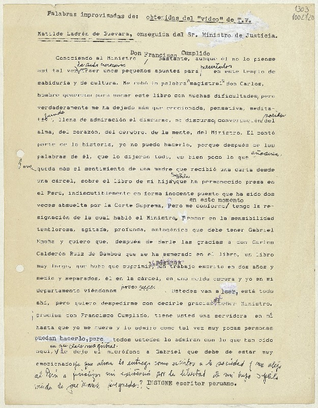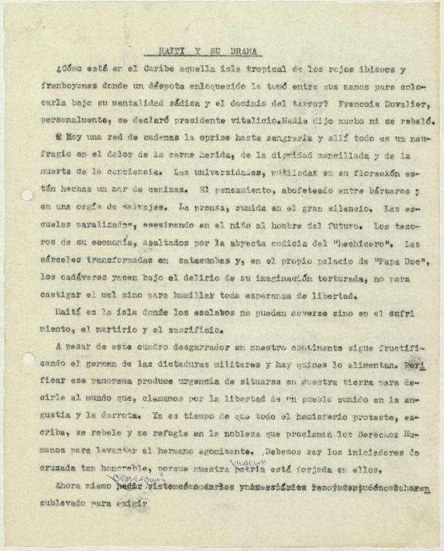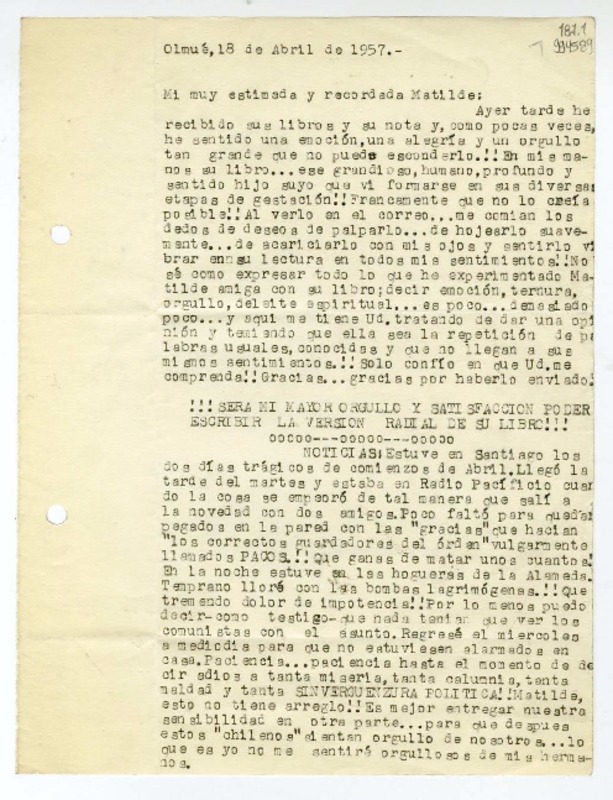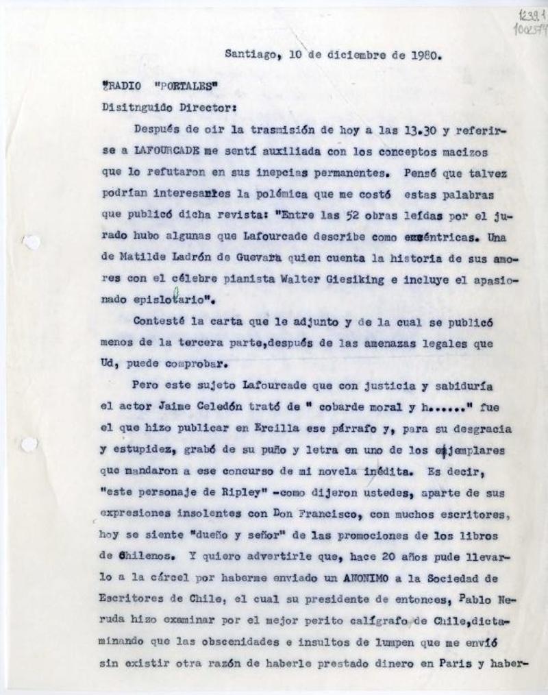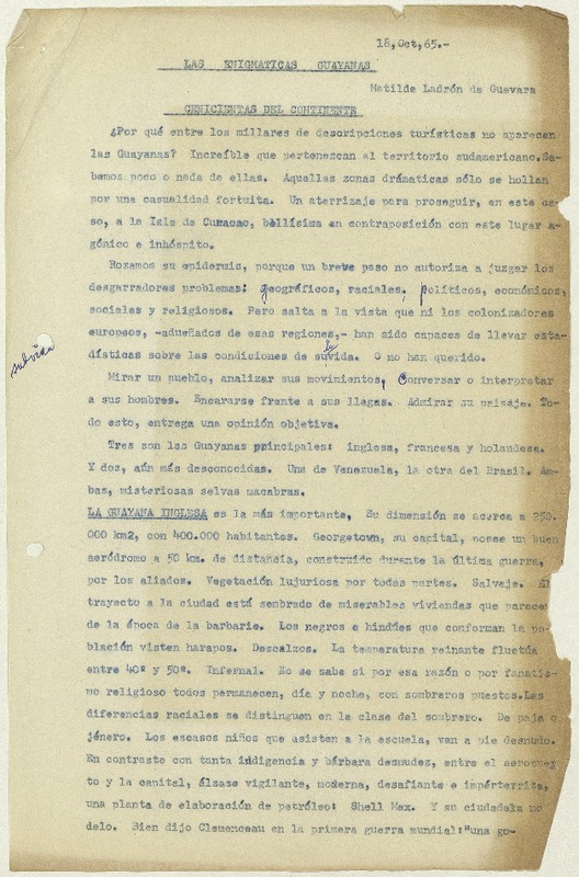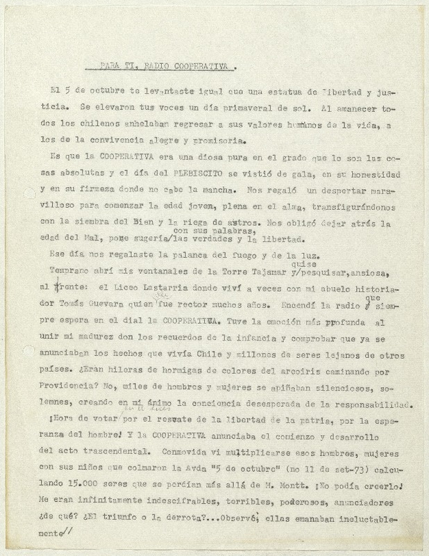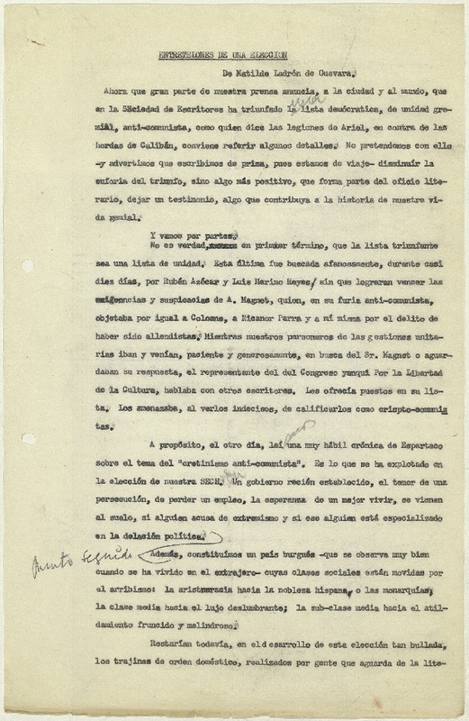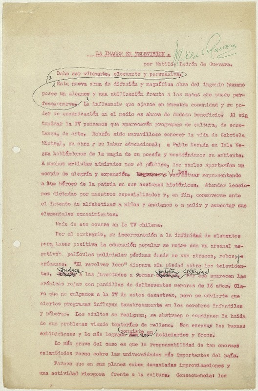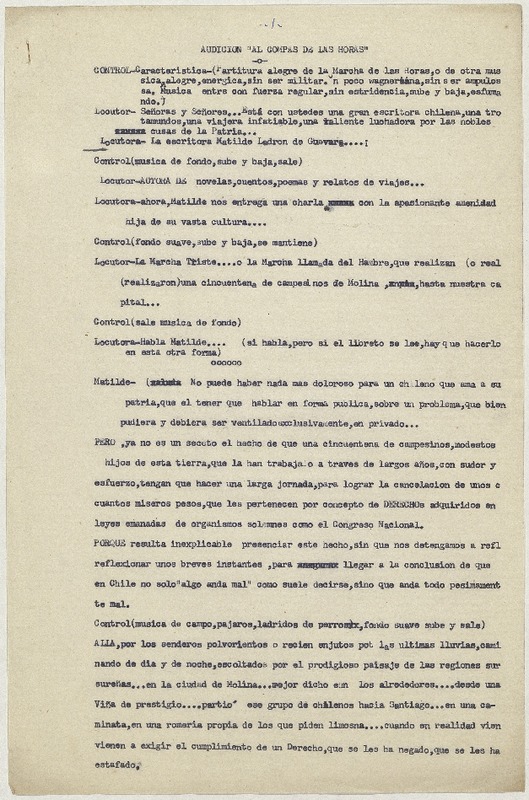 Silenciaron las radios [manuscrito] Matilde Ladrón de Guevara.