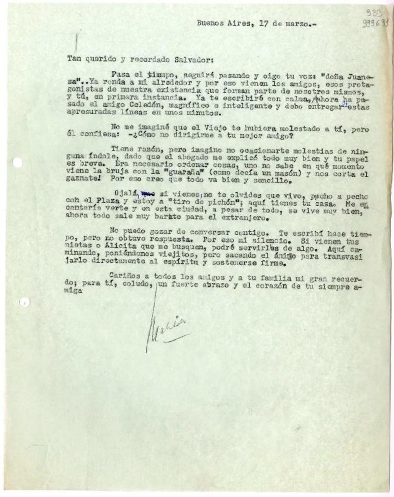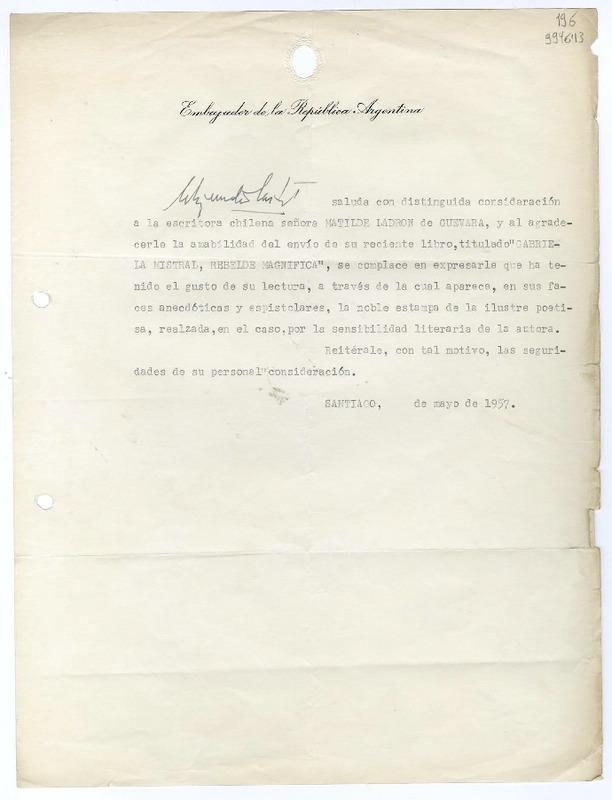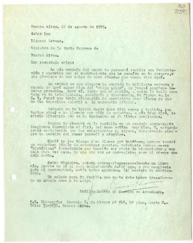Manuscritos argentinos - Correspondencia - Ladrón de Guevara, Matilde