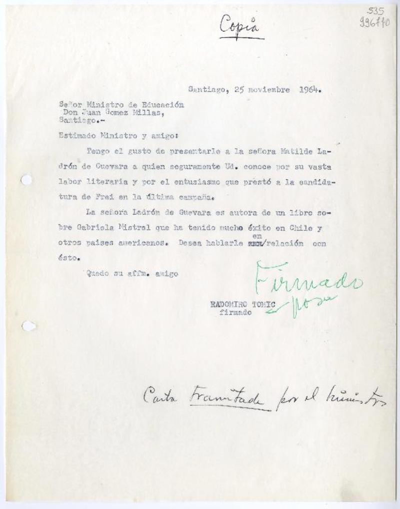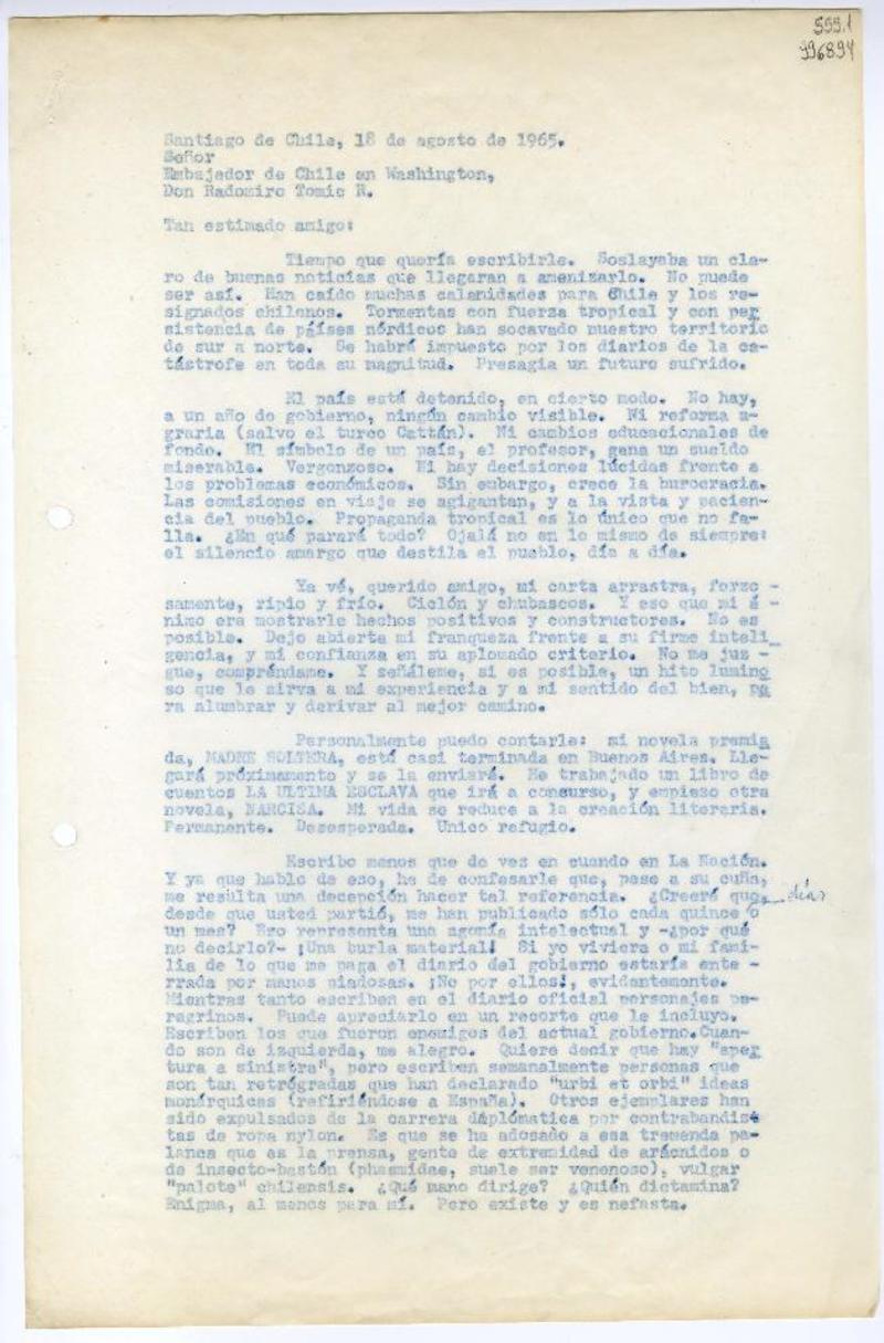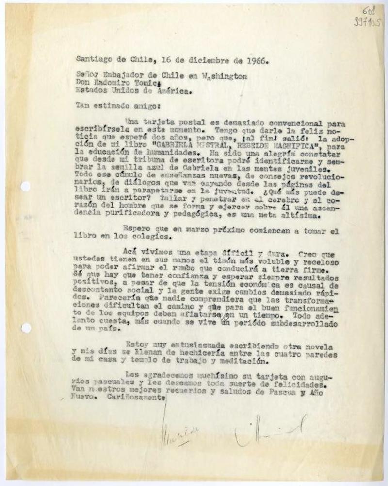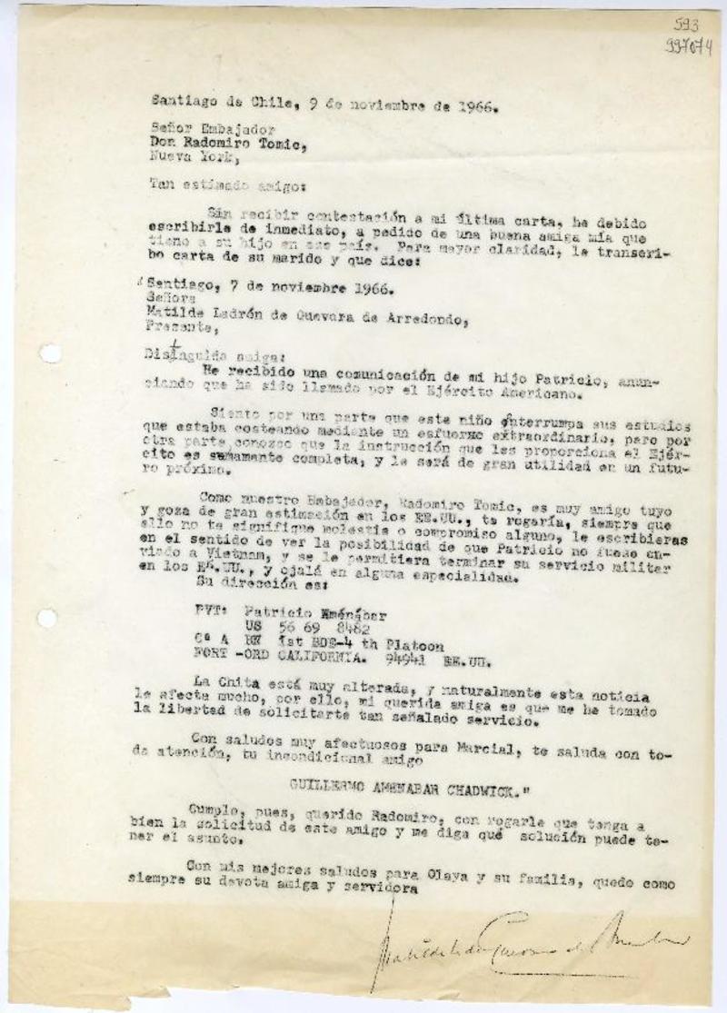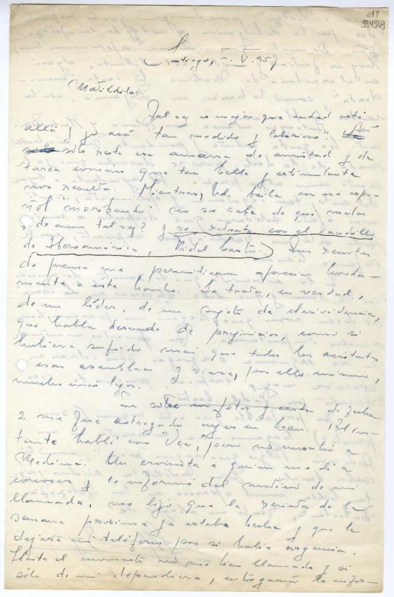 Tomic, Radomiro - Ladrón de Guevara, Matilde - Manuscritos chilenos - Correspondencia