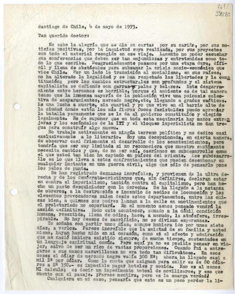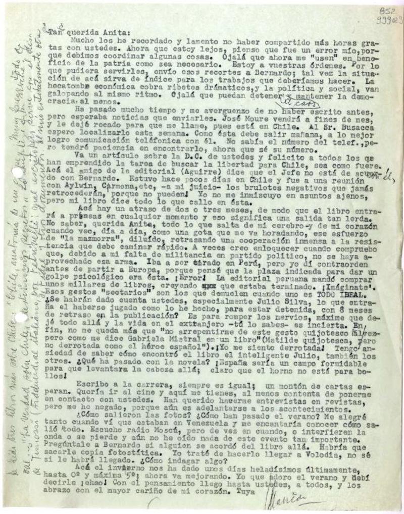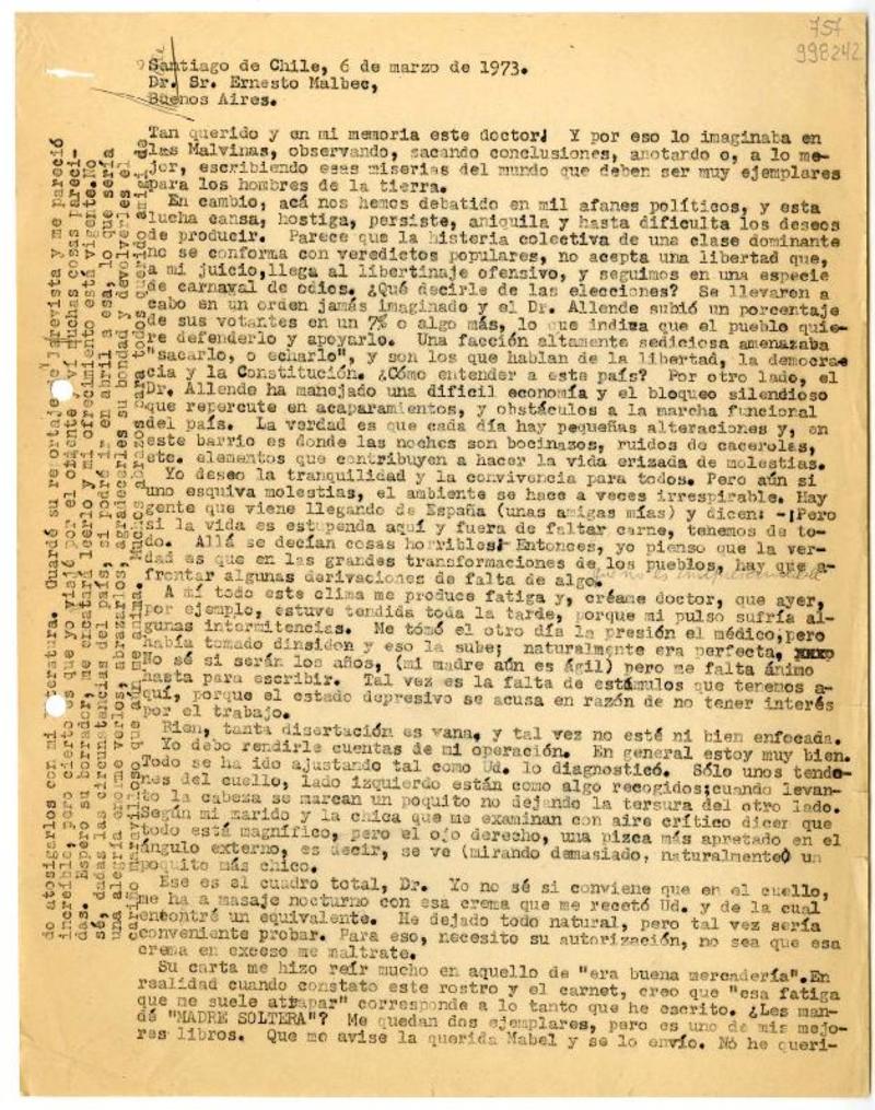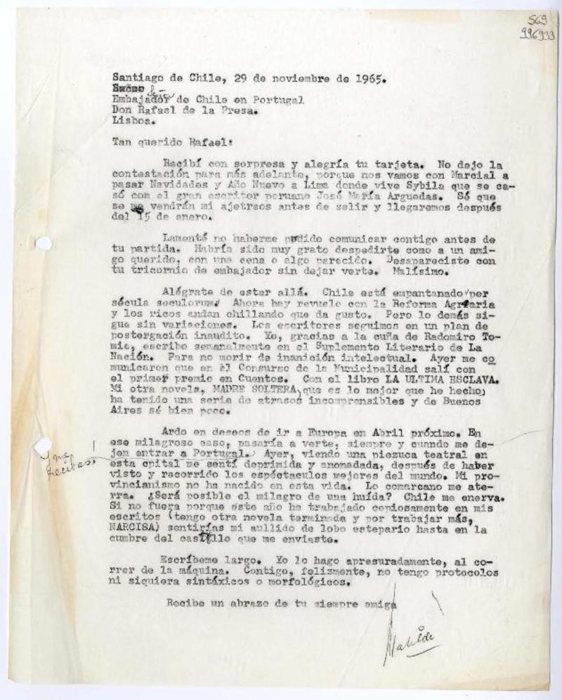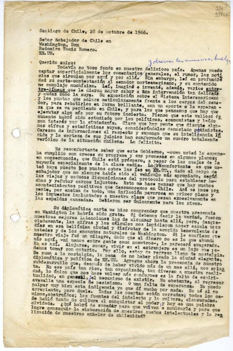 Tomic, Radomiro - Ladrón de Guevara, Matilde - Manuscritos chilenos - Correspondencia
