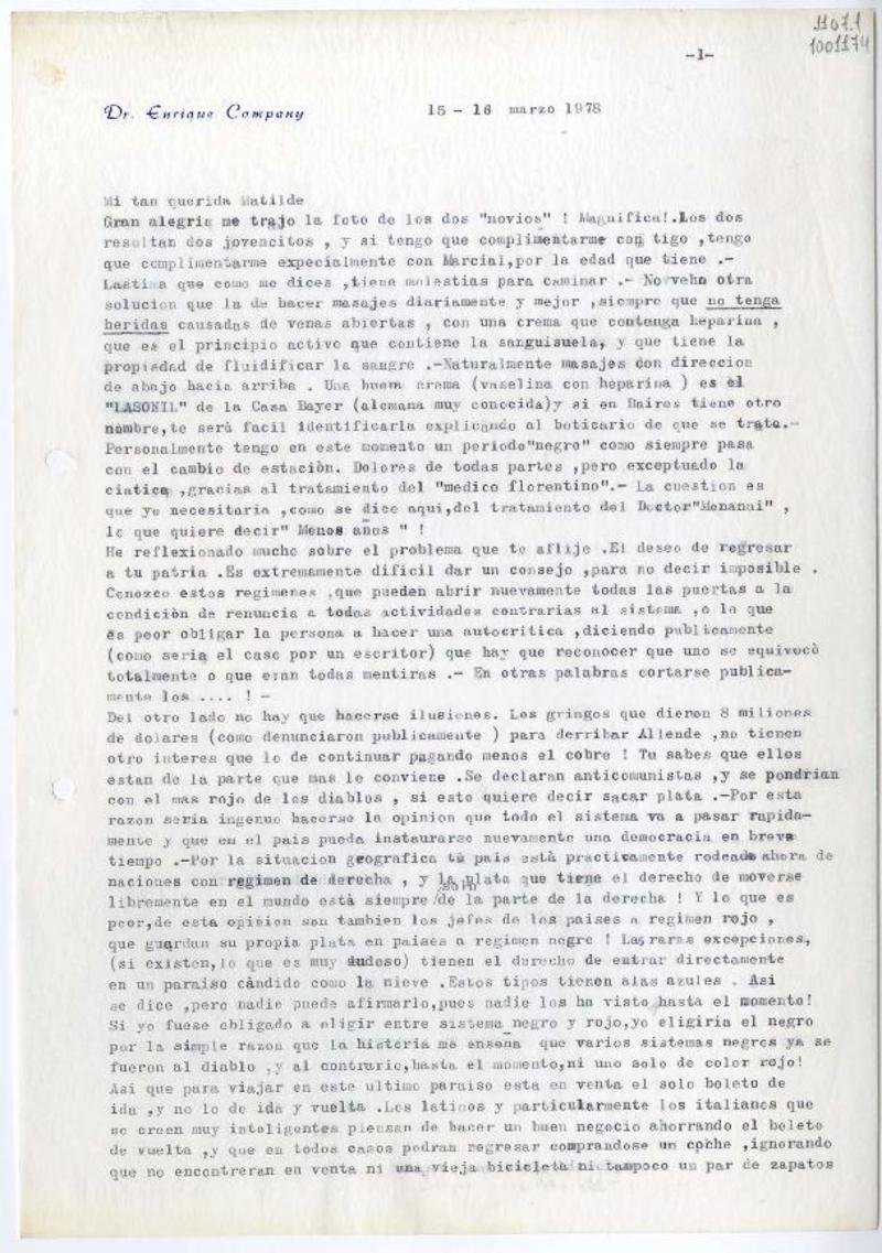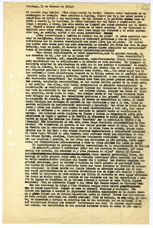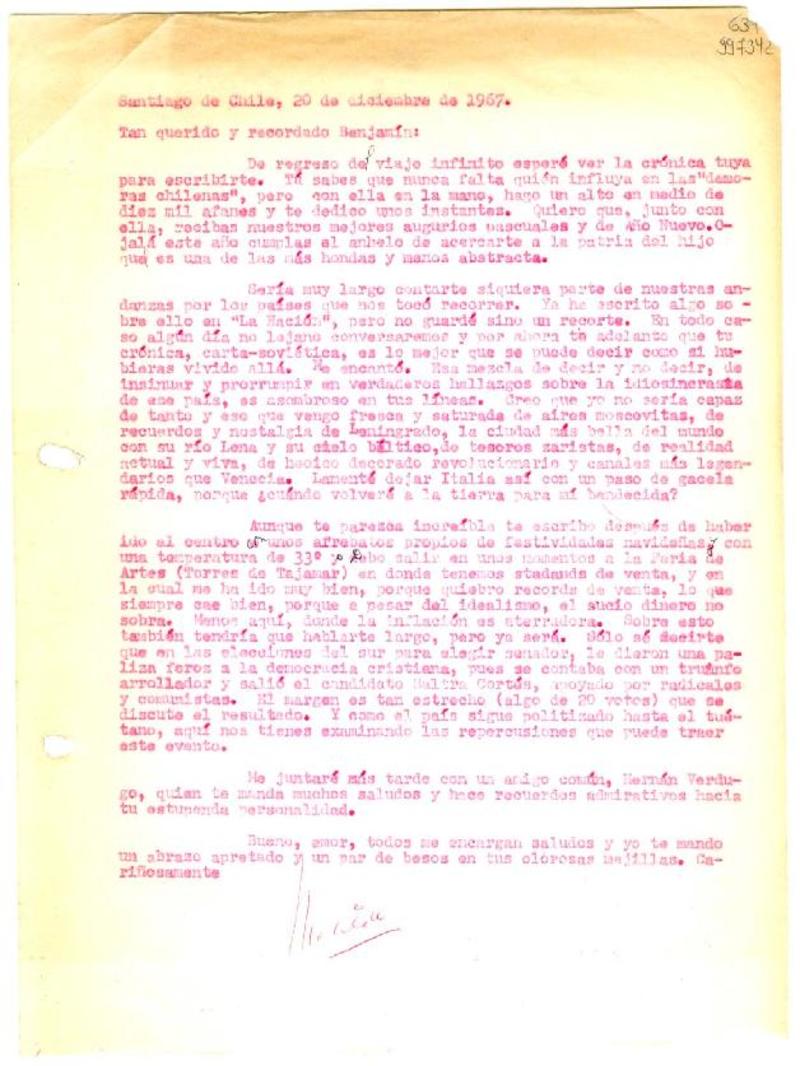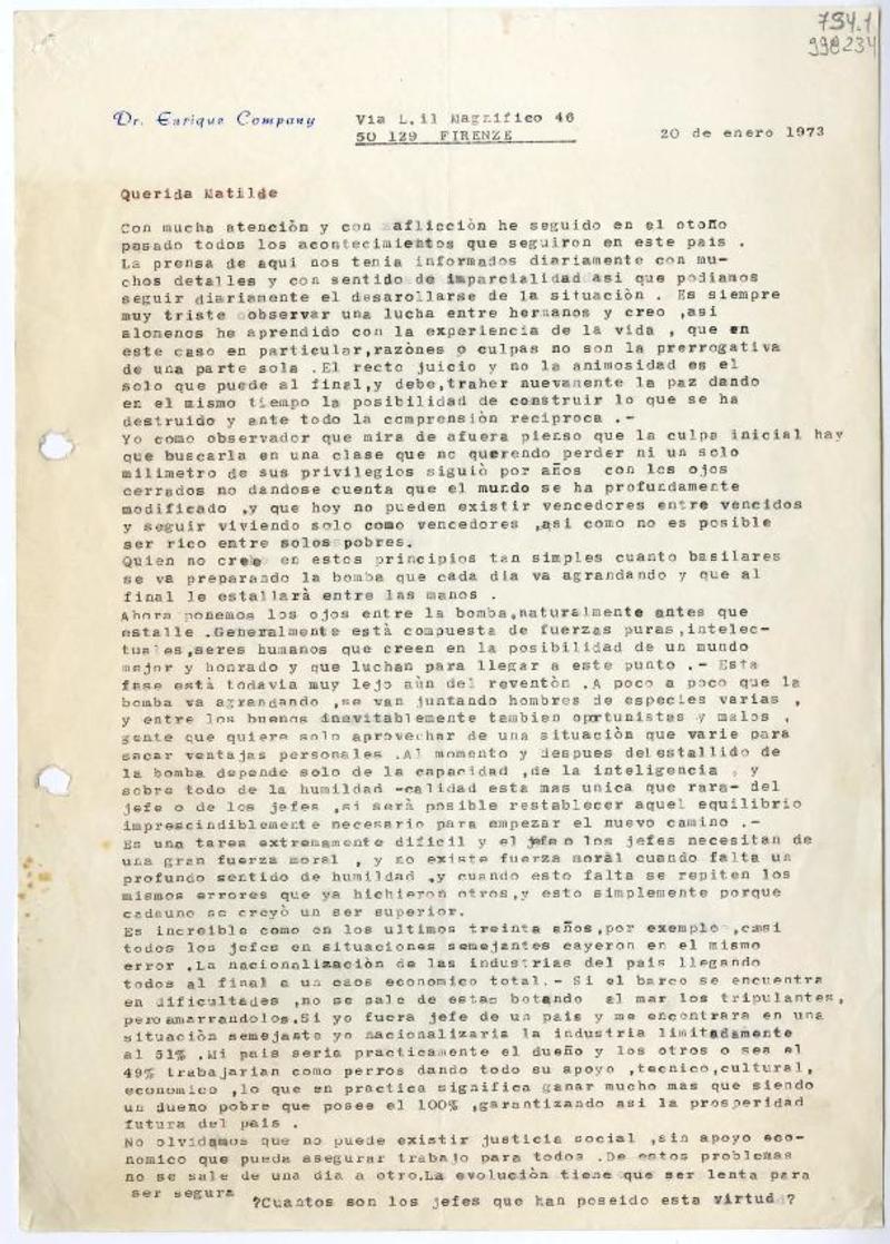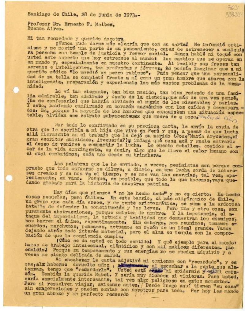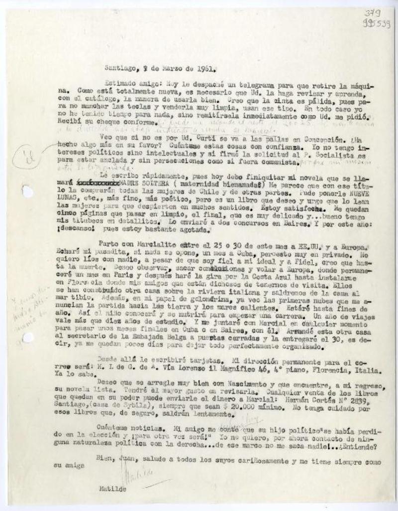 Tomic, Radomiro - Ladrón de Guevara, Matilde - Manuscritos chilenos - Correspondencia