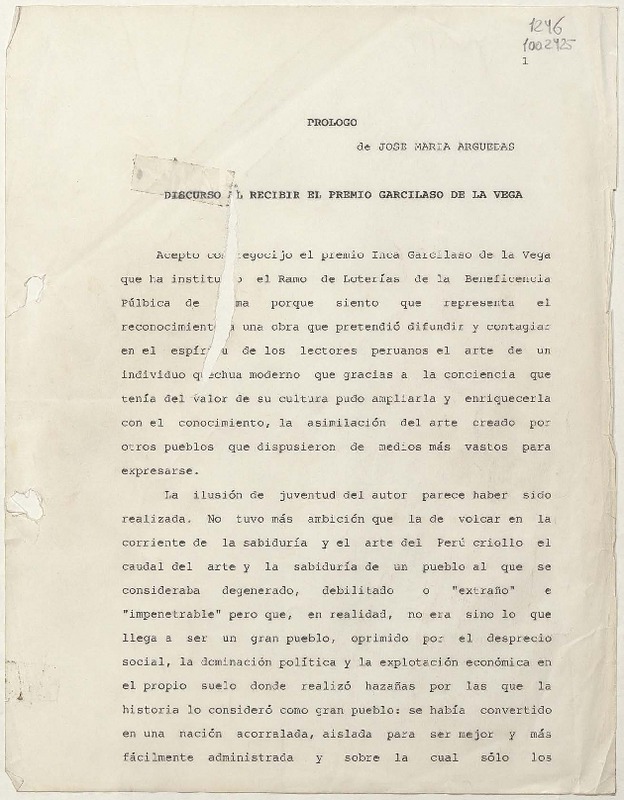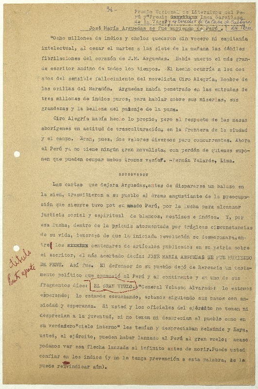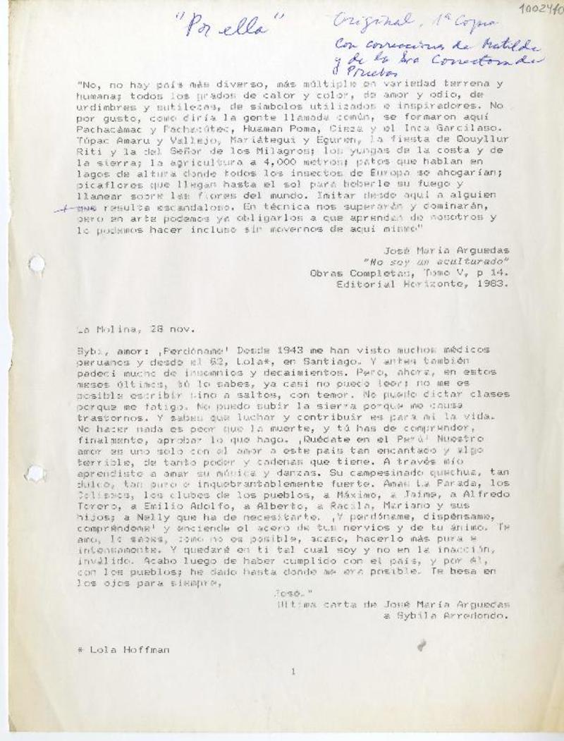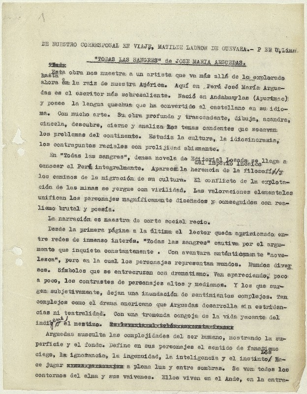 Todas las sangres de José María Arguedas [manuscrito] Matilde Ladrón de Guevara.