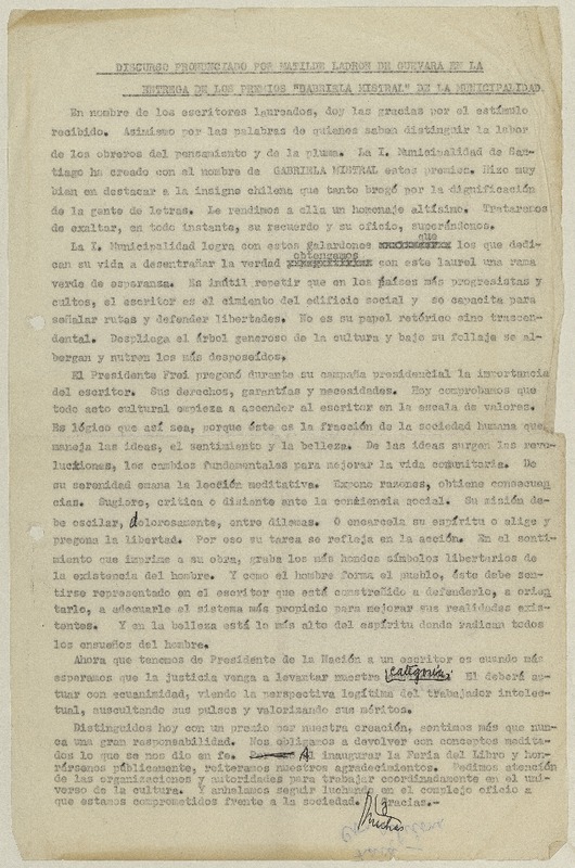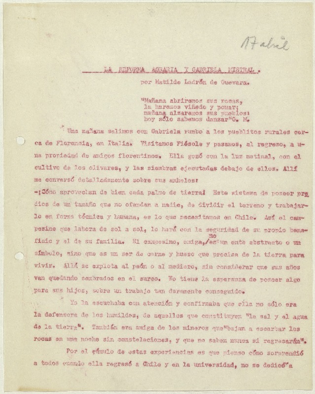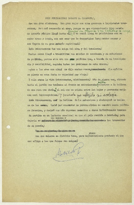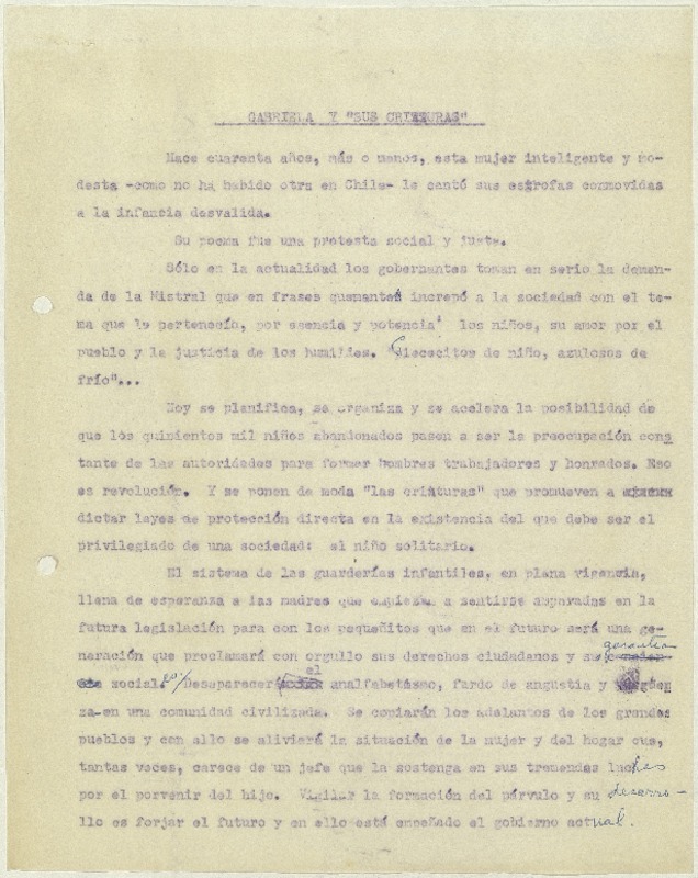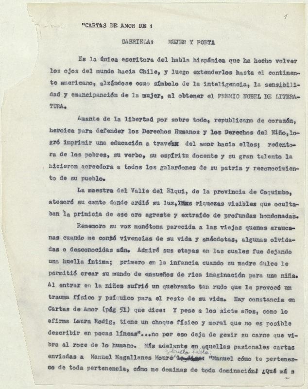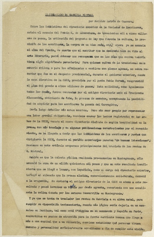 [Textos acerca de Gabriela] [manuscrito] Matilde Ladrón de Guevara.
