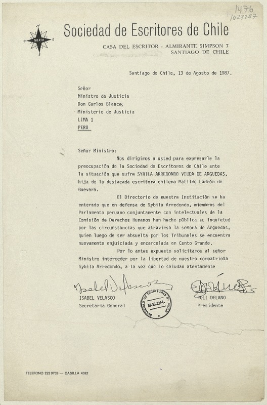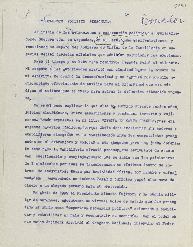 Presos políticos - Manuscritos chilenos - Biografías - Arredondo, Sybila