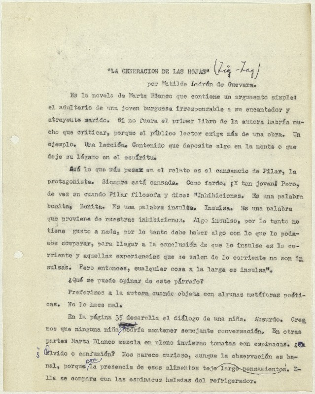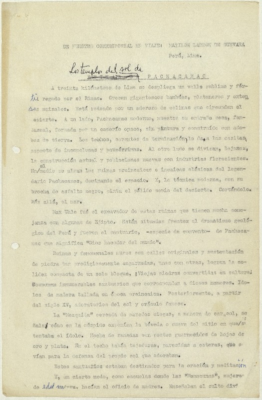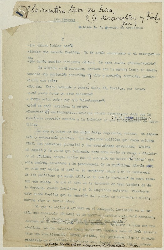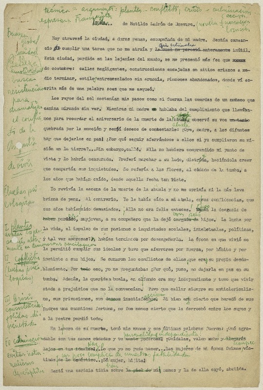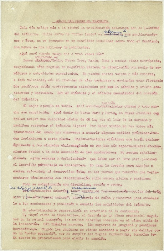Algo más sobre el tránsito [manuscrito] Matilde Ladrón de Guevara.