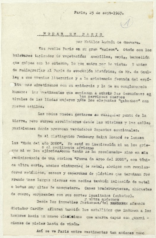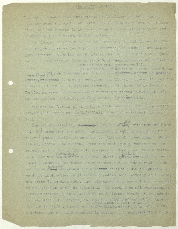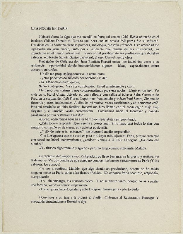 Una noche en París [manuscrito] [Matilde Ladrón de Guevara].