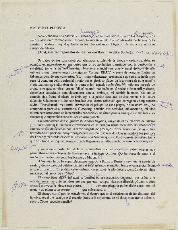 Walter el pianista [manuscrito] [Matilde Ladrón de Guevara].