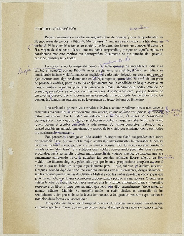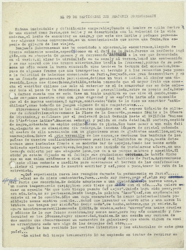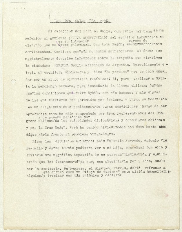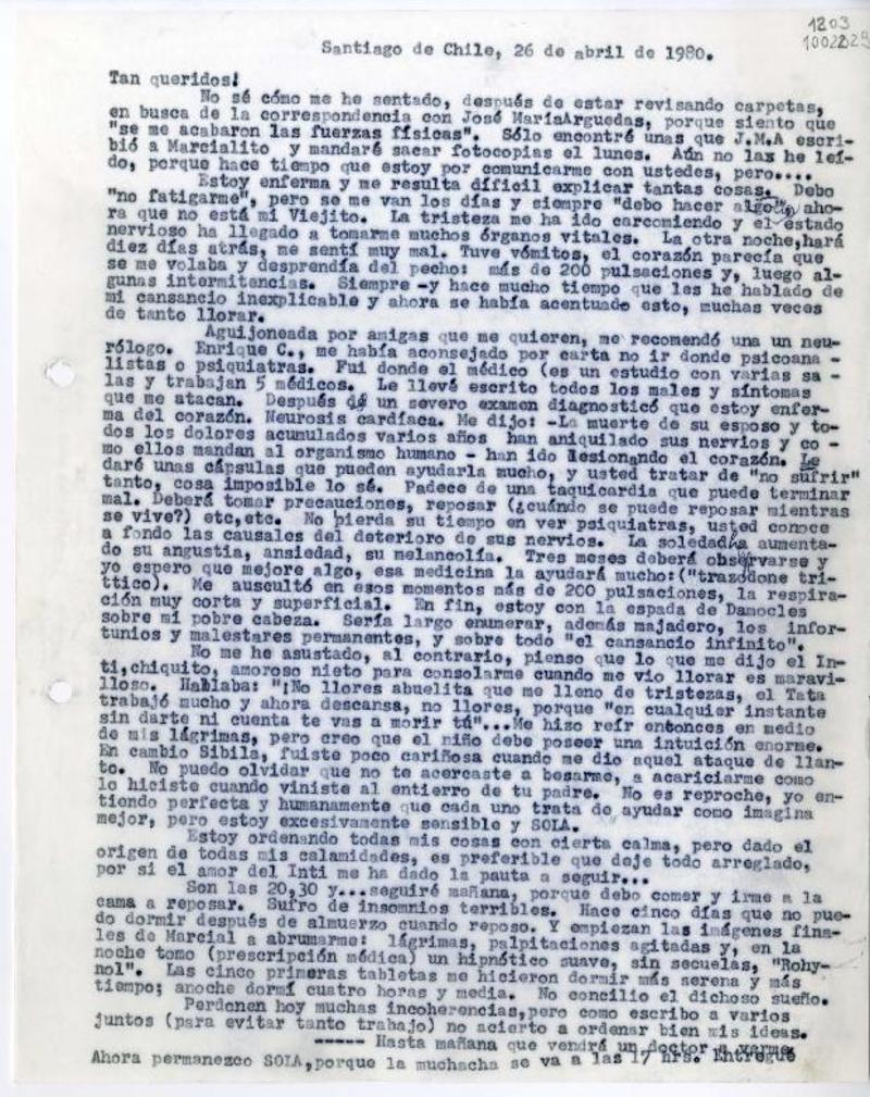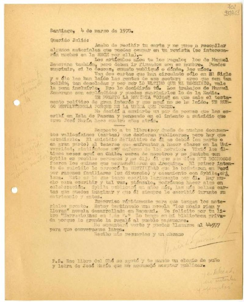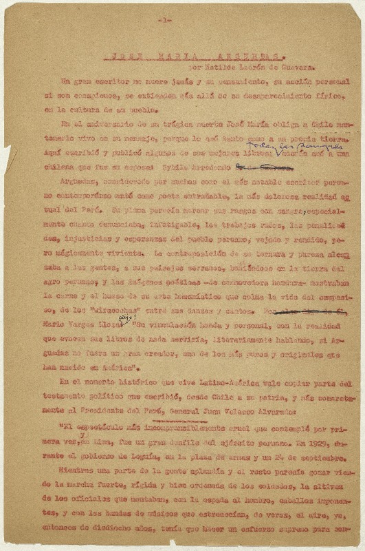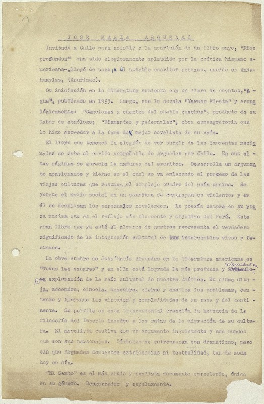 Arredondo, Sybila - Manuscritos chilenos - Arguedas, José María - Artículos chilenos